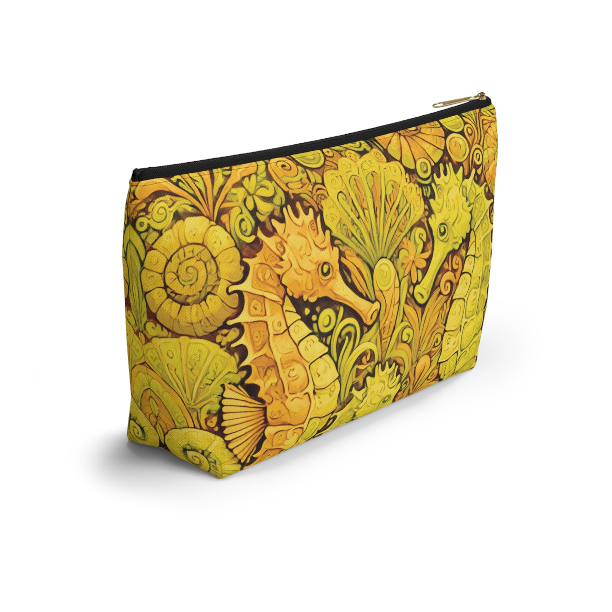 Tropical Accessory Pouch, 2 sizes | Makeup Bag | Perfect for Travel & Everyday Use / Seahorse Trio, Yellow