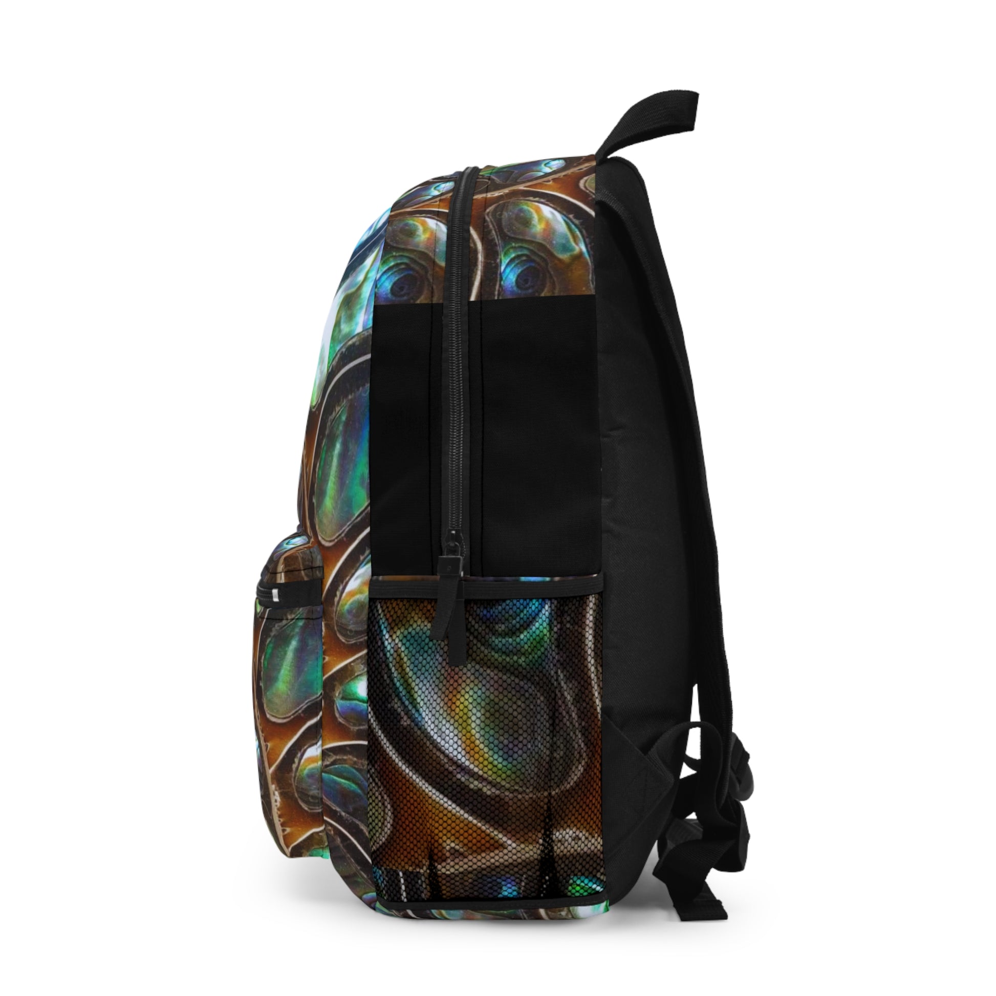 Elevate your everyday adventures with this vibrant backpack. The striking design features an original nature pattern, Ammonite and Abalone, in purple. The ammonite is a fossilized seashell, and the abalone appears in blues, purples and greens. Perfect for students, travelers, or anyone on the go, this backpack not only makes a statement but also provides practicality with multiple compartments for organizing your essentials. Ideal for casual outings, back-to-school, or summer vacations, this accessory can seamlessly fit into any lifestyle. Its comfortable padded back panel and adjustable straps ensure that you can carry your belongings in style and ease, making it a fantastic gift for special occasions such as birthdays, graduations, or holidays. Whether it's a day at the park or a trip to the beach, this backpack is designed to be a delightful companion in all your adventures.