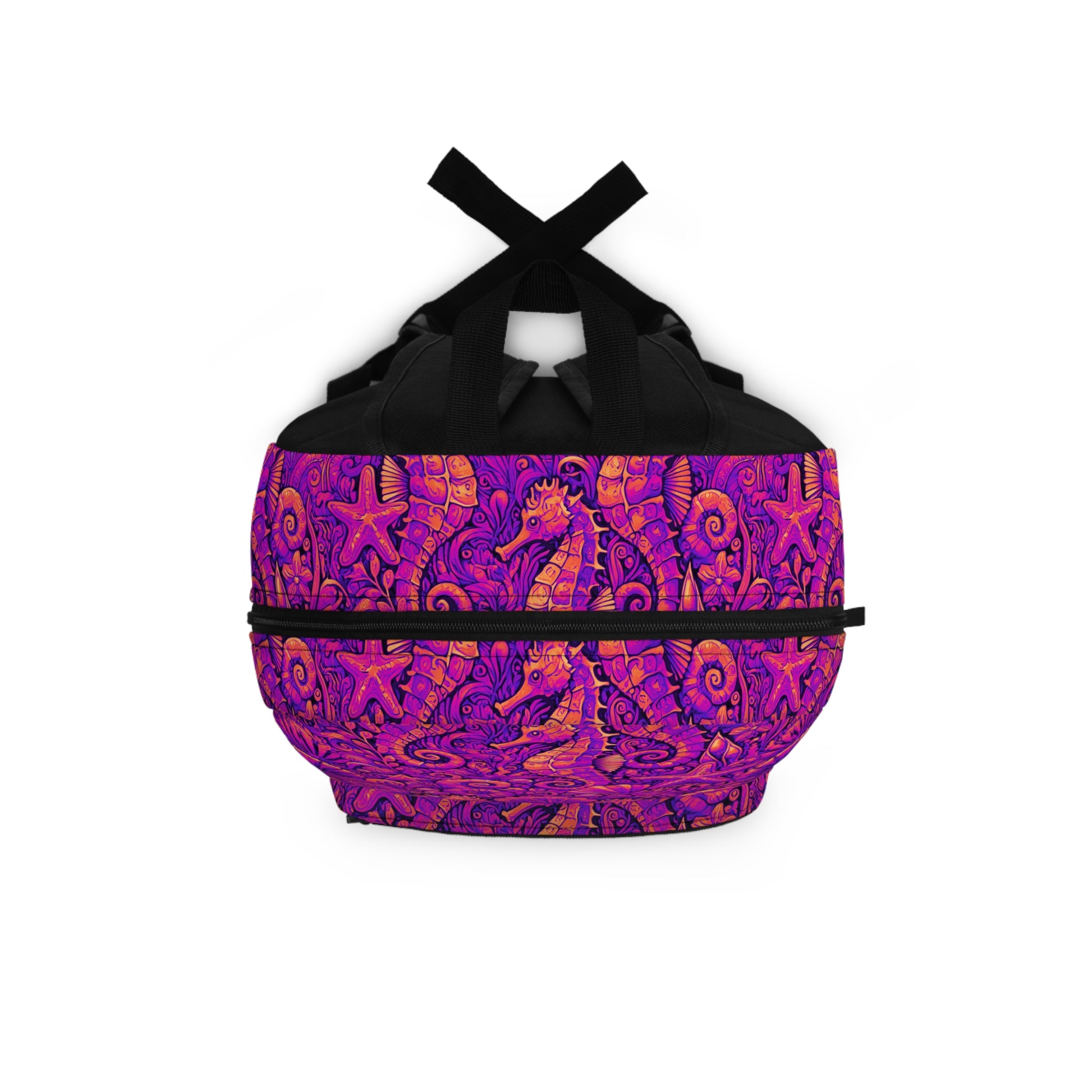 Elevate your everyday adventures with this vibrant backpack. The striking design features our exclusive seahorses design that brings a taste of paradise to your daily life. Perfect for students, travelers, or anyone on the go, this backpack not only makes a statement but also provides practicality with multiple compartments for organizing your essentials. Ideal for casual outings, back-to-school, or summer vacations, this accessory can seamlessly fit into any lifestyle. Its comfortable padded back panel and adjustable straps ensure that you can carry your belongings in style and ease, making it a fantastic gift for special occasions such as birthdays, graduations, or holidays. Whether it's a day at the park or a trip to the beach, this backpack is designed to be a delightful companion in all your adventures.