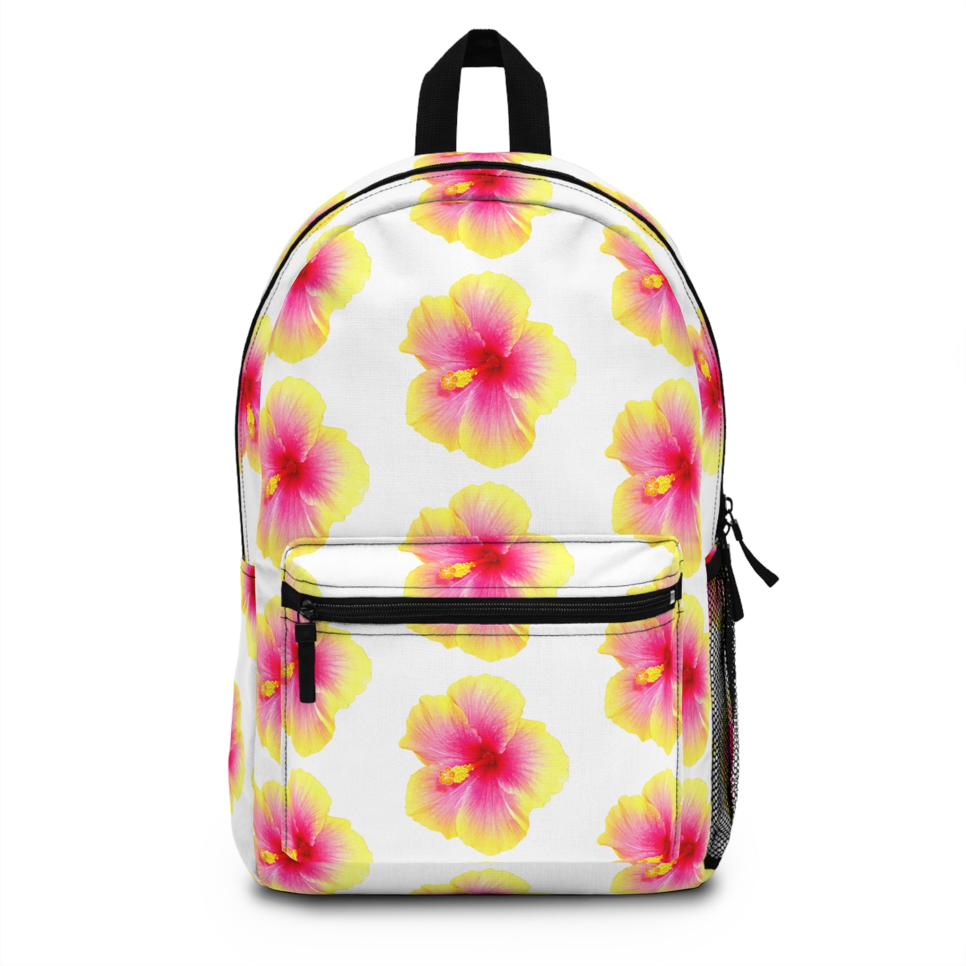 Elevate your everyday adventures with this vibrant backpack. The striking design features our exclusive design of a yellow/pink hisbiscus tropical flower, created from a photo, that bring a taste of paradise to your daily life. Perfect for students, travelers, or anyone on the go, this backpack not only makes a statement but also provides practicality with multiple compartments for organizing your essentials. Ideal for casual outings, back-to-school, or summer vacations, this accessory can seamlessly fit into any lifestyle. Its comfortable padded back panel and adjustable straps ensure that you can carry your belongings in style and ease, making it a fantastic gift for special occasions such as birthdays, graduations, or holidays. Whether it's a day at the park or a trip to the beach, this backpack is designed to be a delightful companion in all your adventures.