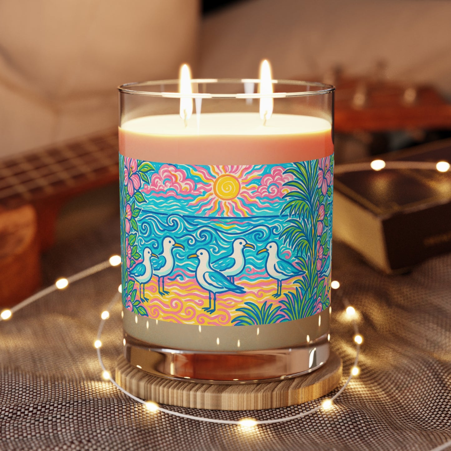 Tropical Beach Seagulls Scented Candle - 11oz Full Glass, Tropical Decor
