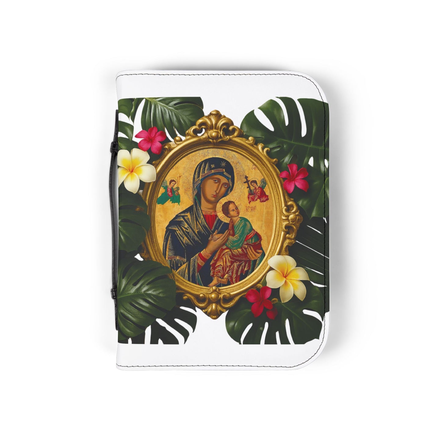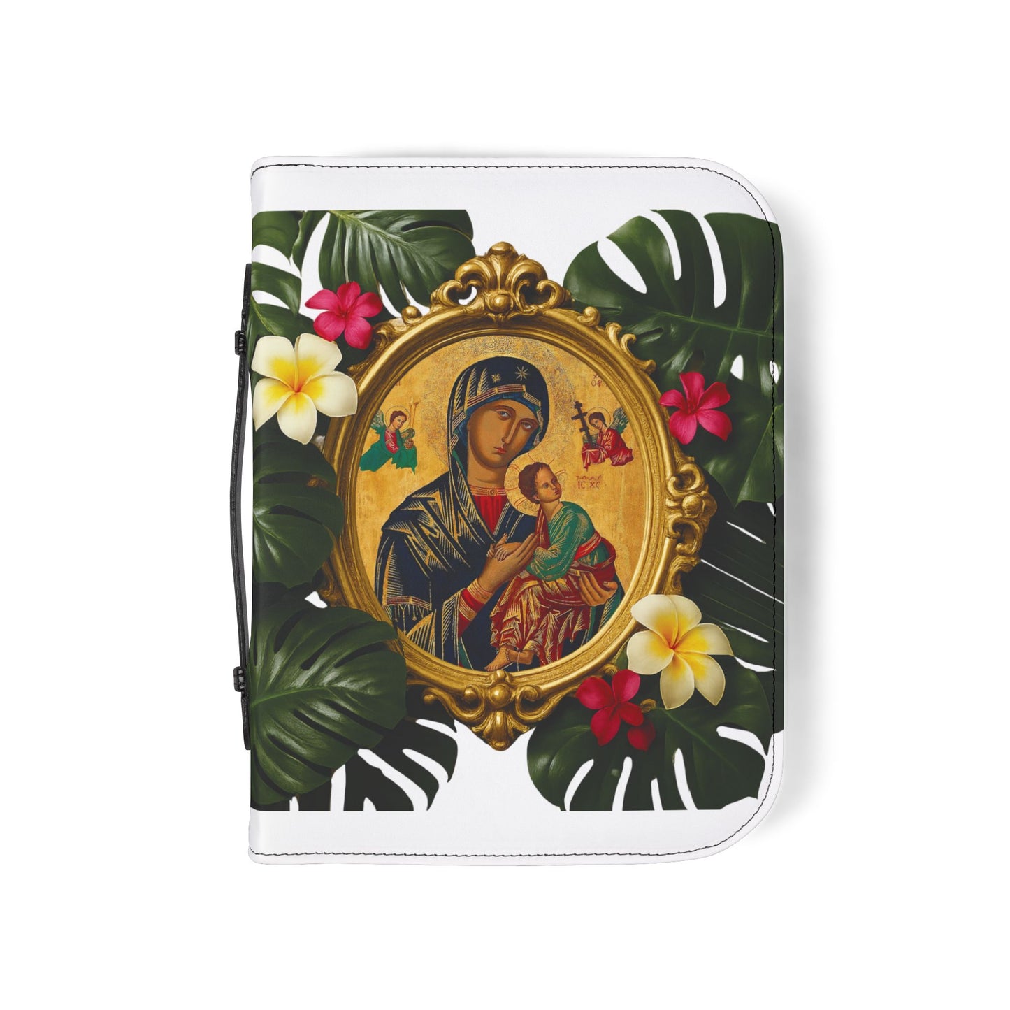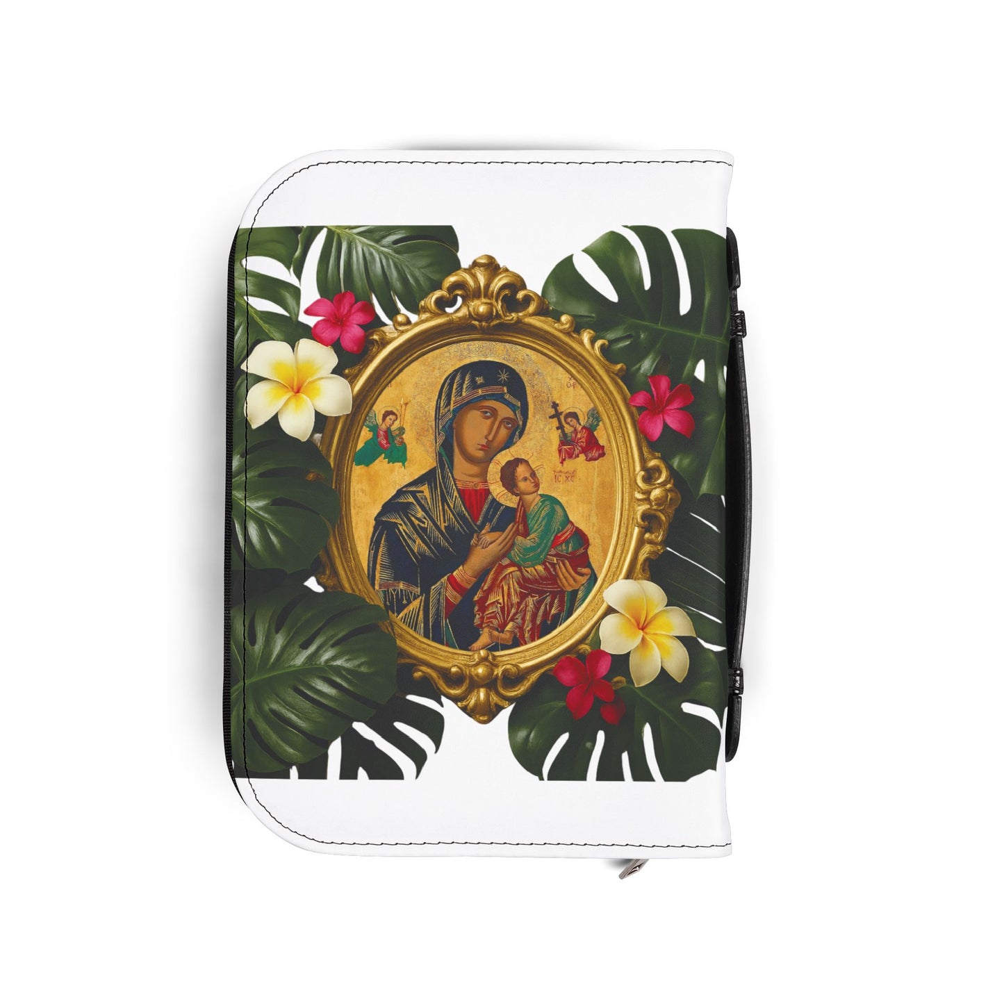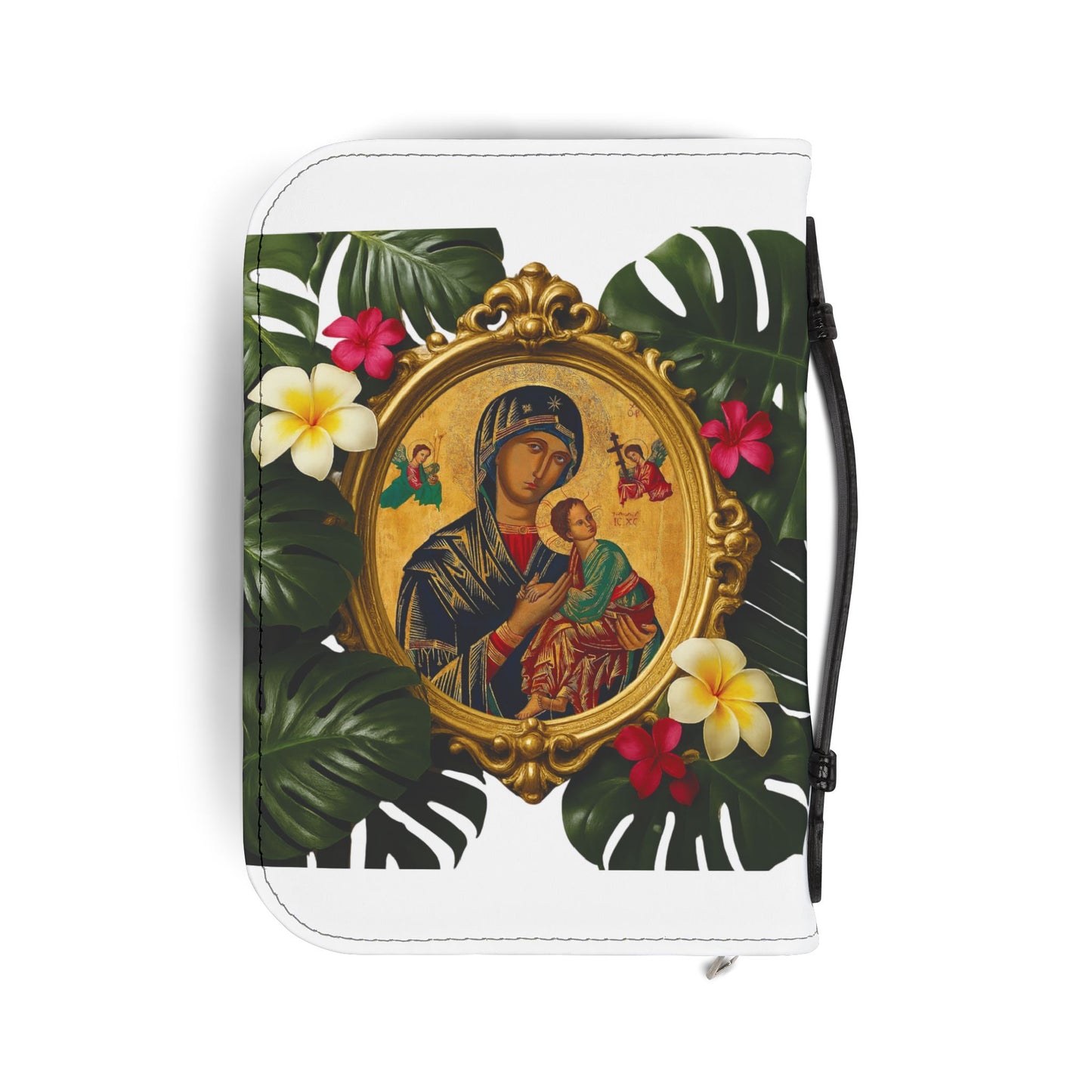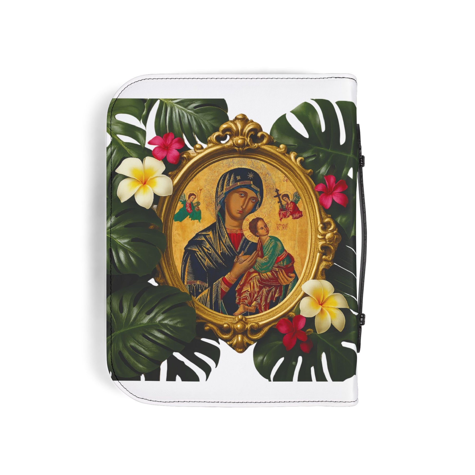 Tropical Bible Cover, Our Lady of Perpetual Help, White / Floral Bible Protector, Christian Church Accessories