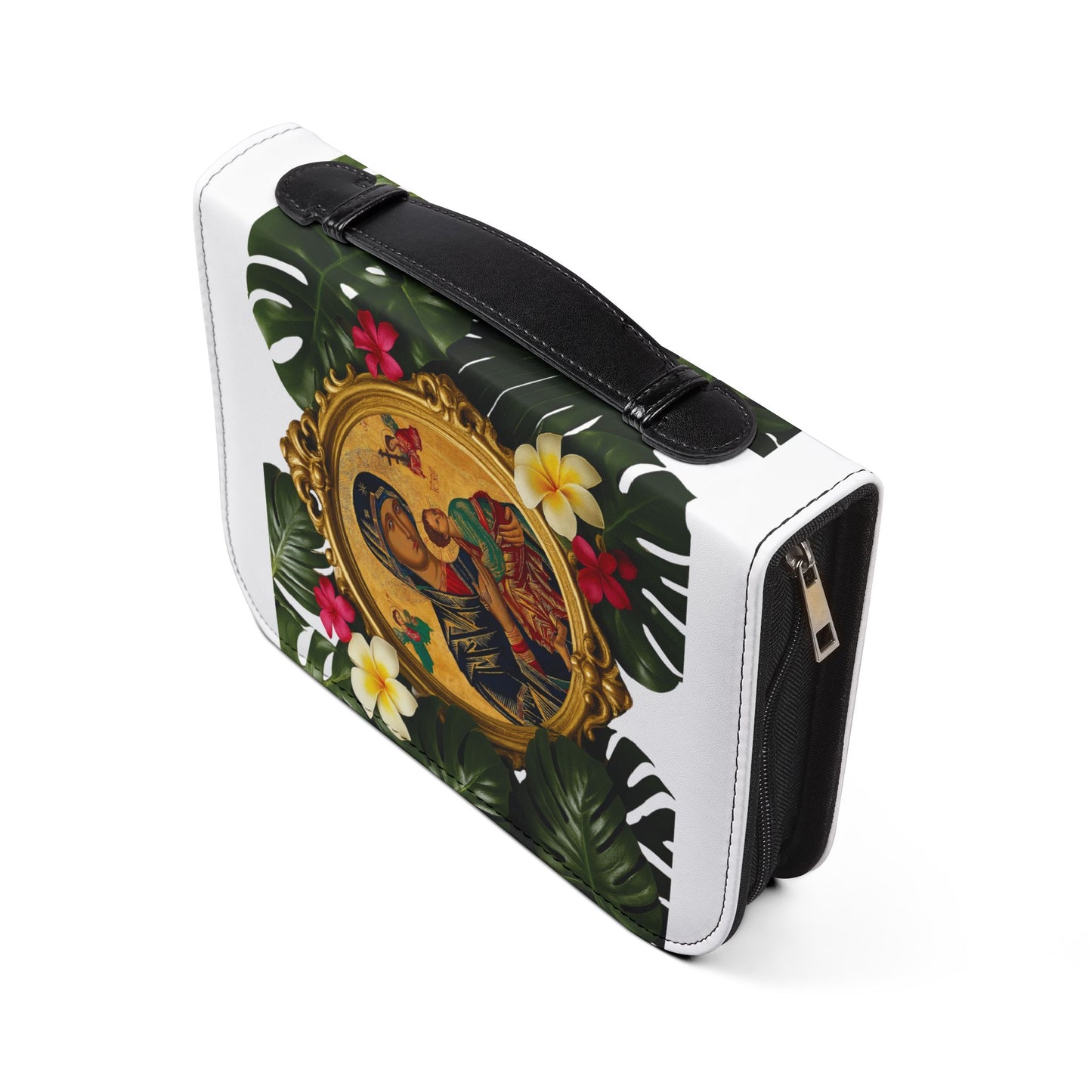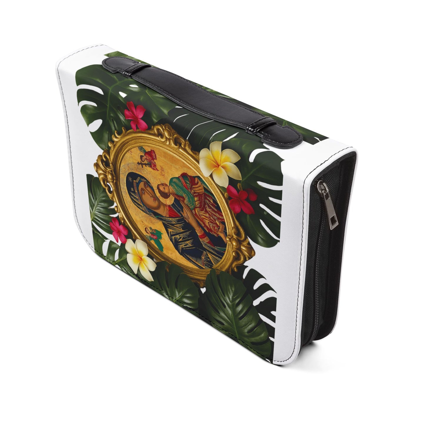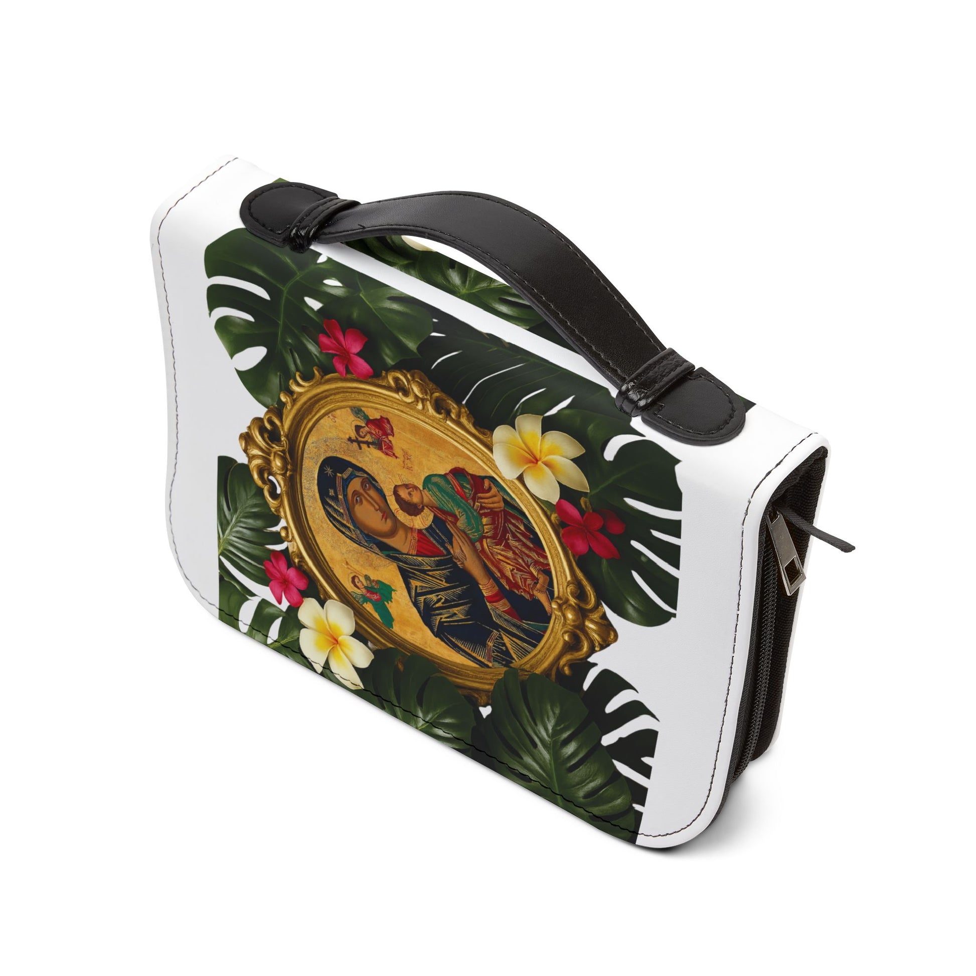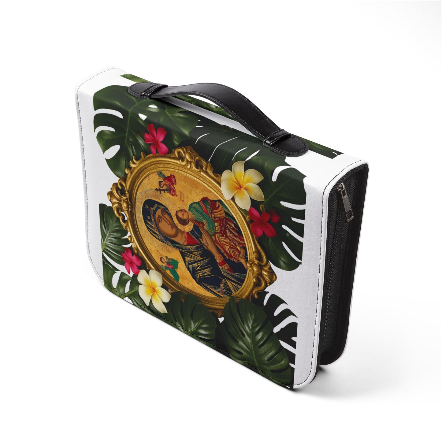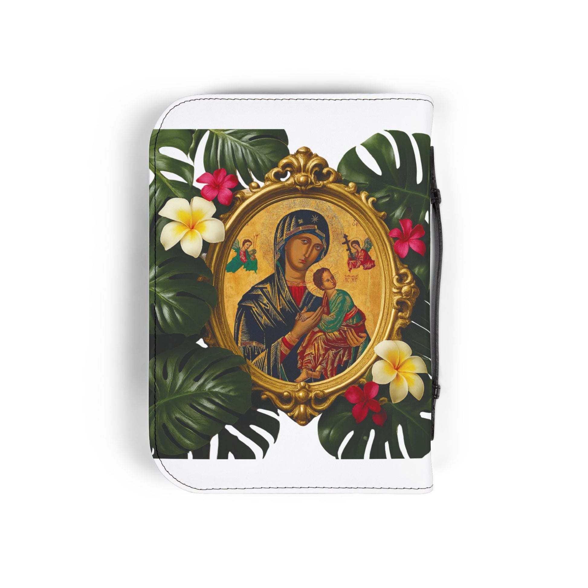 Tropical Bible Cover, Our Lady of Perpetual Help, White / Floral Bible Protector, Christian Church Accessories