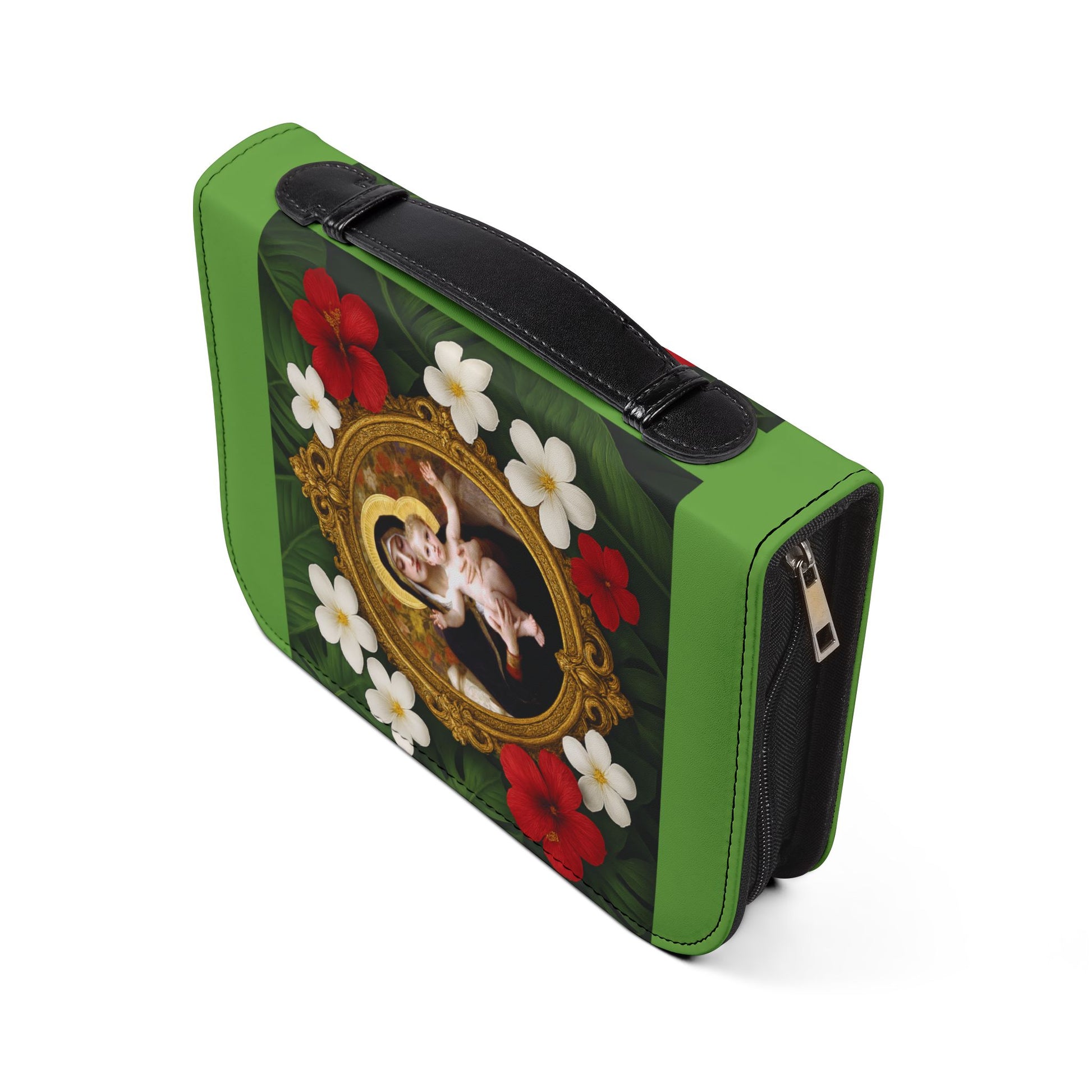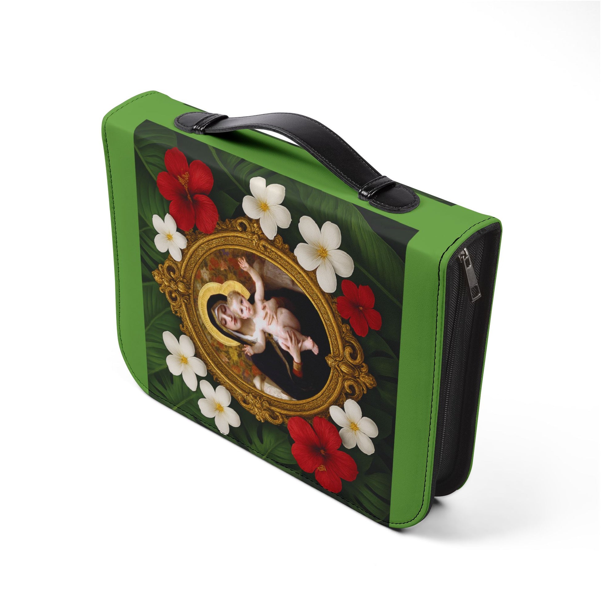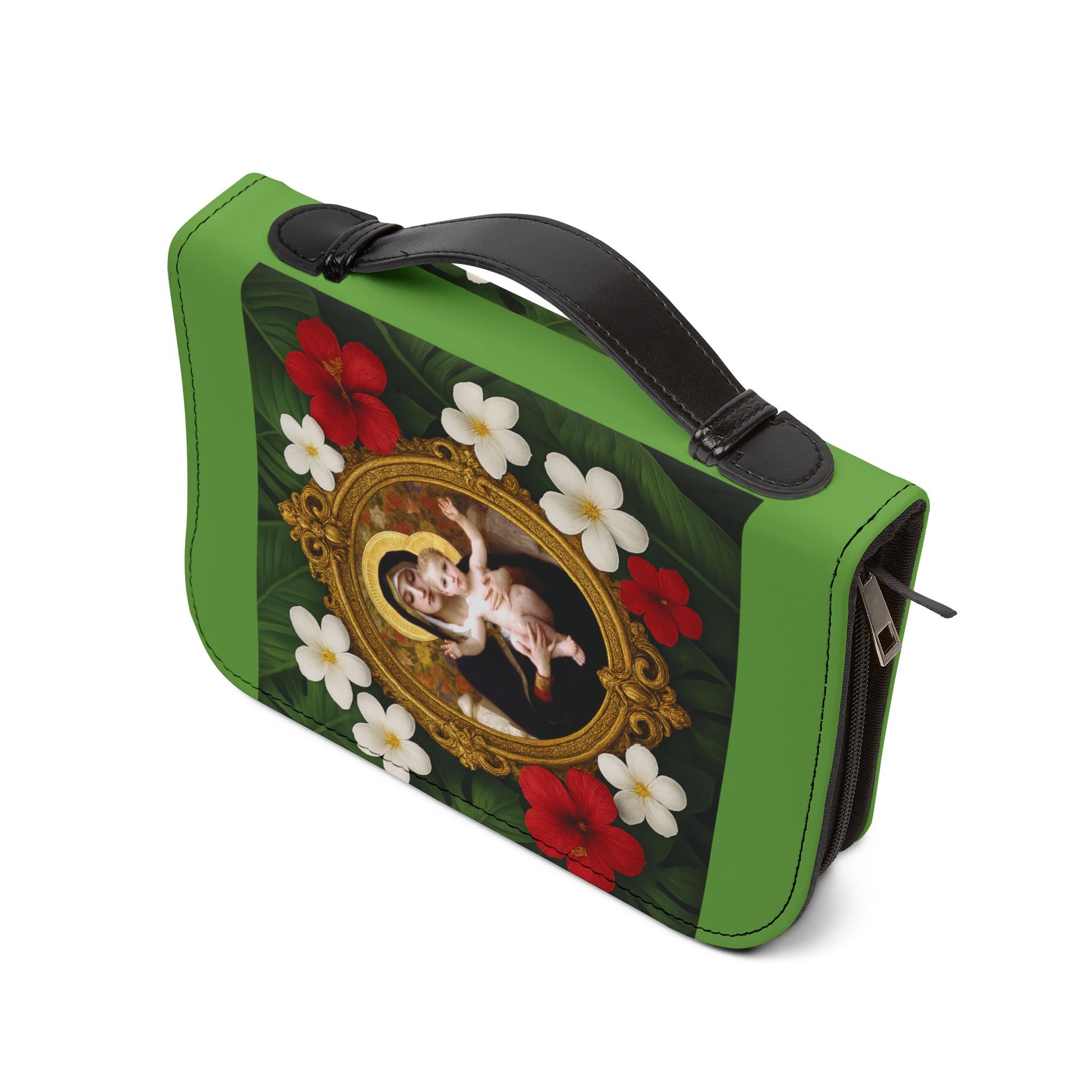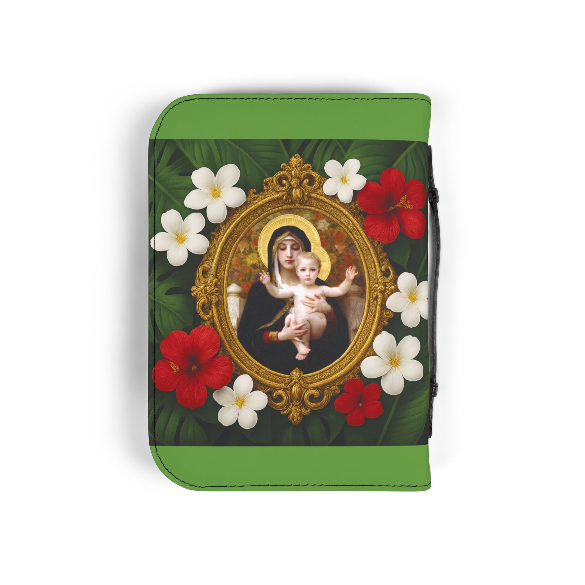 Tropical Bible Cover, Virgin of the Lilies Green / Floral Bible Protector, Christian Church Accessories