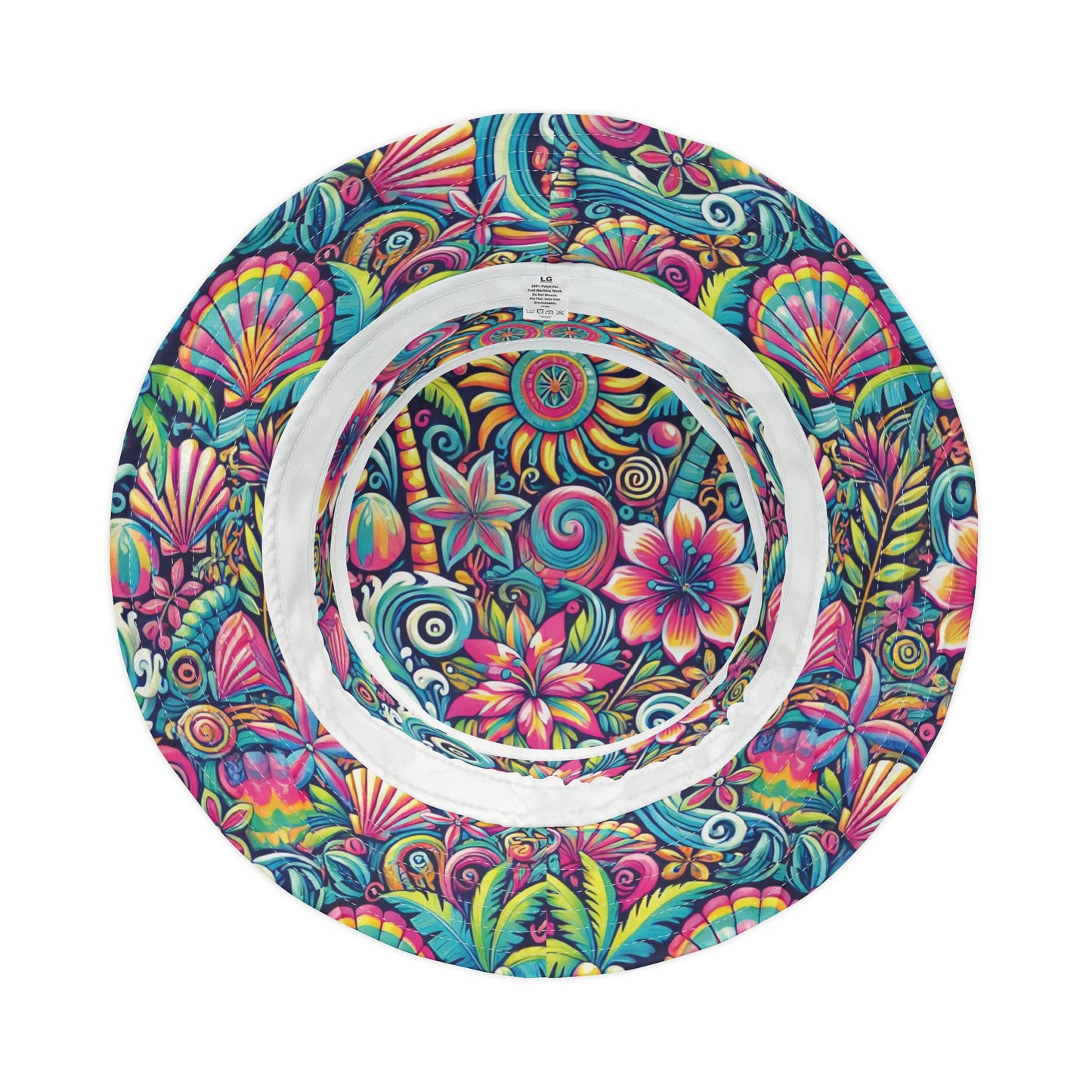 Tropical Bucket Hat, 2 Sizes, Polyester - Happy Tropics/White