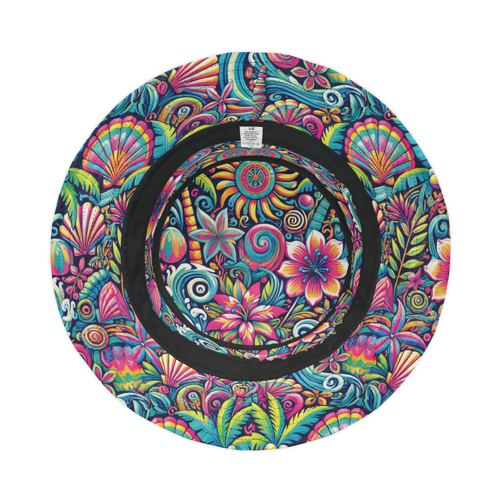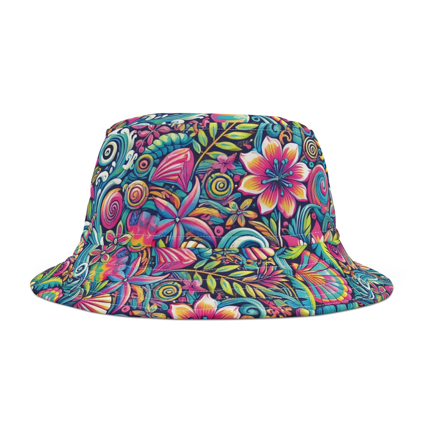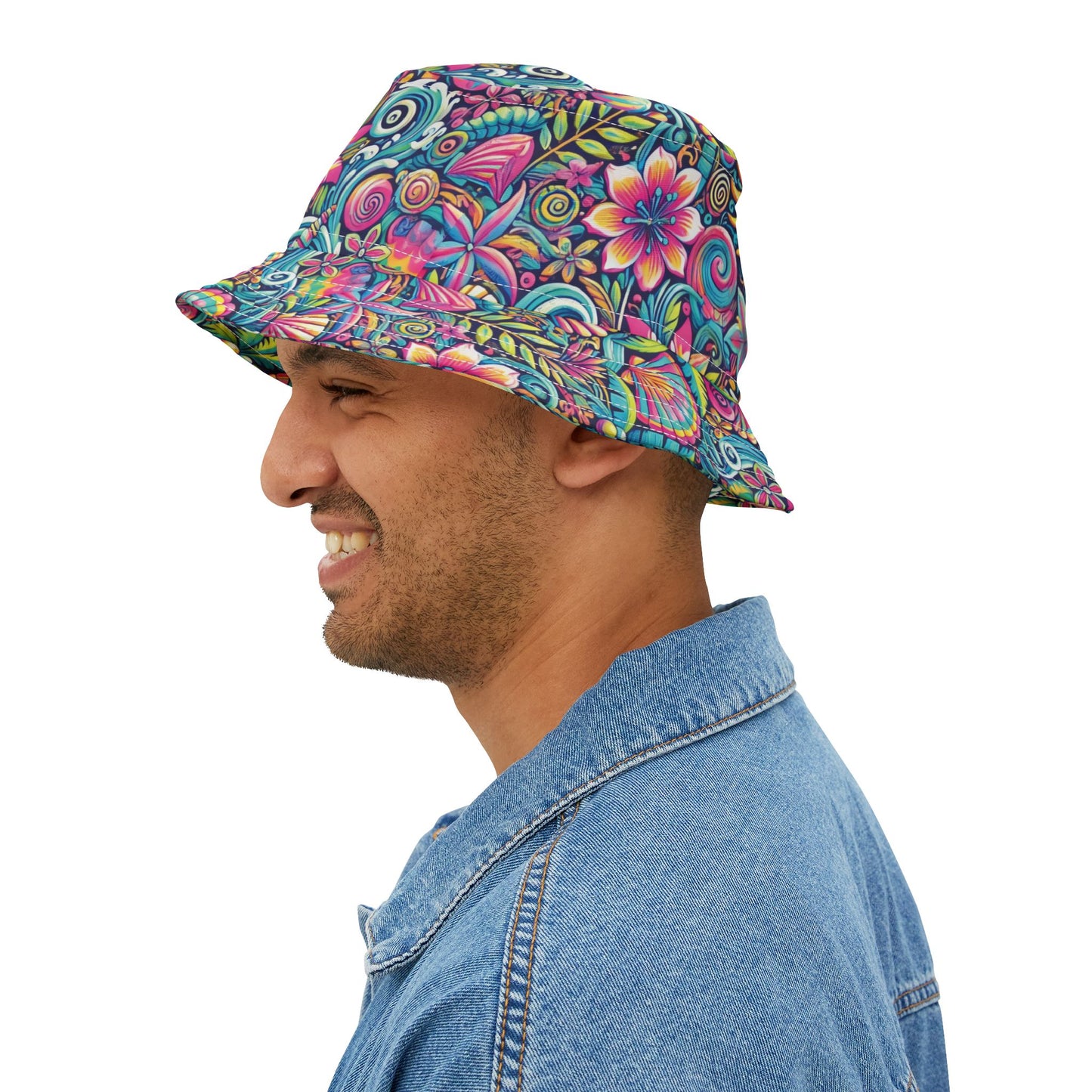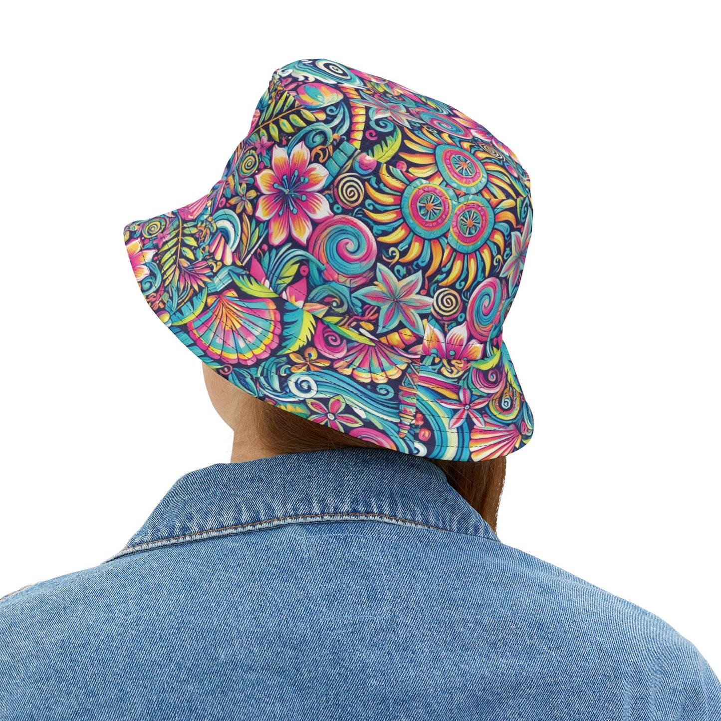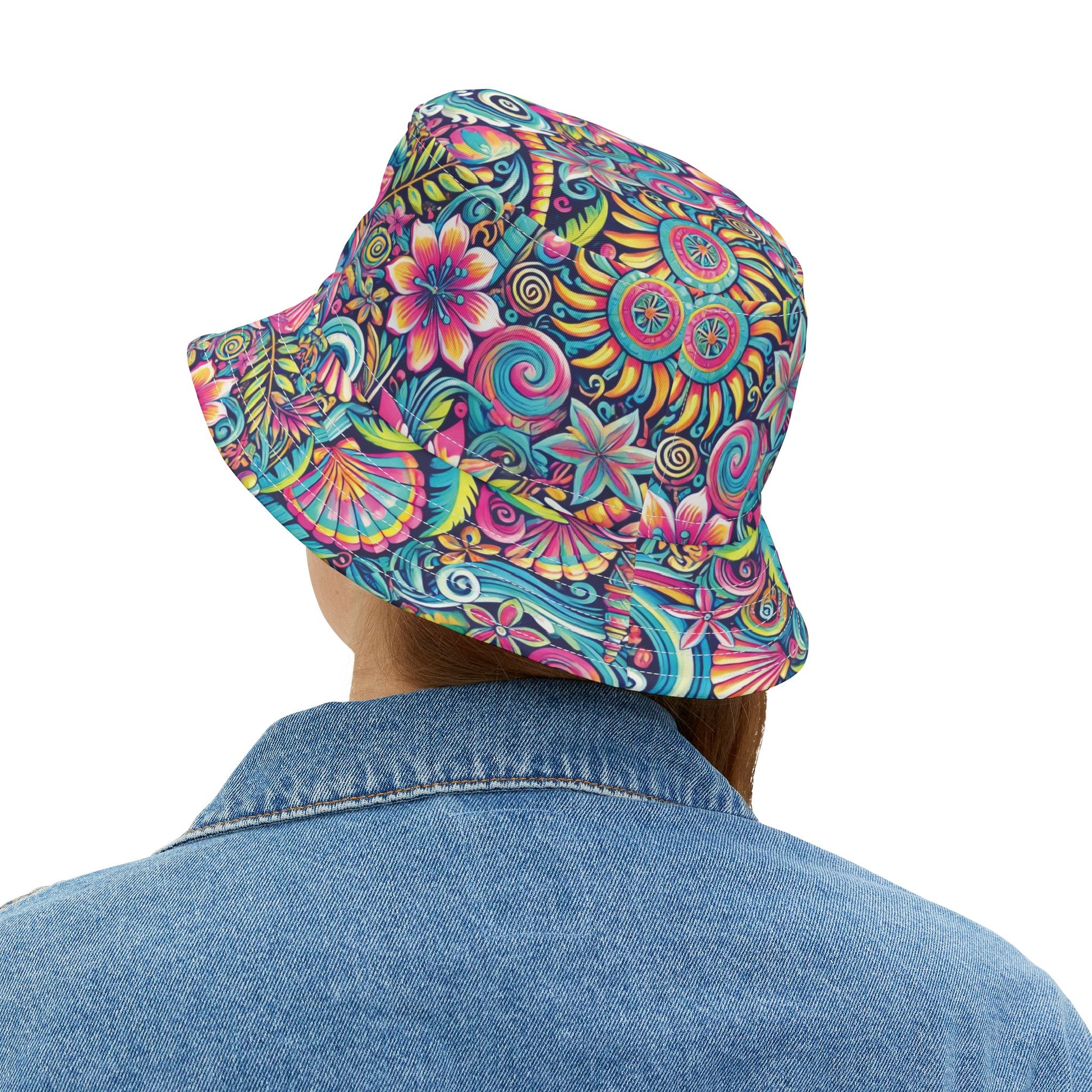 Introducing our vibrant tropical Bucket Hat, the perfect blend of style and functionality. Made from durable 100% polyester, this hat offers not just sun protection, but also a cheerful pop of color for your outfit. Ideal for beach days, water aerobics, music festivals or casual outings, it effortlessly complements any summer wardrobe. The bright, eye-catching design is perfect for the free-spirited individual looking to express their unique style. Available in multiple sizes with customizable stitching options, it caters to everyone, making it a fantastic gift for friends and family on occasions like birthdays, summer vacations. Celebrate your individuality this summer with our fun and fashionable Bucket Hat!