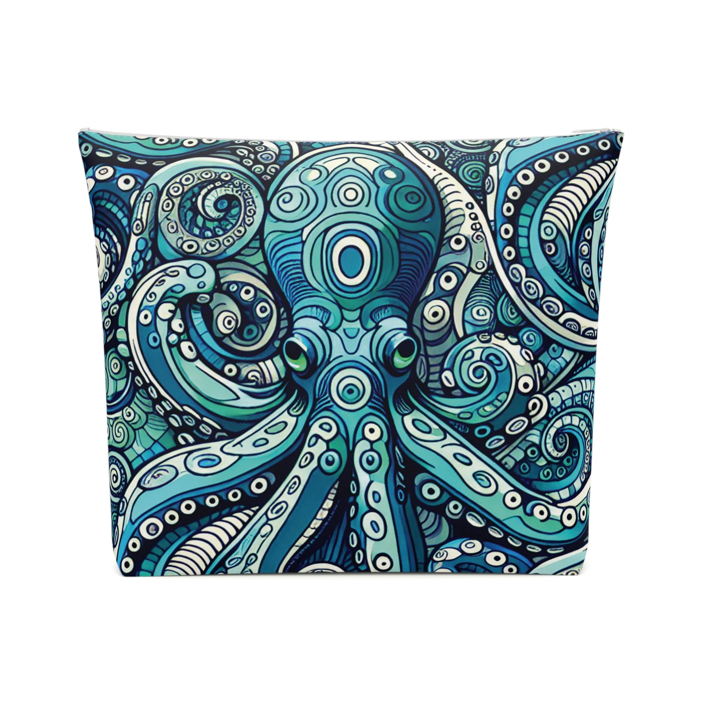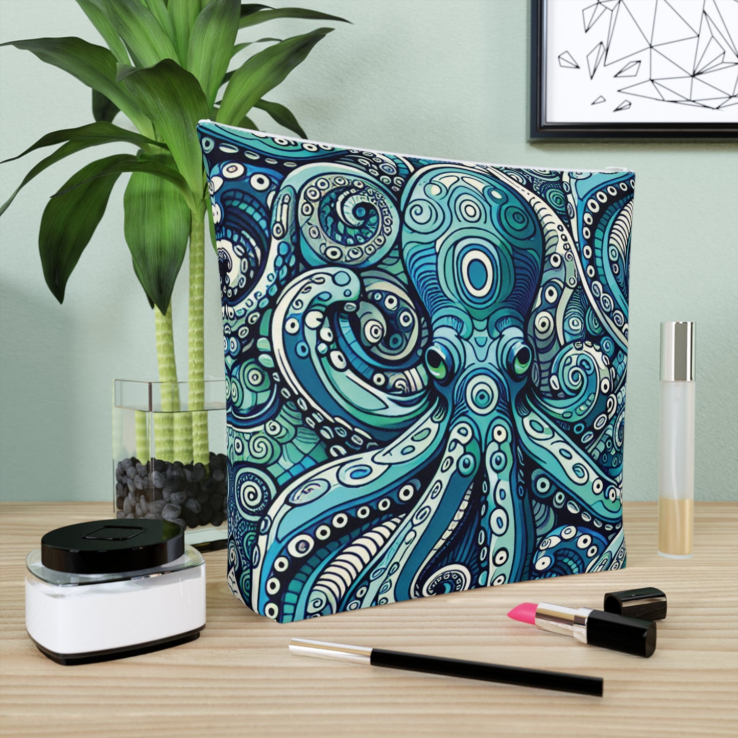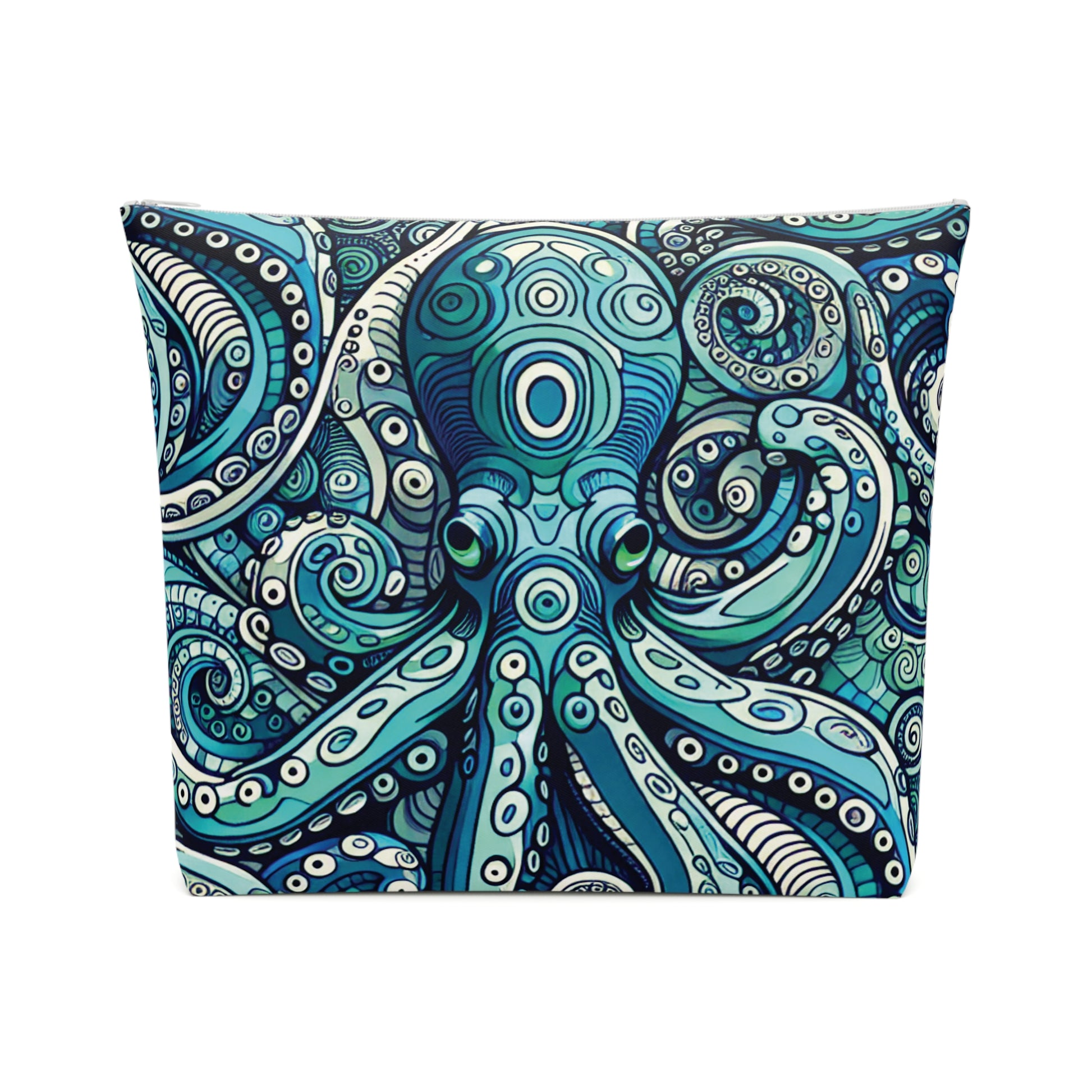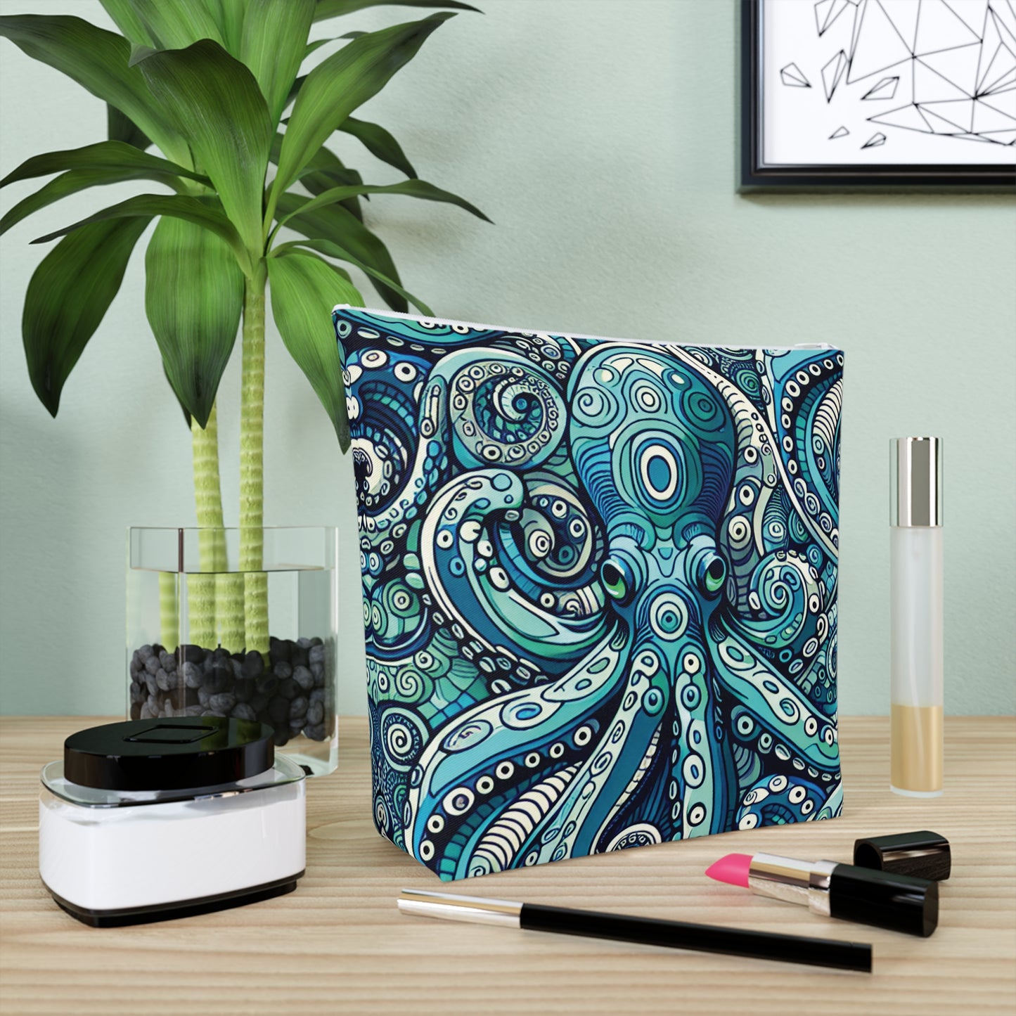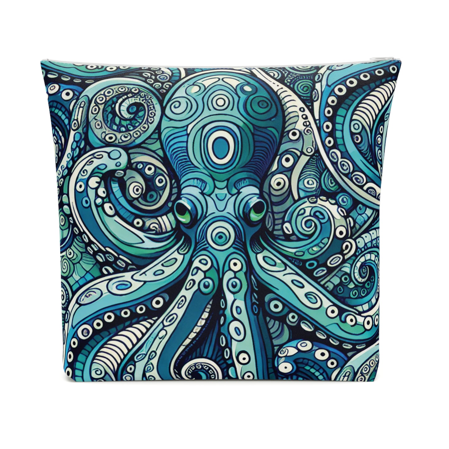 Tropical Cotton Cosmetic Bag - Makeup Pouch, 5 Sizes / Aqua Octopus