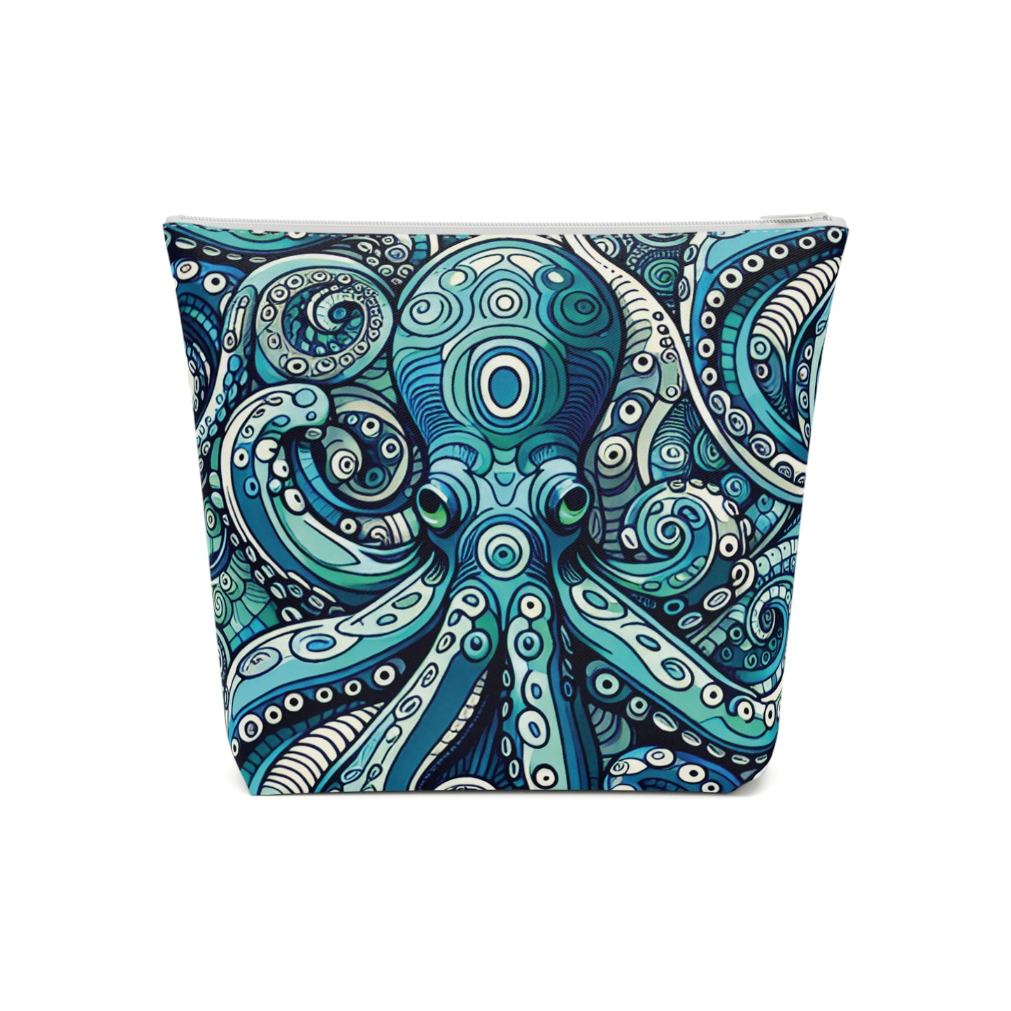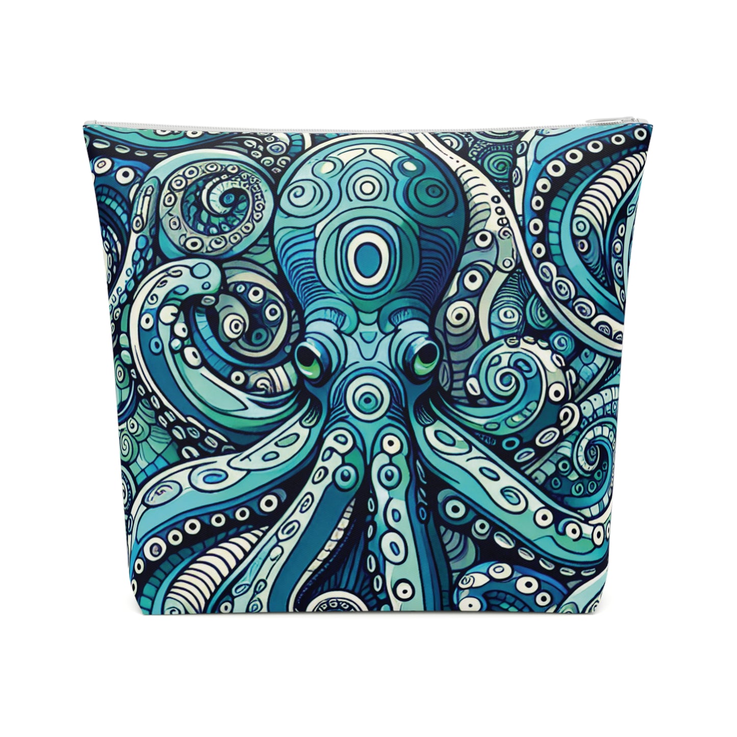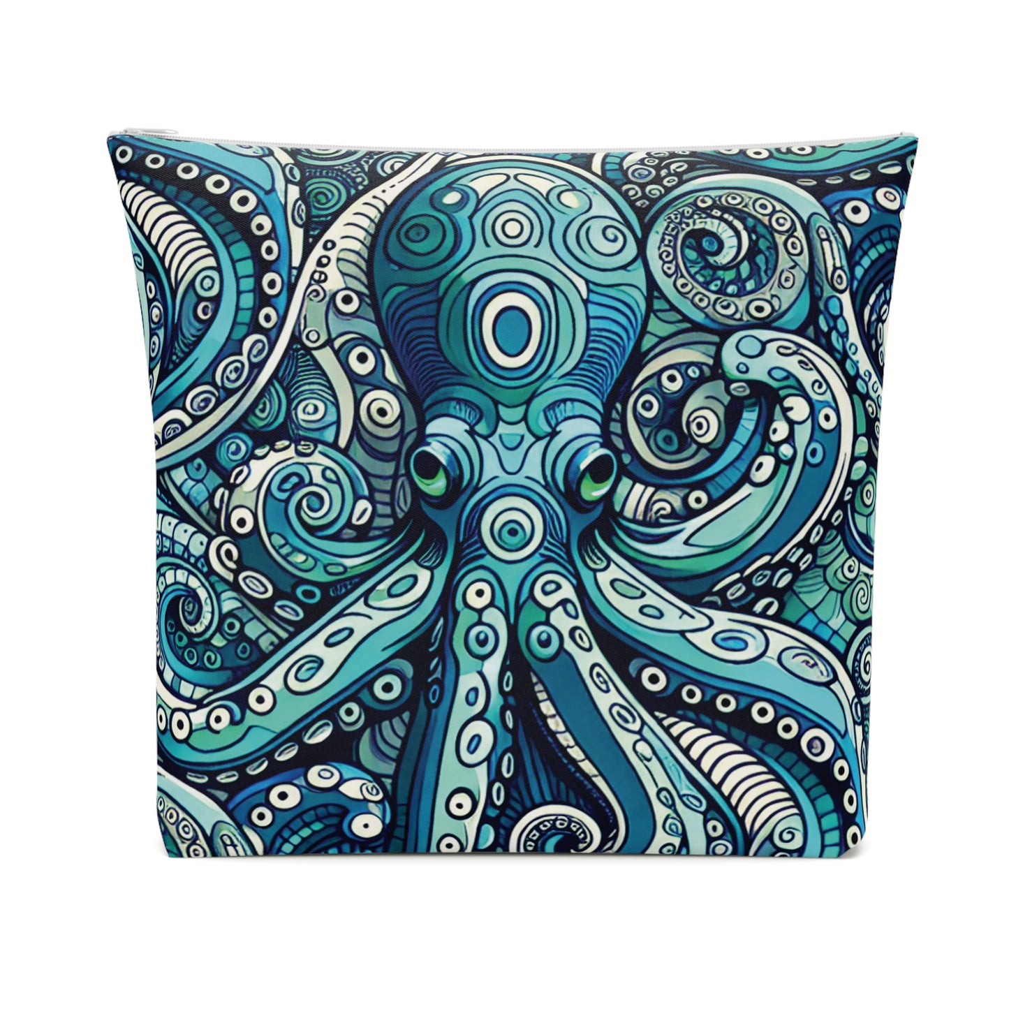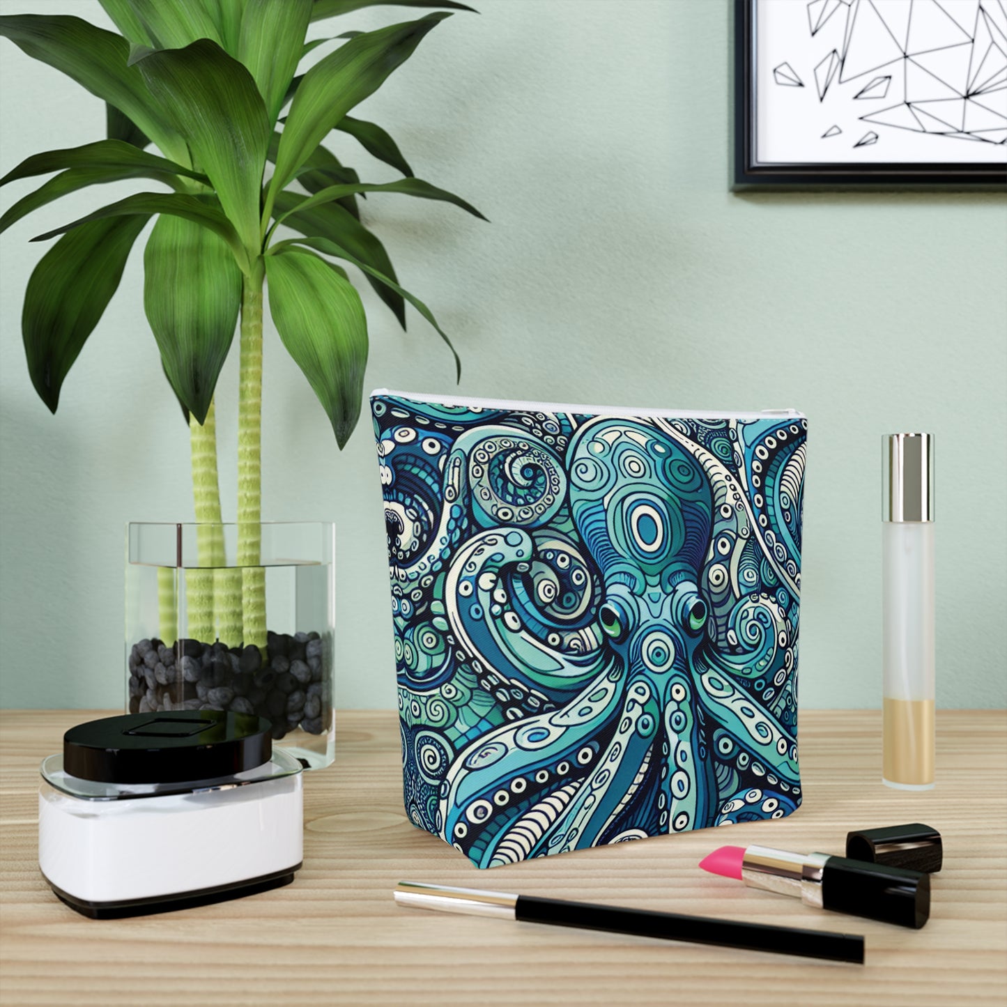 Tropical Cotton Cosmetic Bag - Makeup Pouch, 5 Sizes / Aqua Octopus