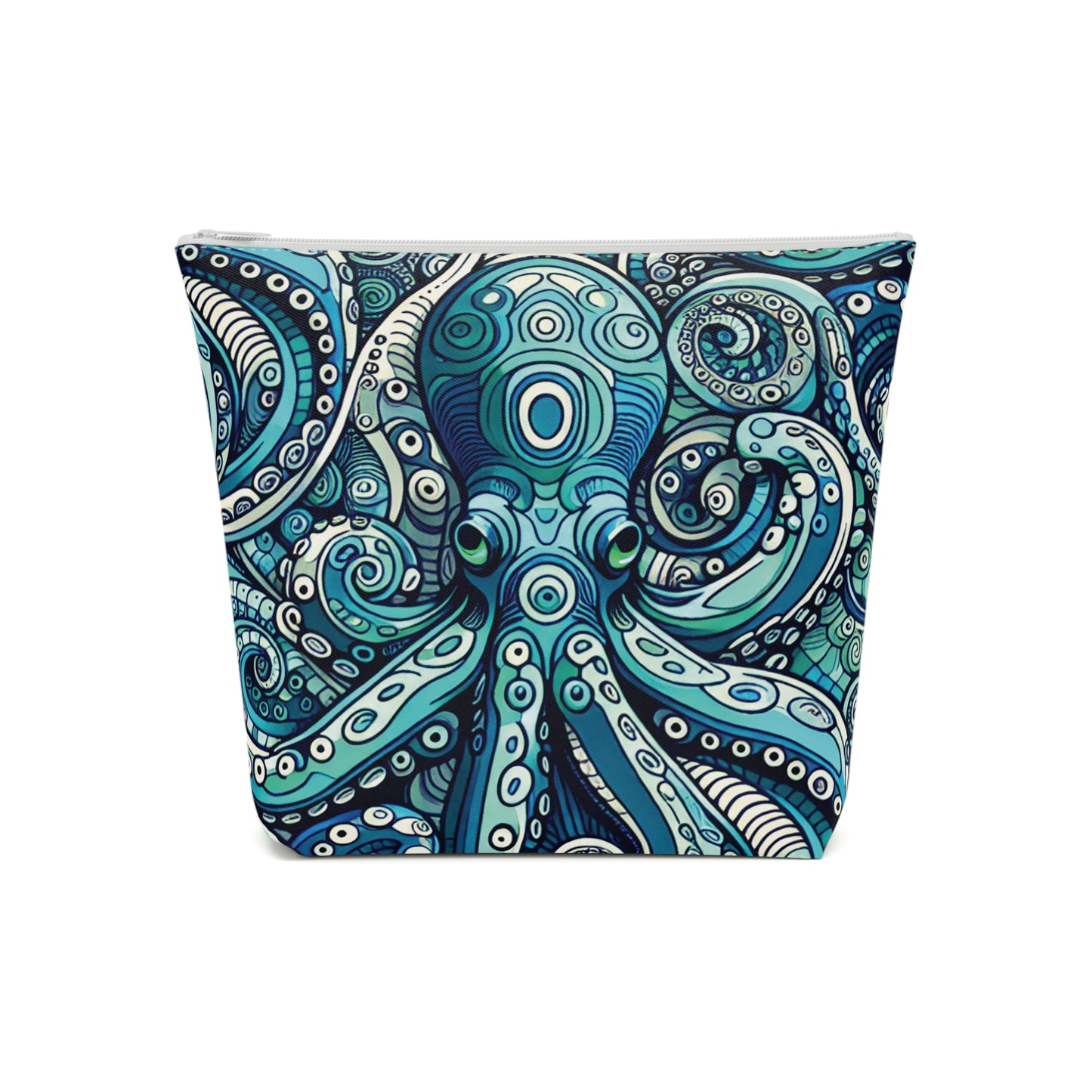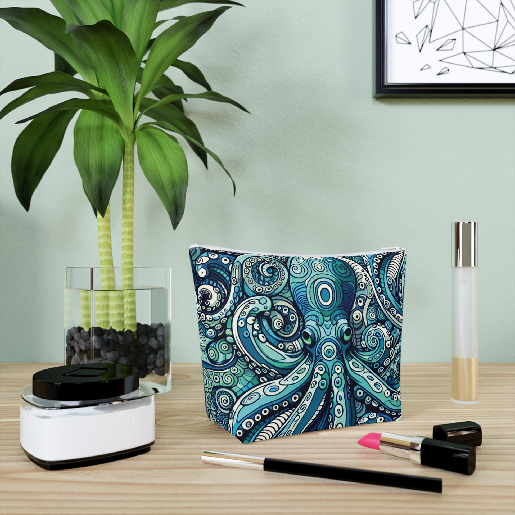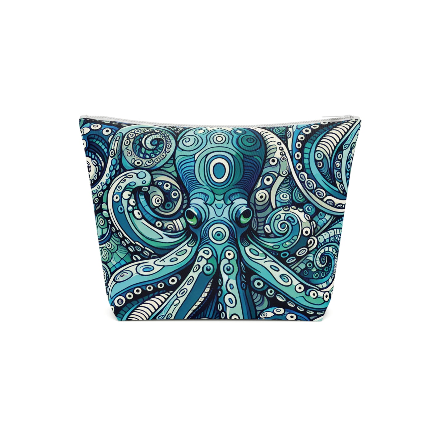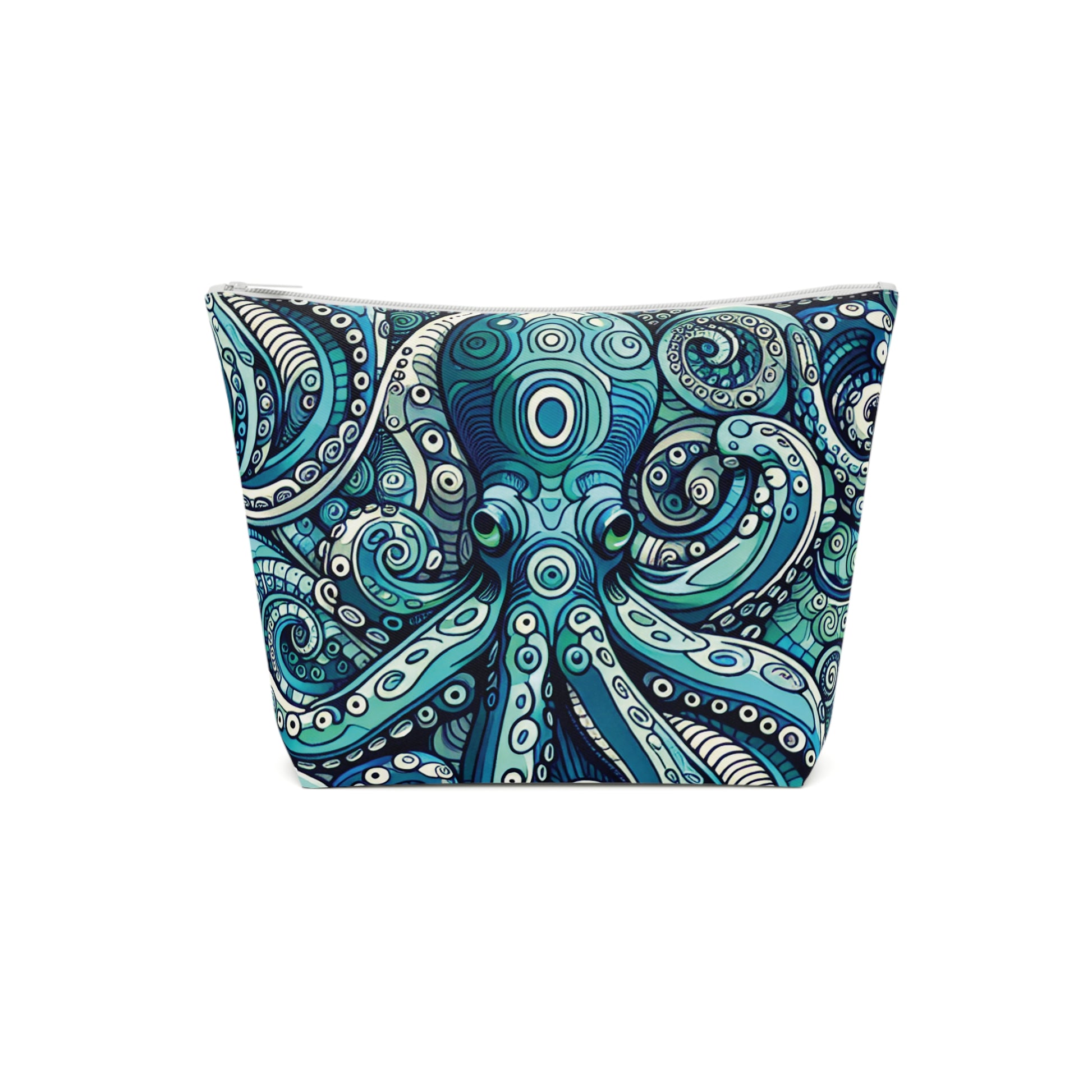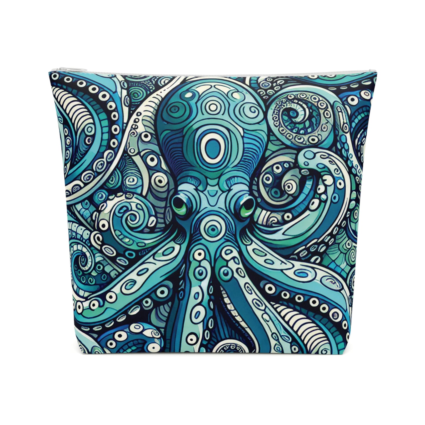 Tropical Cotton Cosmetic Bag - Makeup Pouch, 5 Sizes / Aqua Octopus