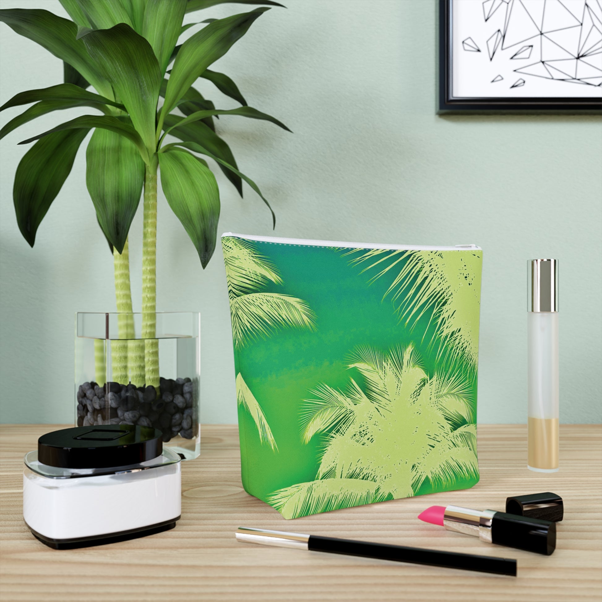 Tropical Cotton Cosmetic Bag, Makeup Pouch, 5 Sizes / Palm Glow, Green