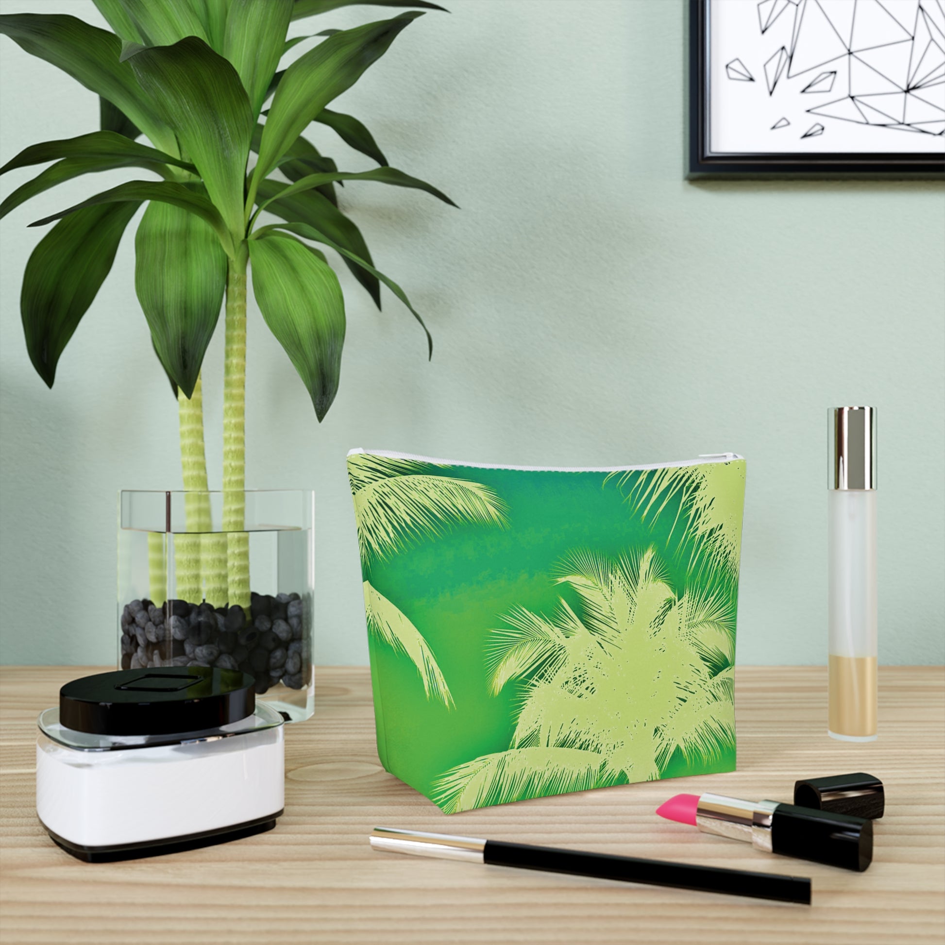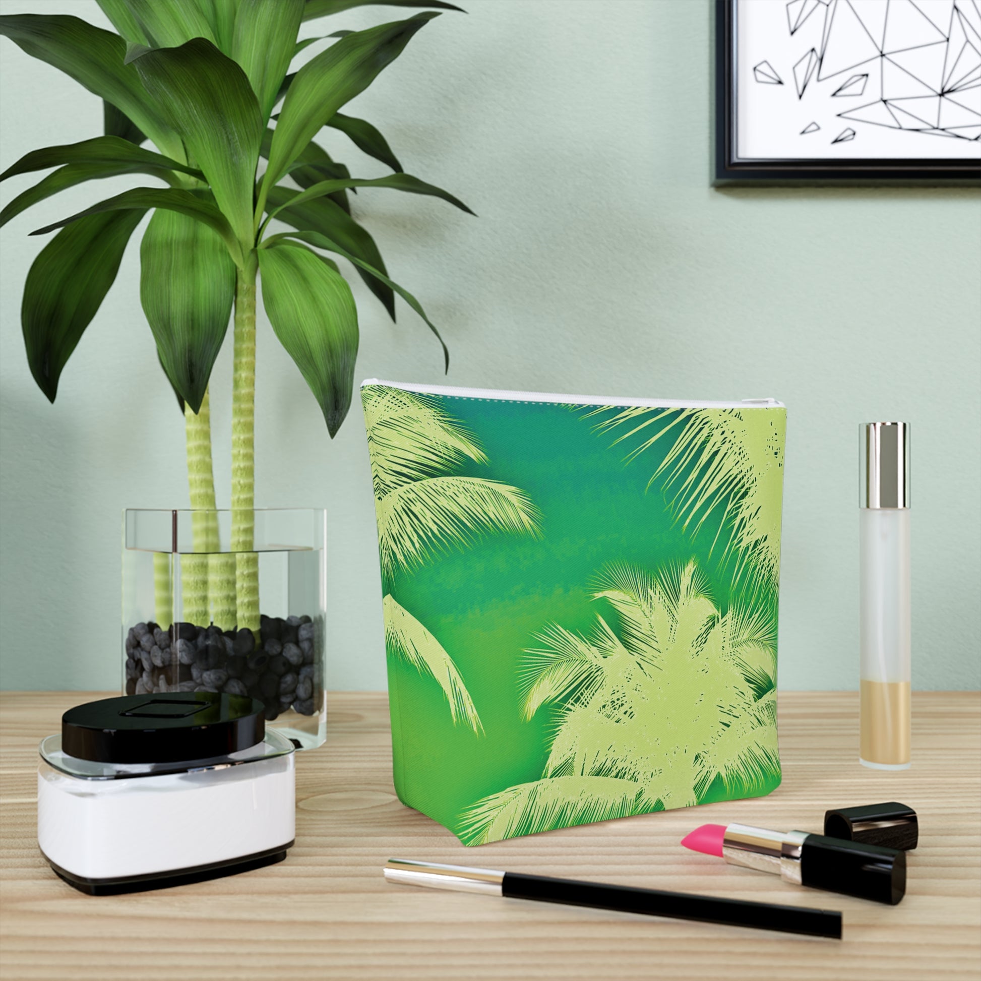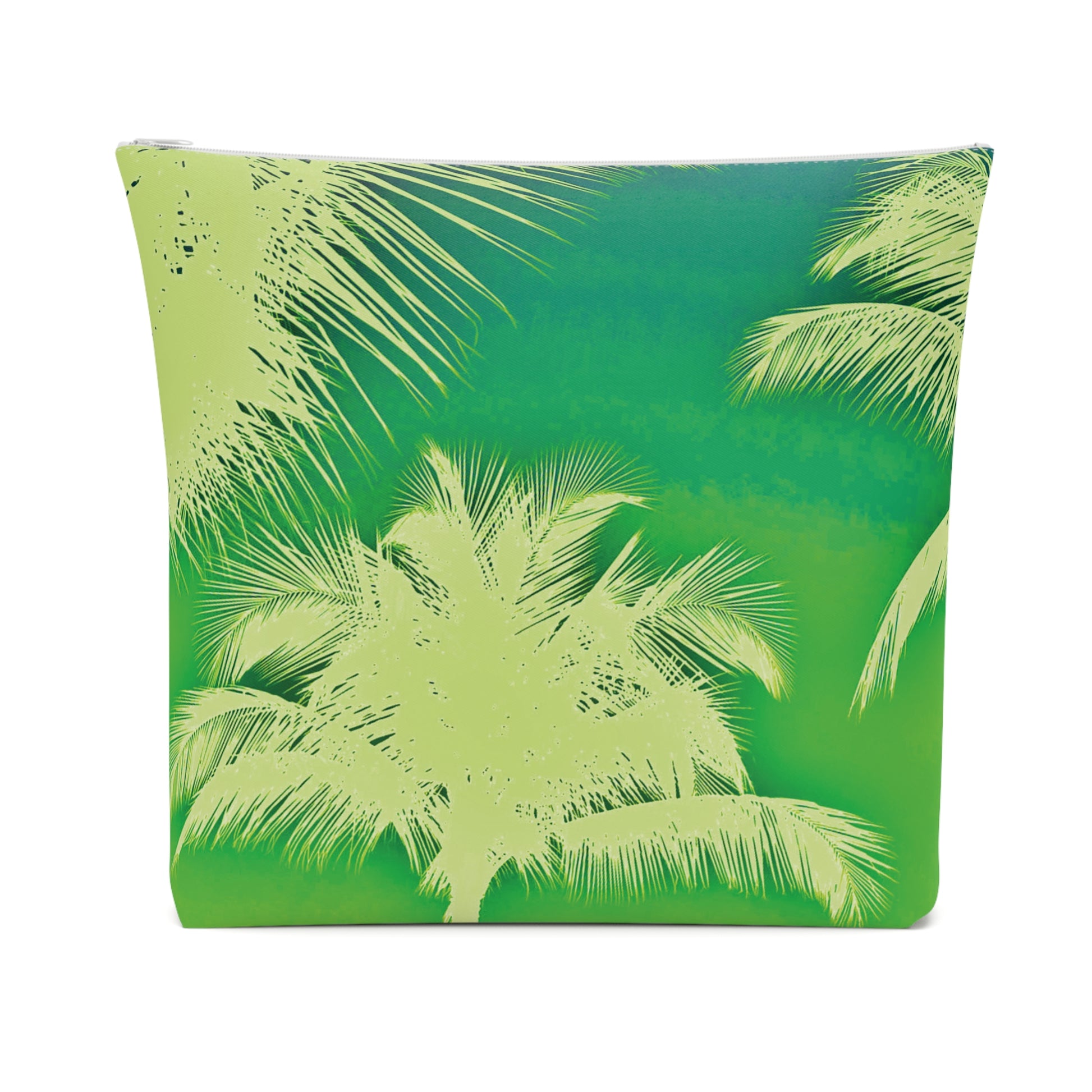 Tropical Cotton Cosmetic Bag, Makeup Pouch, 5 Sizes / Palm Glow, Green