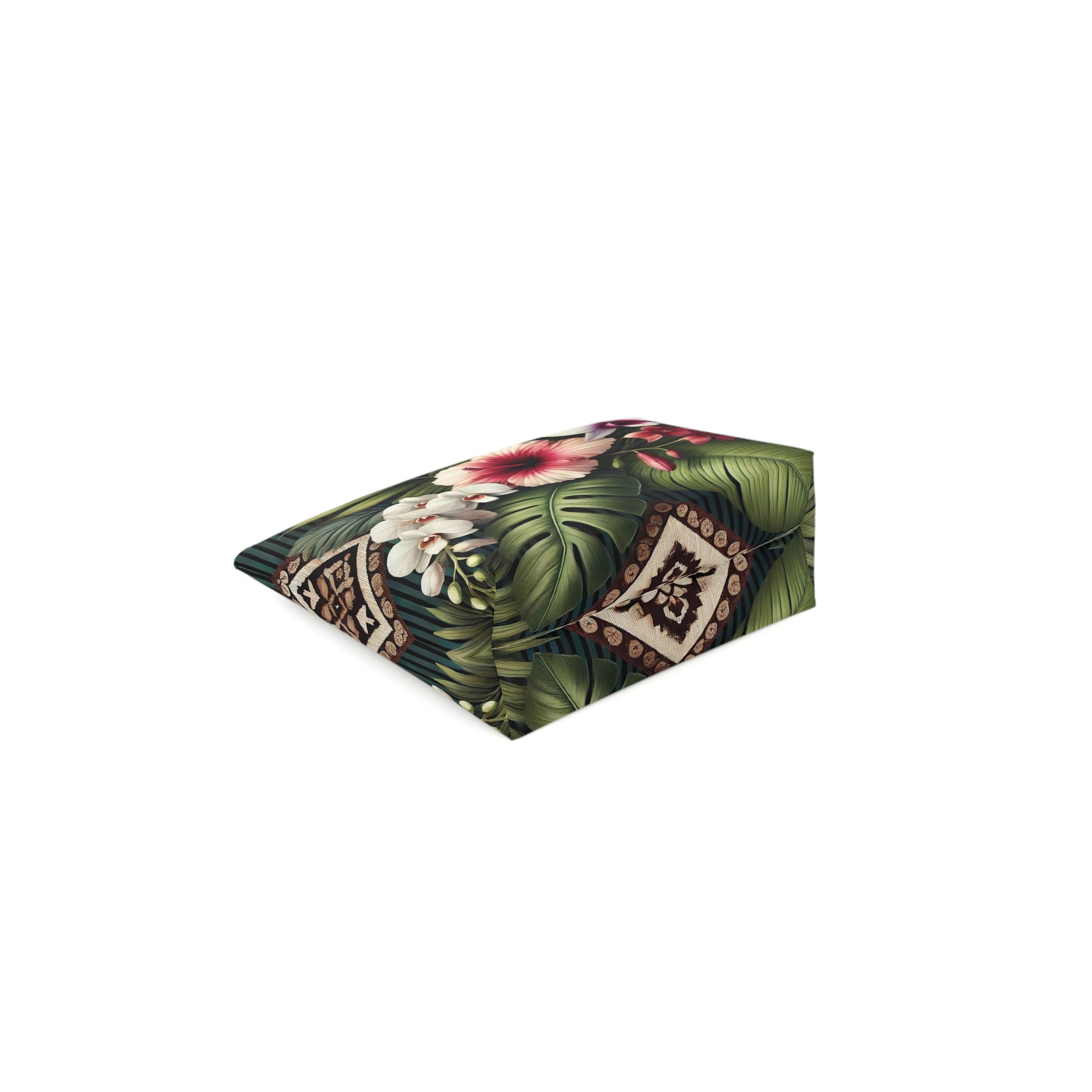 Beautiful and colorful design with orchids and tiki culture motifs.