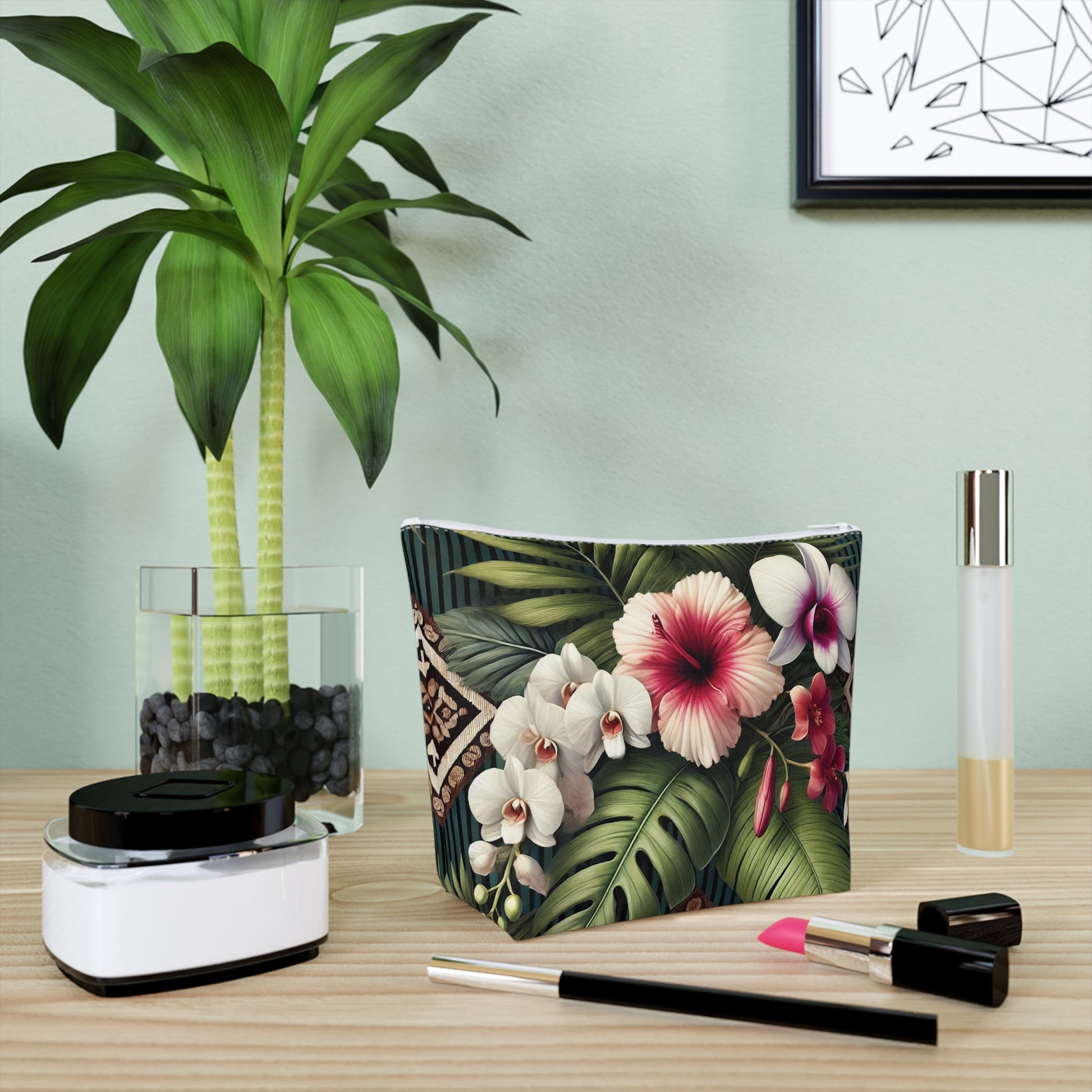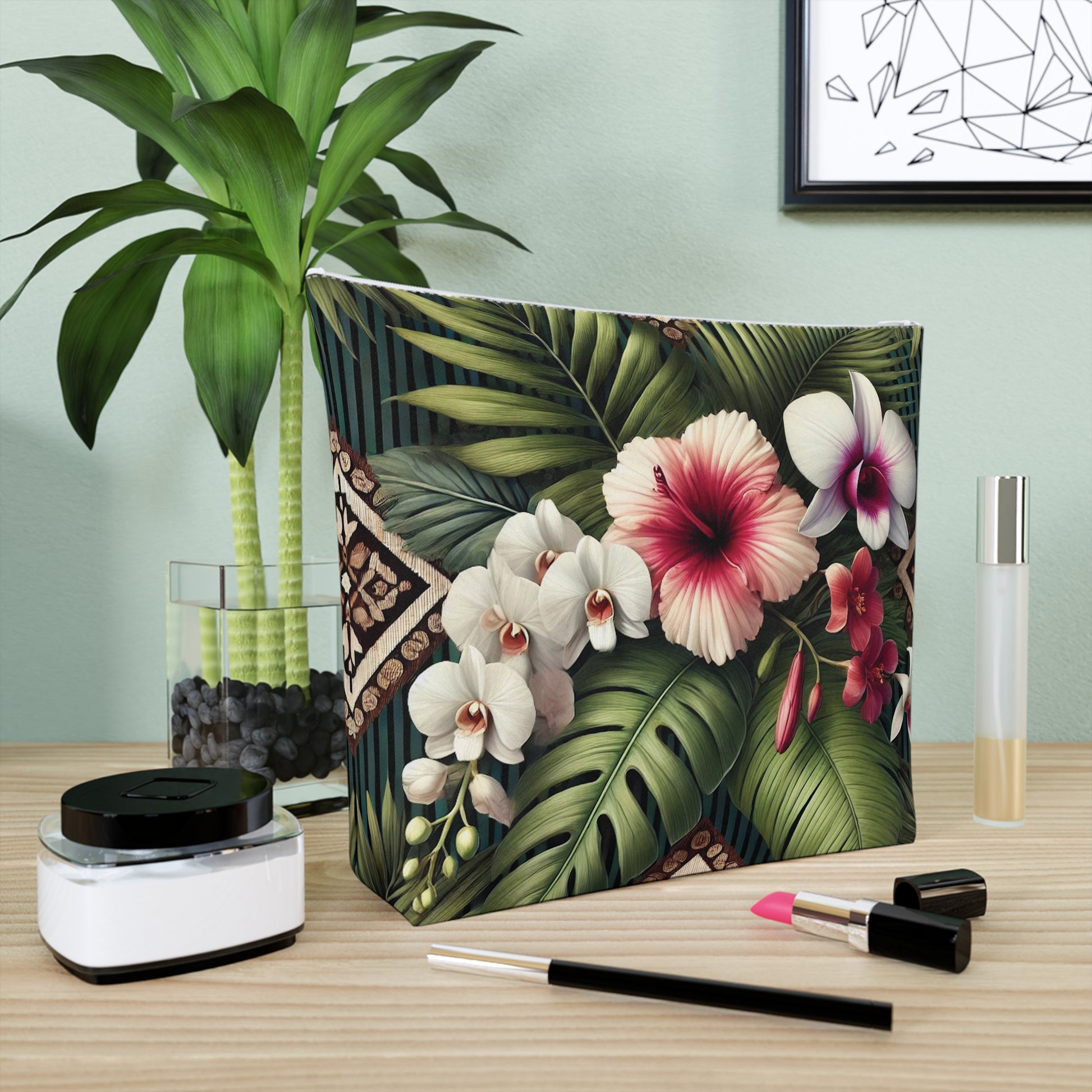 Tropical Cotton Cosmetic Bag, Makeup Pouch, 5 Sizes / Tiki Orchids