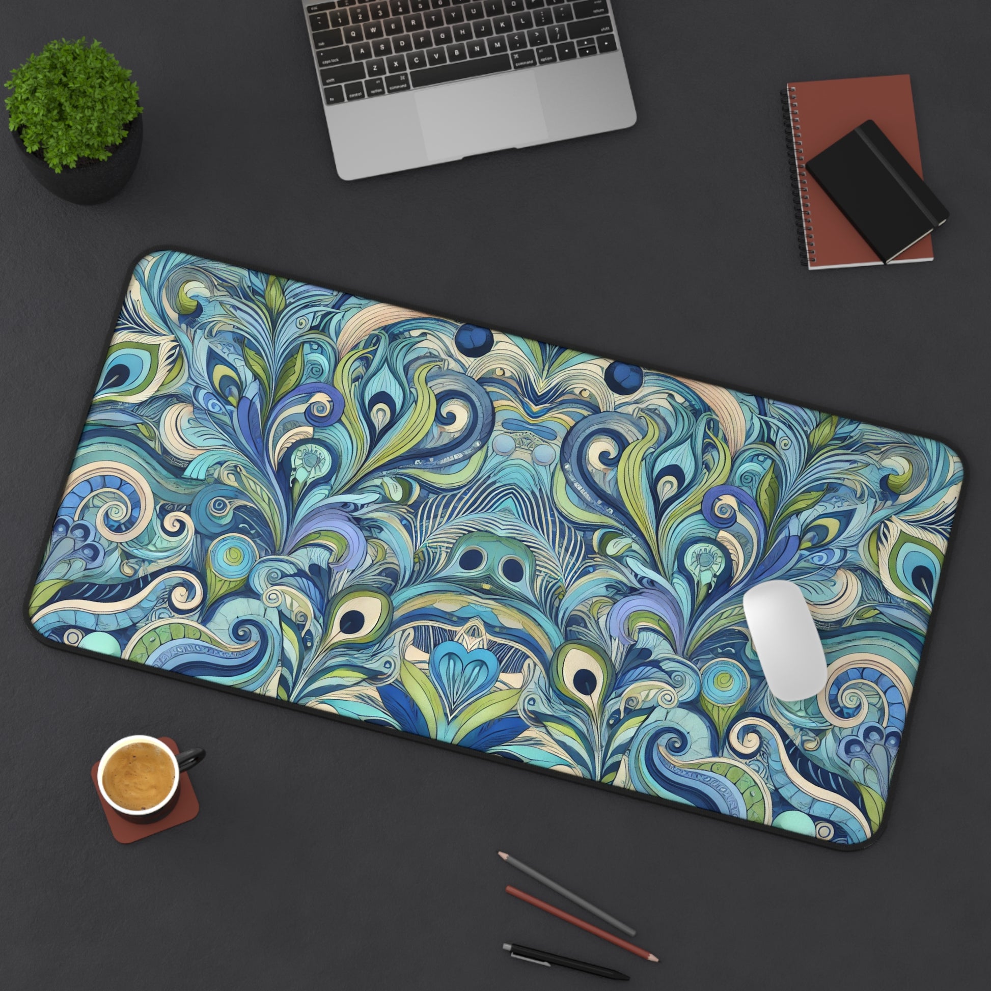 Tropical Mouse Pad/Desk Mat, 3 Sizes - Perfect for Home Office / Feather Currents Blue