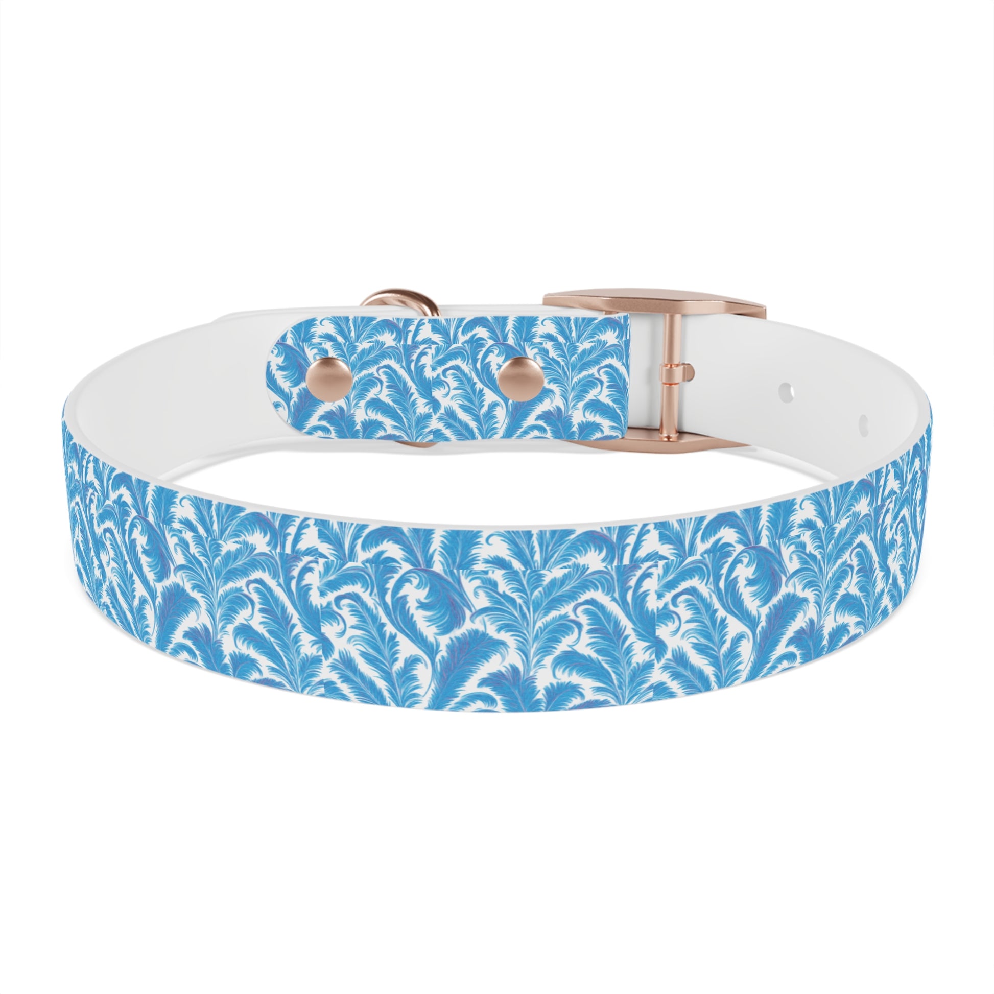 Add a touch of personality for all the playful pet pals out there with a personalized dog collar. Made in the USA from advanced Thermo-Elastomer material, this personalized collar for dogs is odor and stain-resistant as well as hypo-allergenic. Features our exclusive Rocco Blues design, giving off tropical forest vibes!