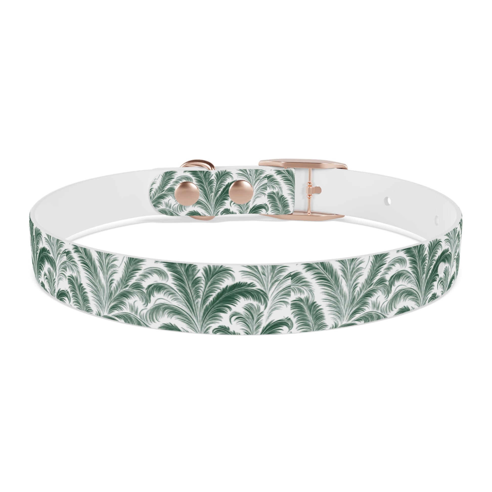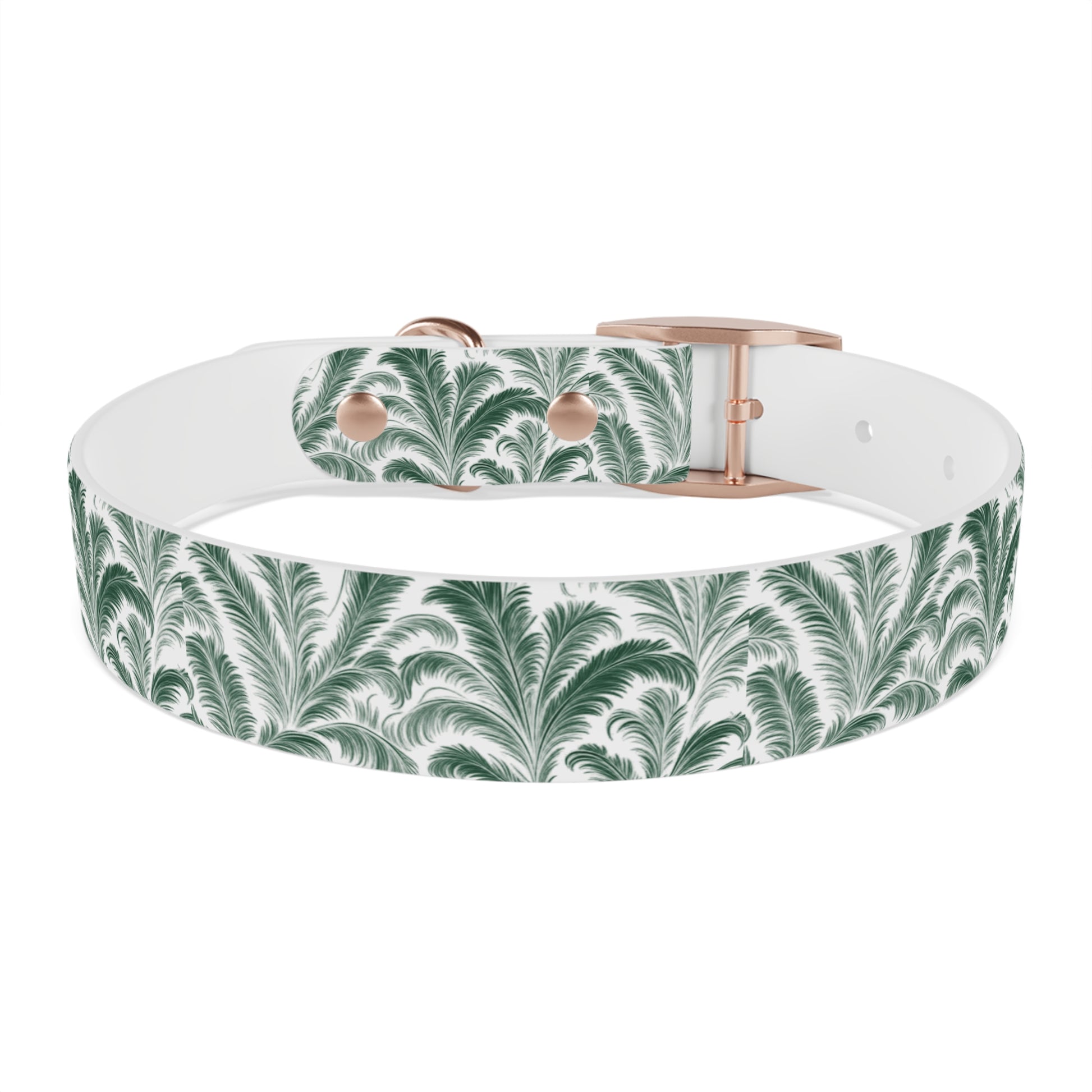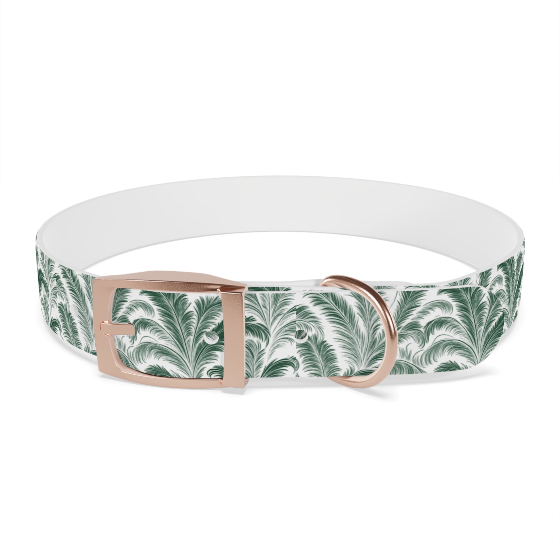 Add a touch of personality for all the playful pet pals out there with a personalized dog collar. Made in the USA from advanced Thermo-Elastomer material, this personalized collar for dogs is odor and stain-resistant as well as hypo-allergenic. Features our exclusive Rocco Green design, giving off tropical forest vibes!