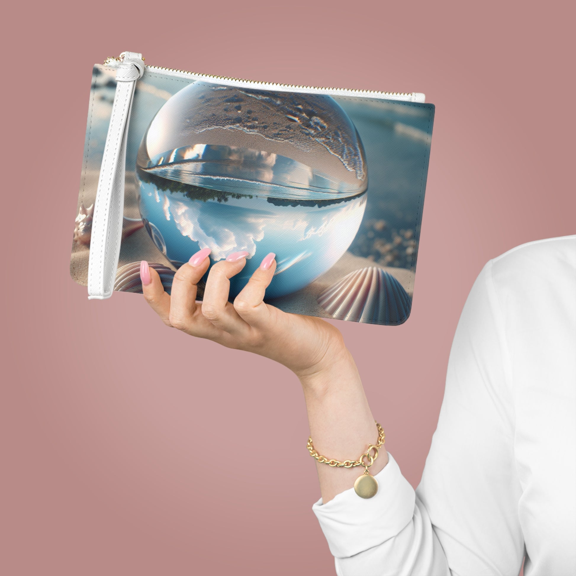 Tropical Faux Leather Clutch Bag - Perfect for Beach Adventures & Summer Vacations / Beach Illusion Ball, Shells