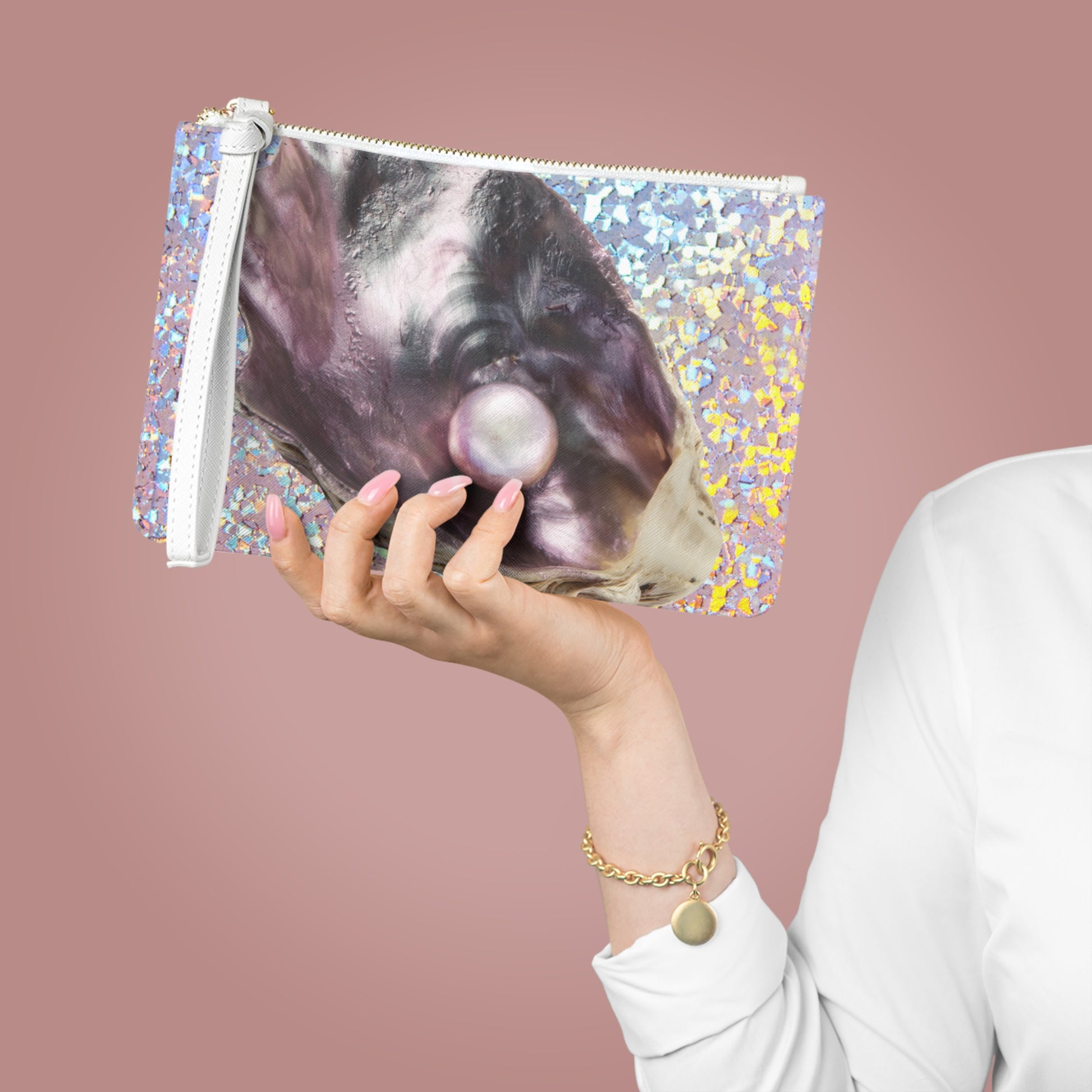 Tropical Faux Leather Clutch Bag - Perfect for Beach Adventures & Summer Vacations / Disco FW Lavender Pearl Oyster