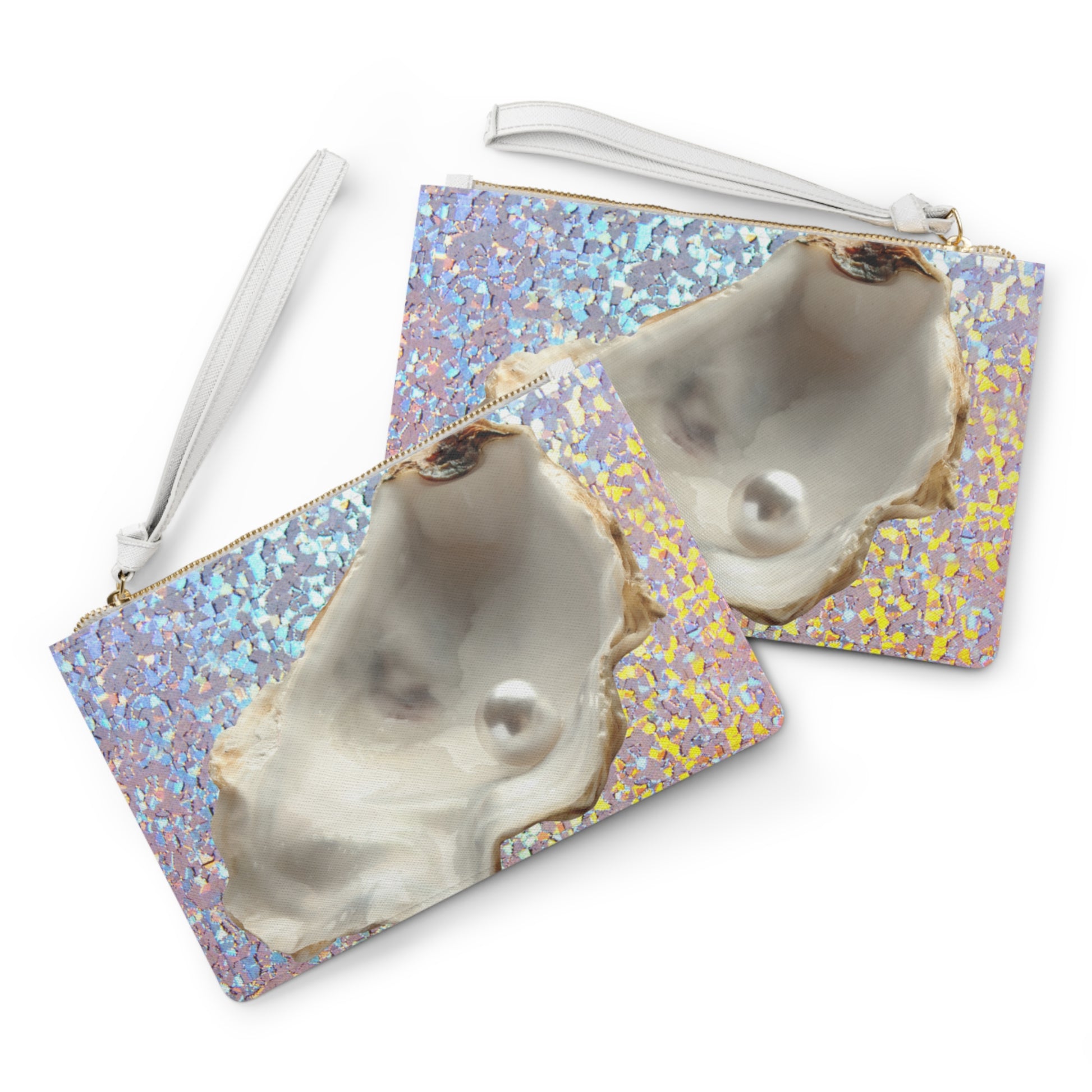 Tropical Faux Leather Clutch Bag - Perfect for Beach Adventures & Summer Vacations / Disco FW White Pearl Oyster