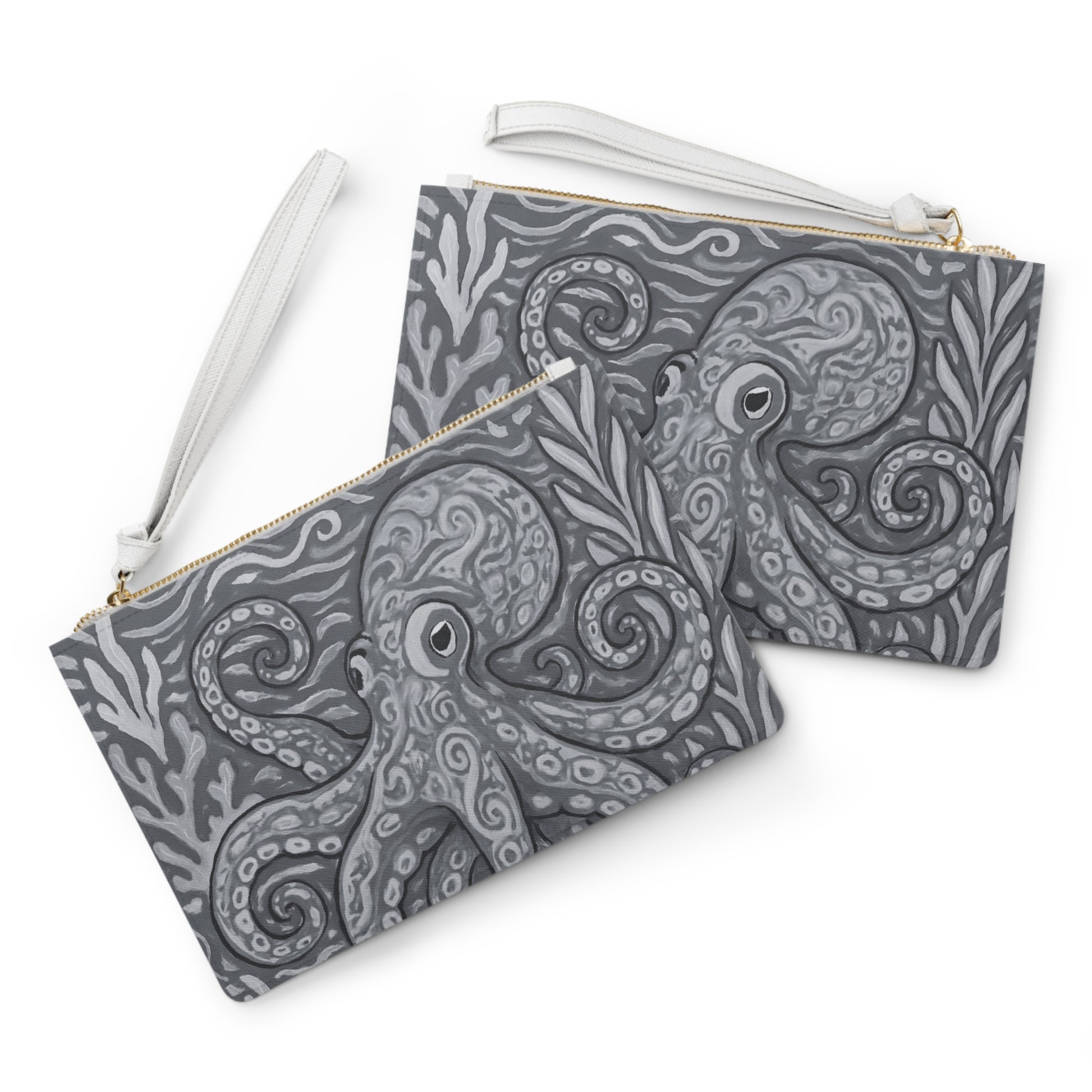 Tropical Faux Leather Clutch Bag - Perfect for Beach Adventures & Summer Vacations / Octopus Kraken Joe, Noir