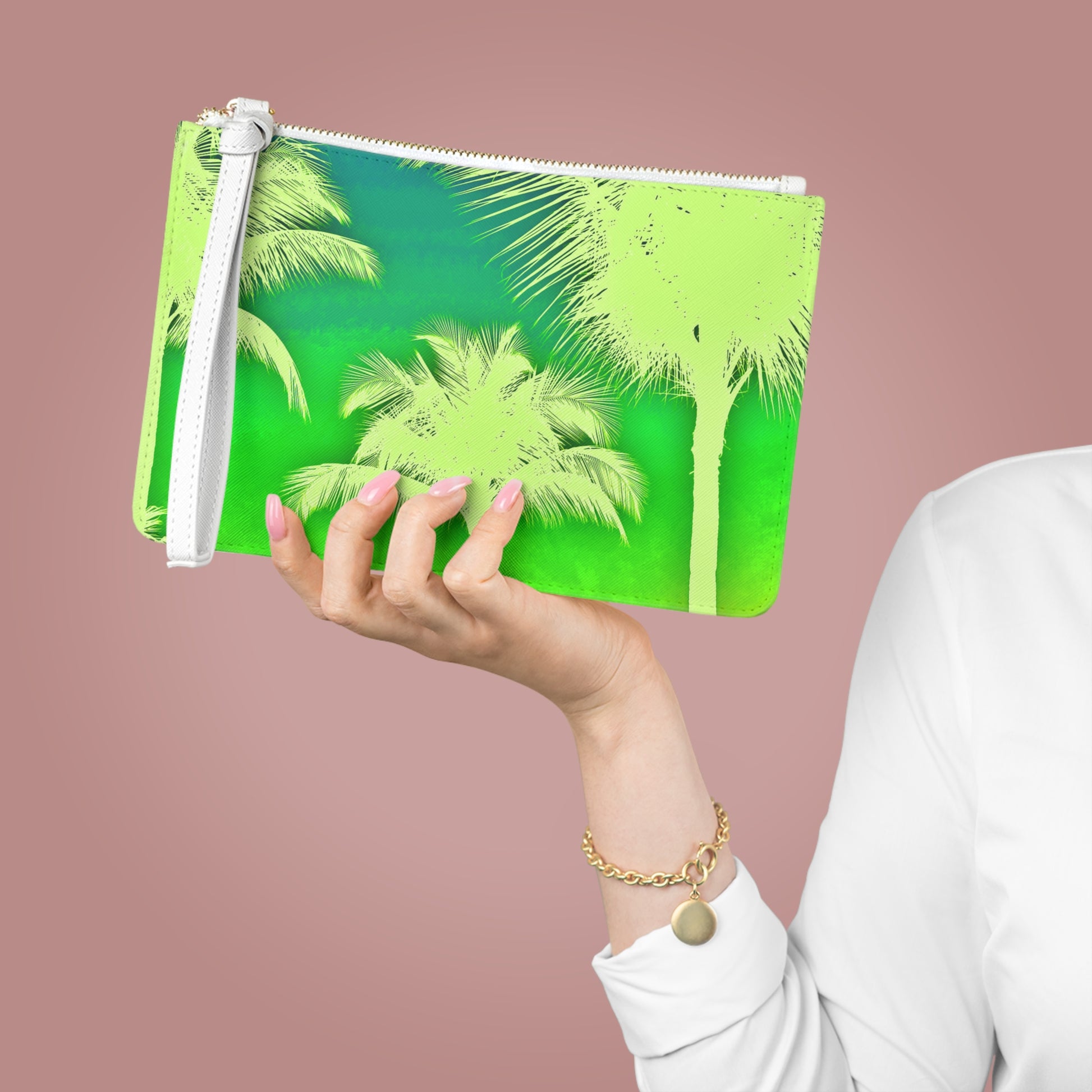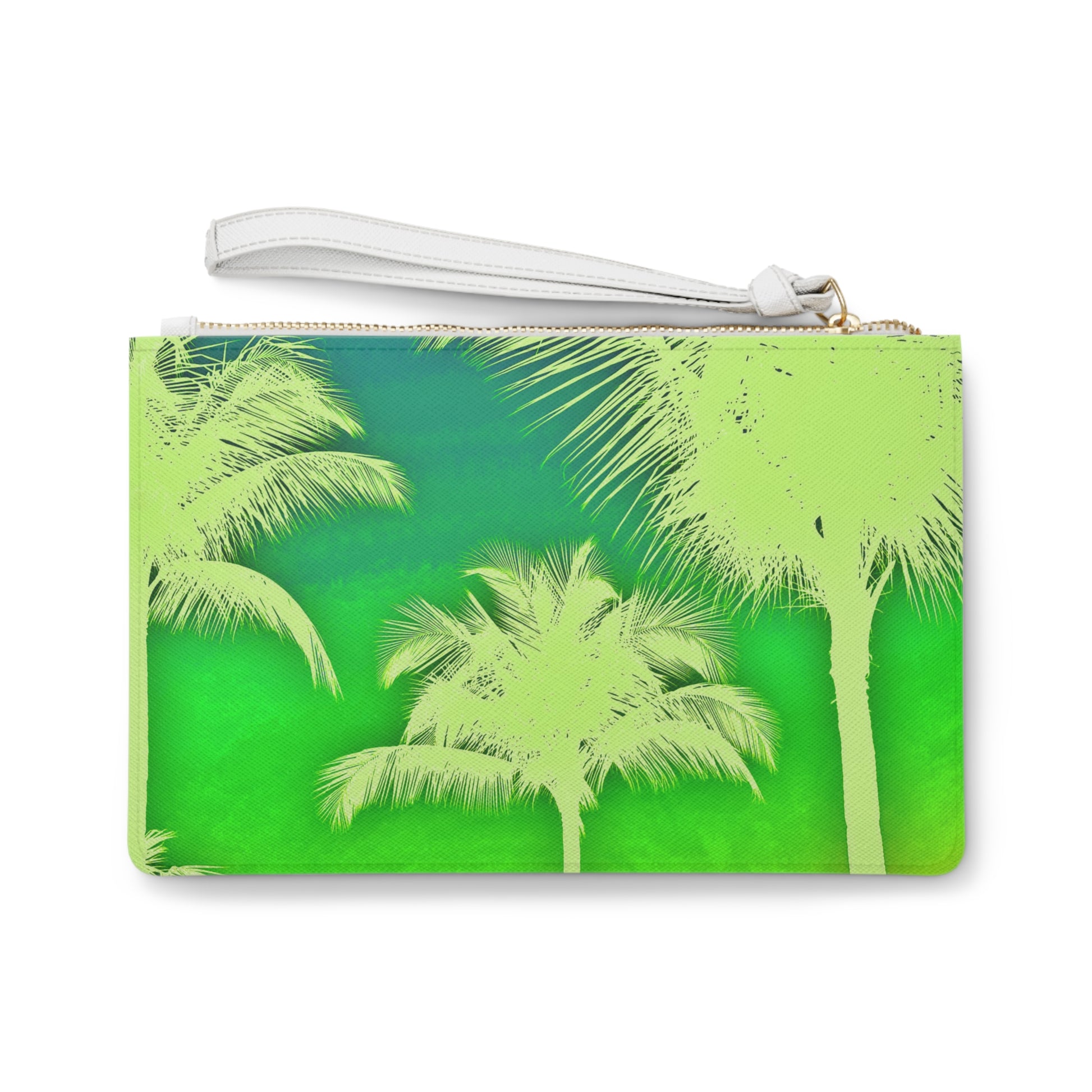 Tropical Faux Leather Clutch Bag - Perfect for Beach Adventures & Summer Vacations / Palm Glow, Green