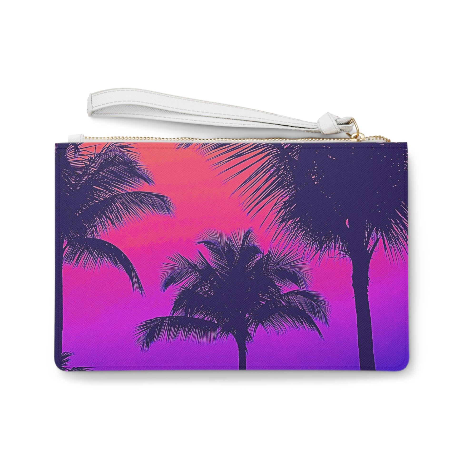 Tropical Faux Leather Clutch Bag - Perfect for Beach Adventures & Summer Vacations / Palm Glow Pop