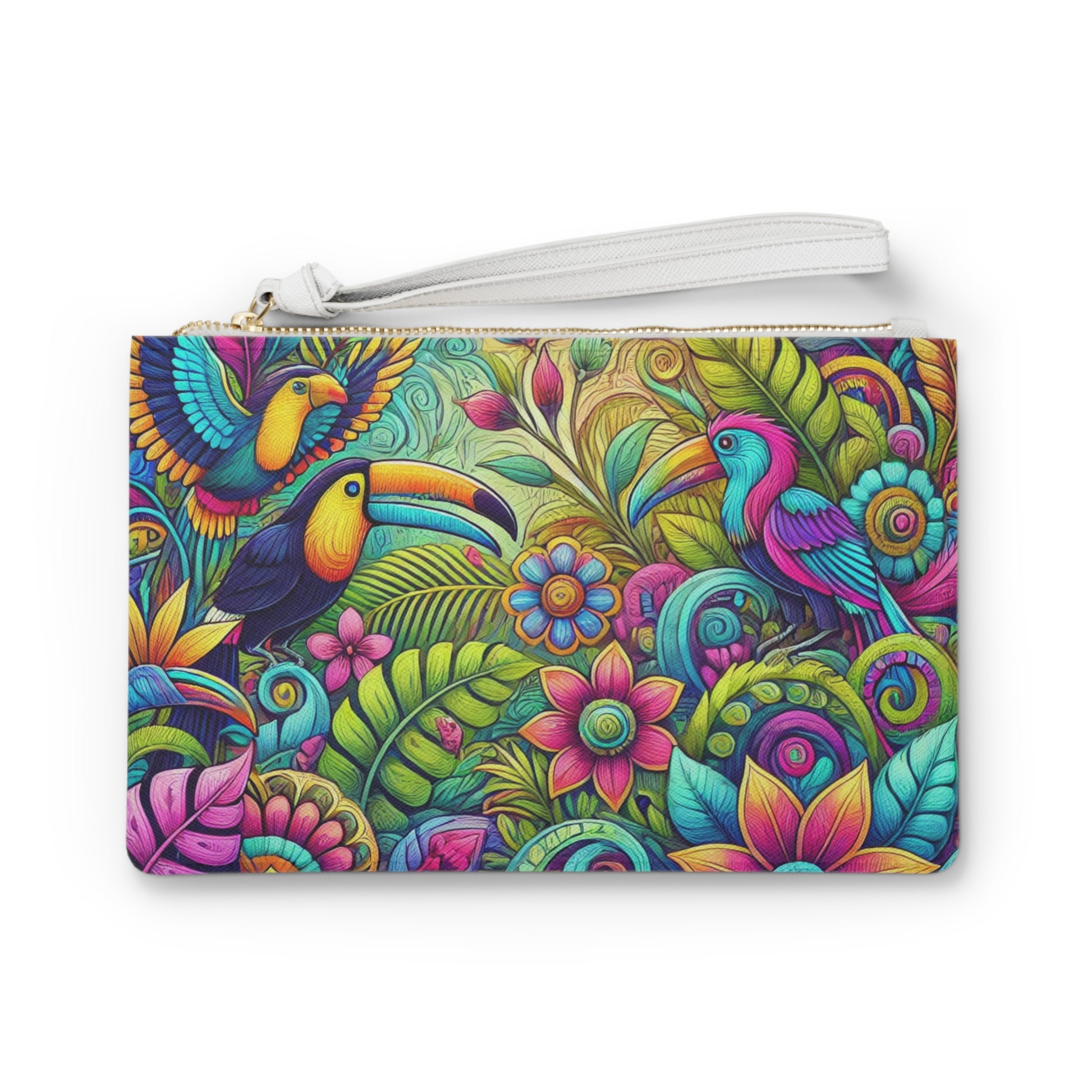 Tropical Faux Leather Clutch Bag - Perfect for Beach Adventures & Summer Vacations / Rainforest Music