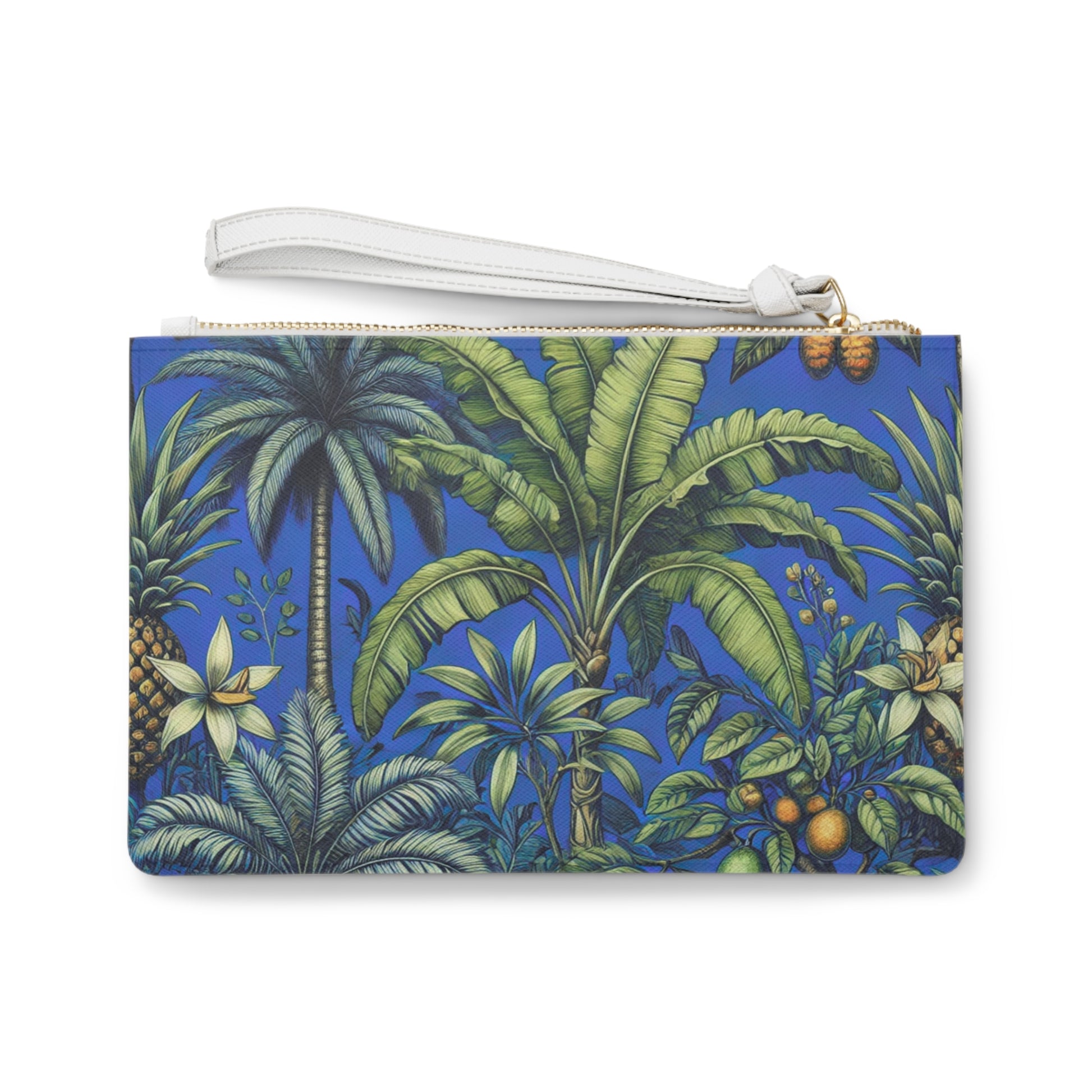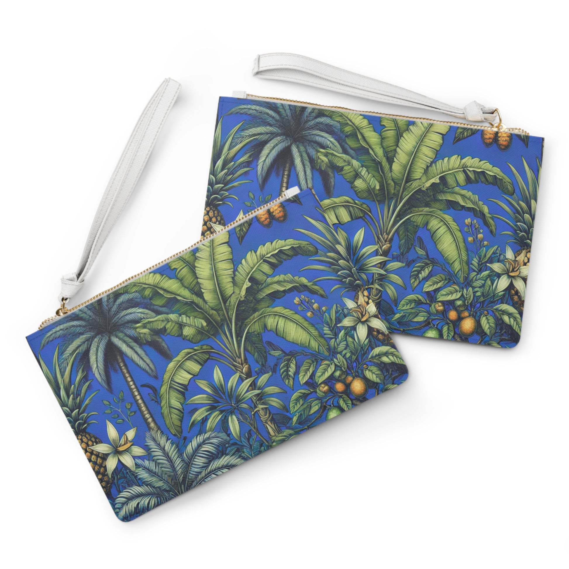 Tropical Faux Leather Clutch Bag - Perfect for Beach Adventures & Summer Vacations / Tropical Fruit, Dark Blue