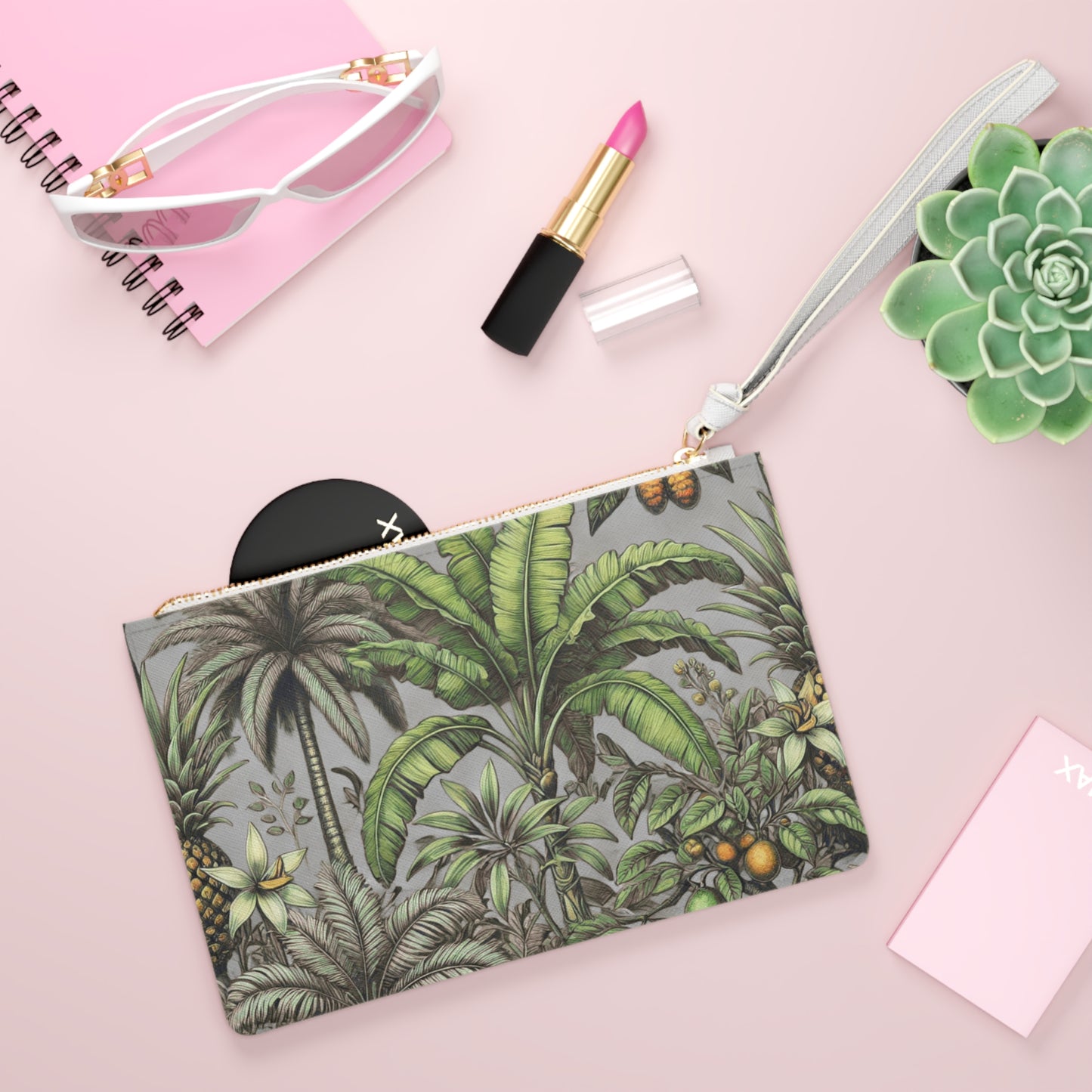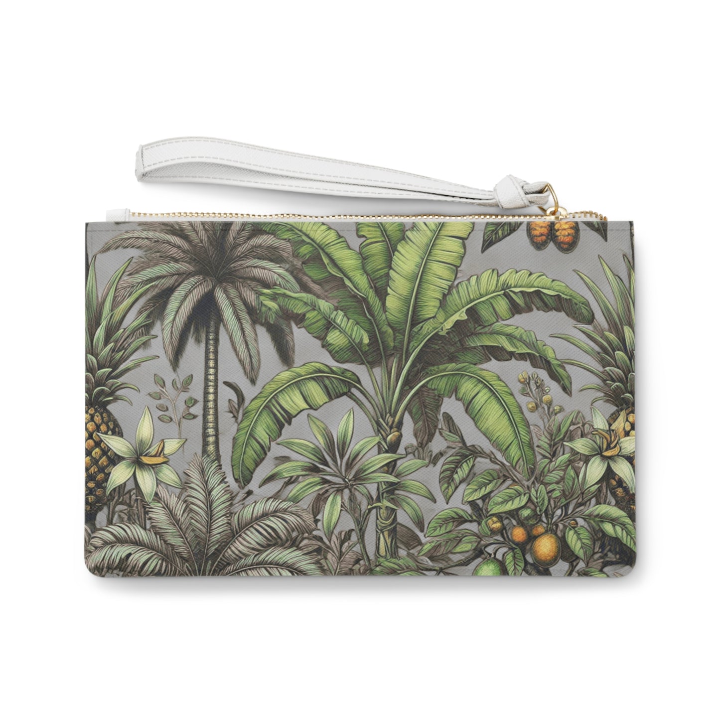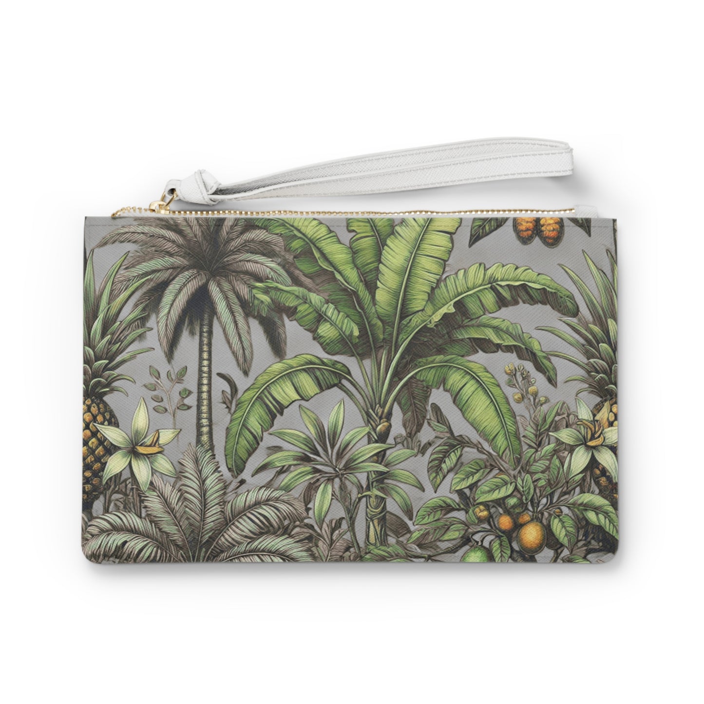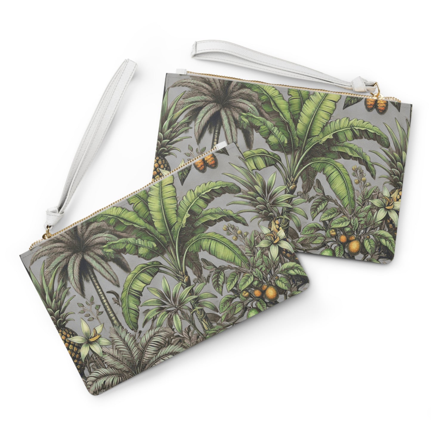 Tropical Faux Leather Clutch Bag - Perfect for Beach Adventures & Summer Vacations / Tropical Fruit, Grey