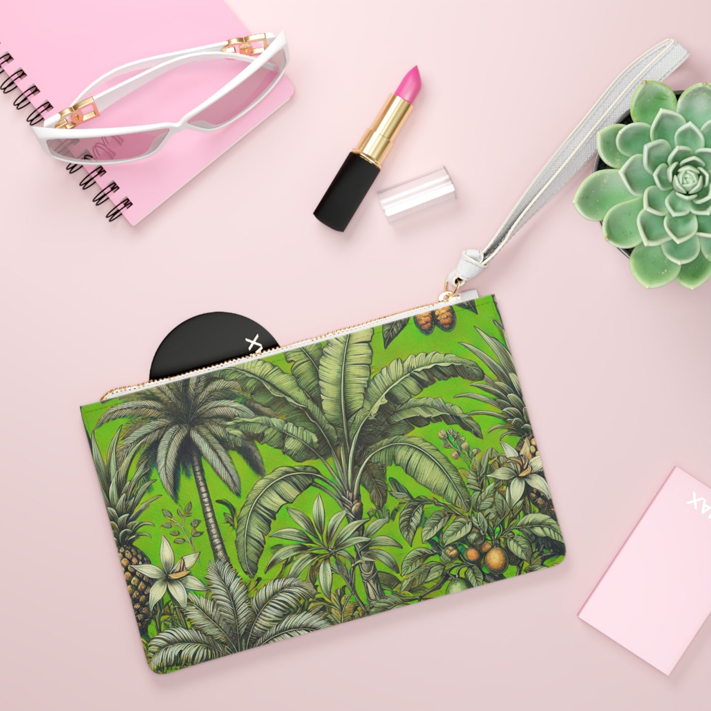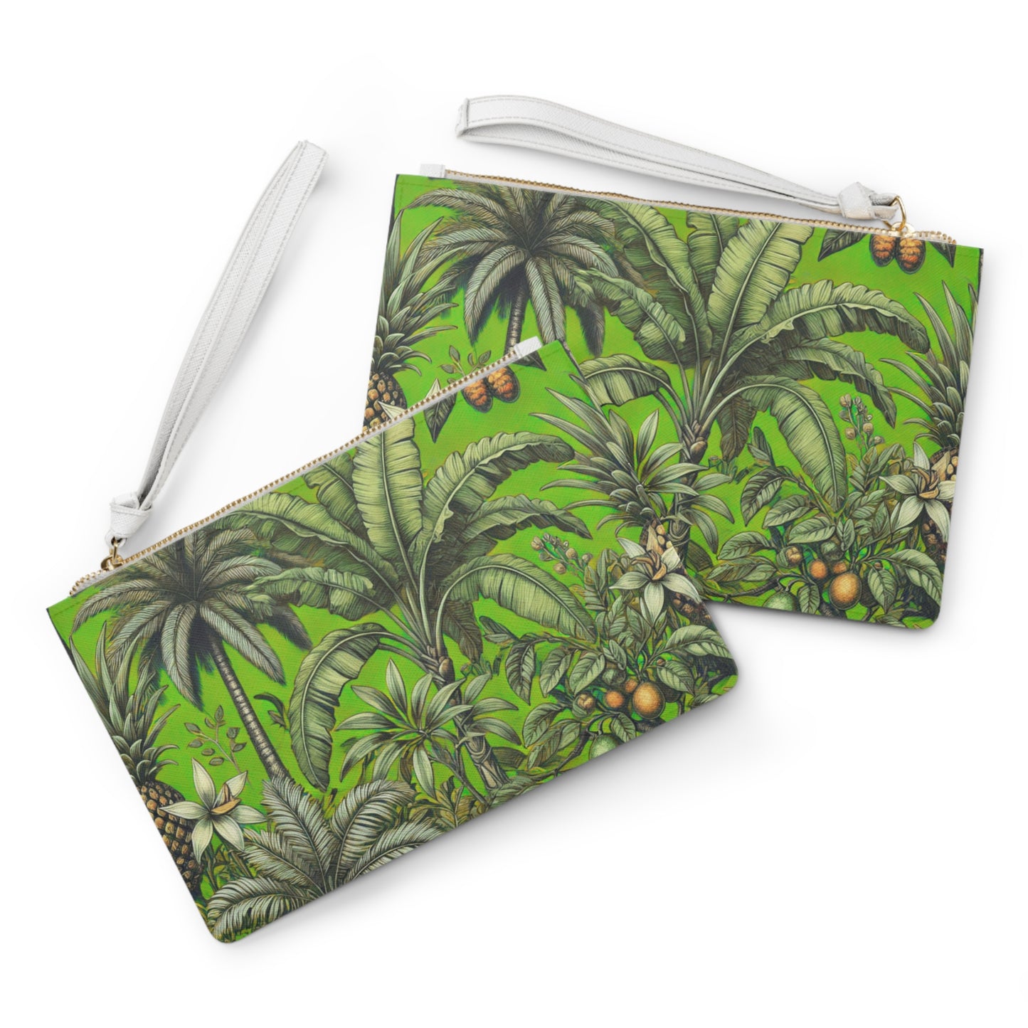 Tropical Faux Leather Clutch Bag - Perfect for Beach Adventures & Summer Vacations / Tropical Fruit, Spring Green
