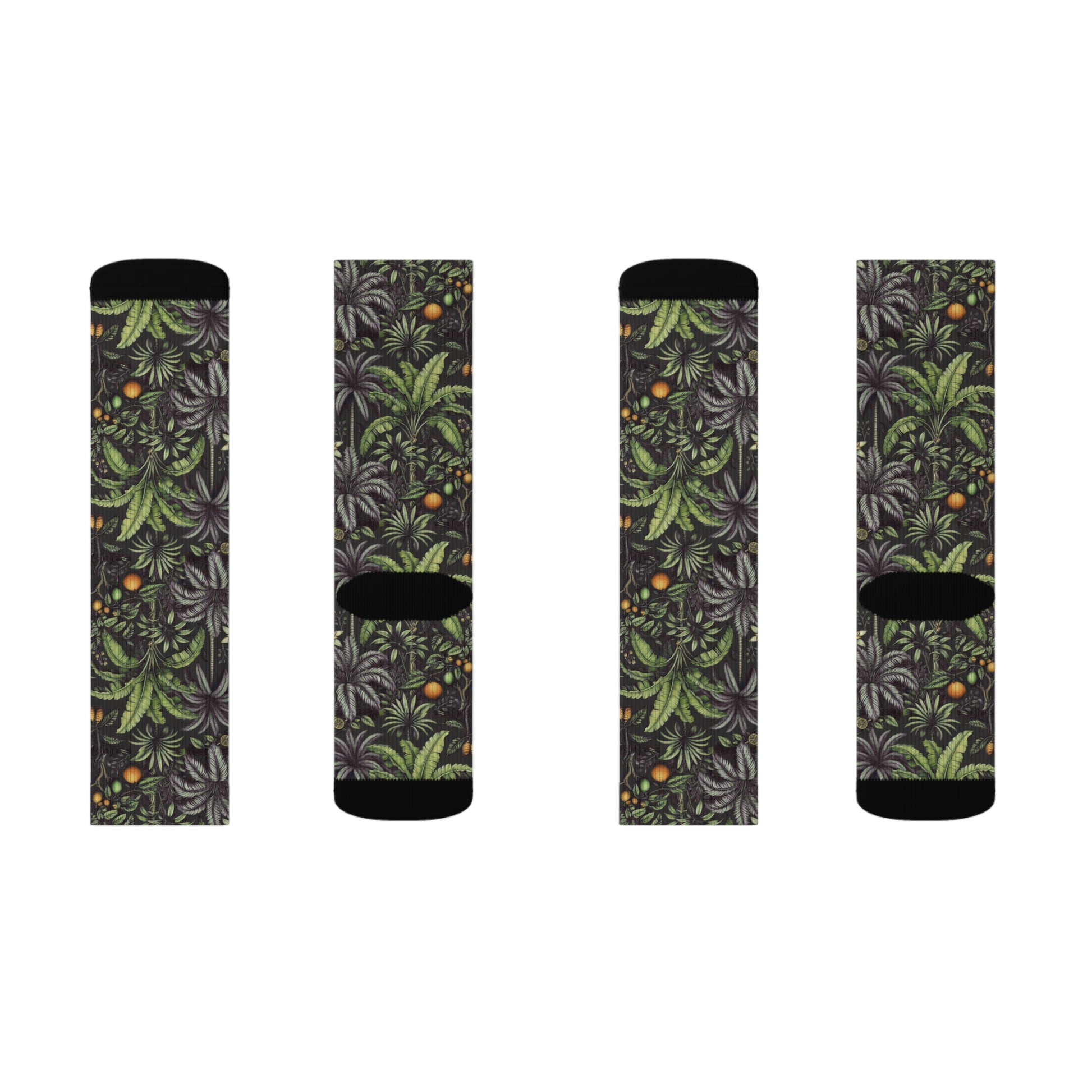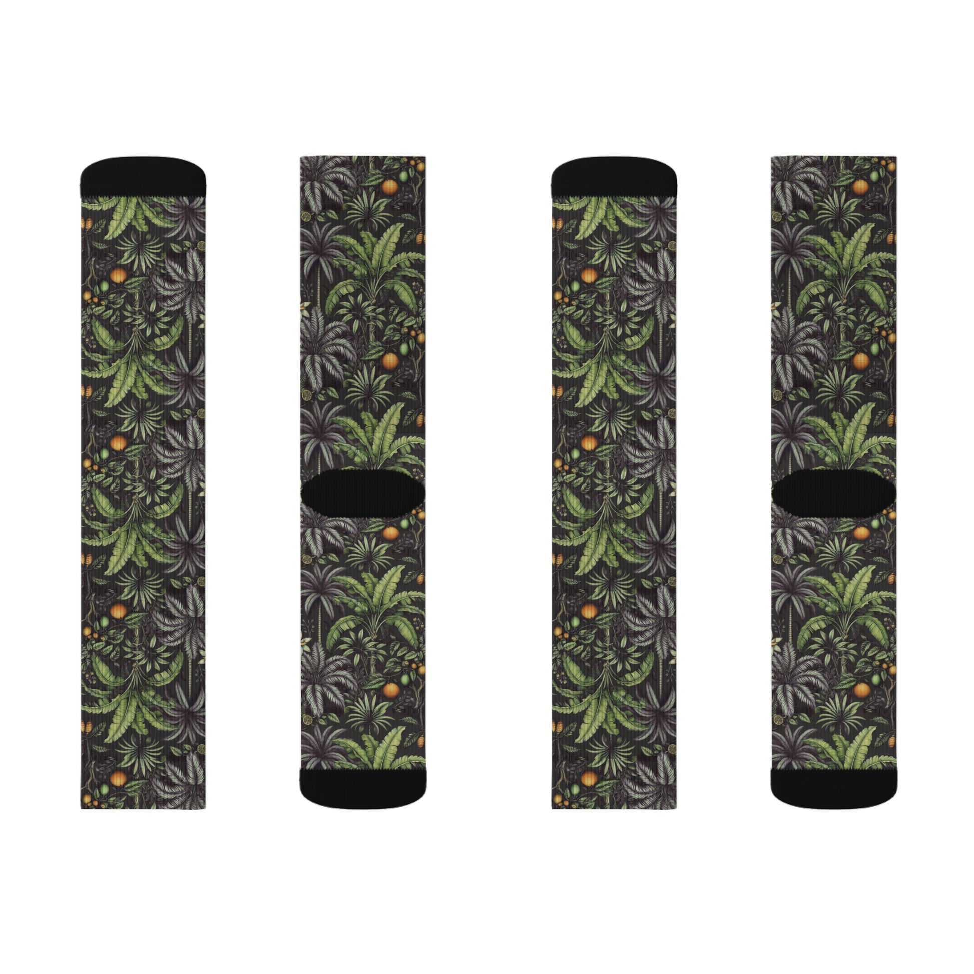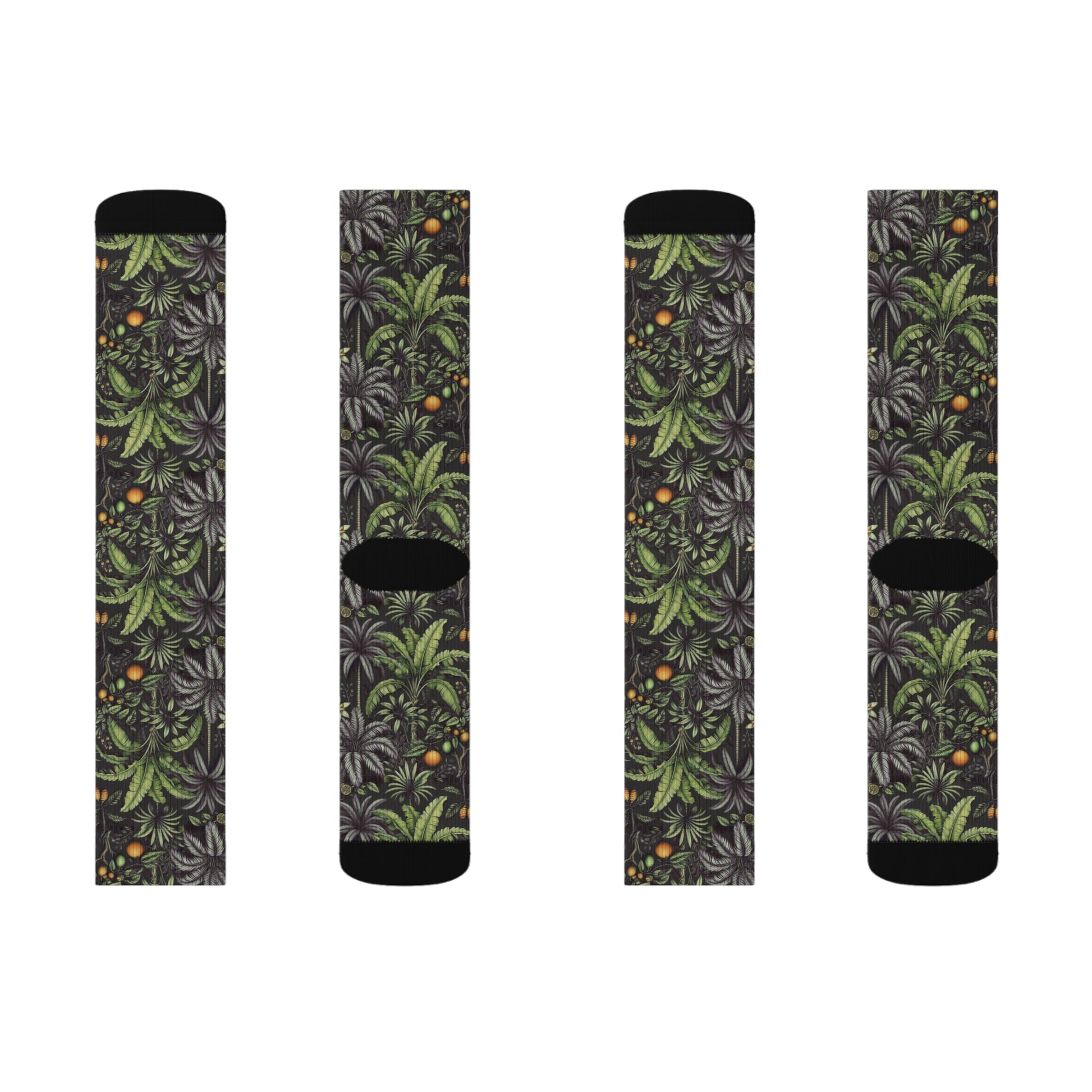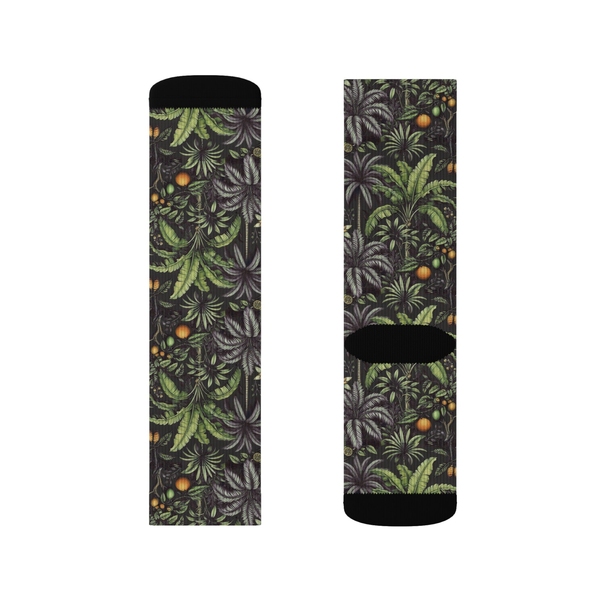 Tropical Fruit/Black Sublimation Fleece-Lined Socks - Colorful Palm Tree Design