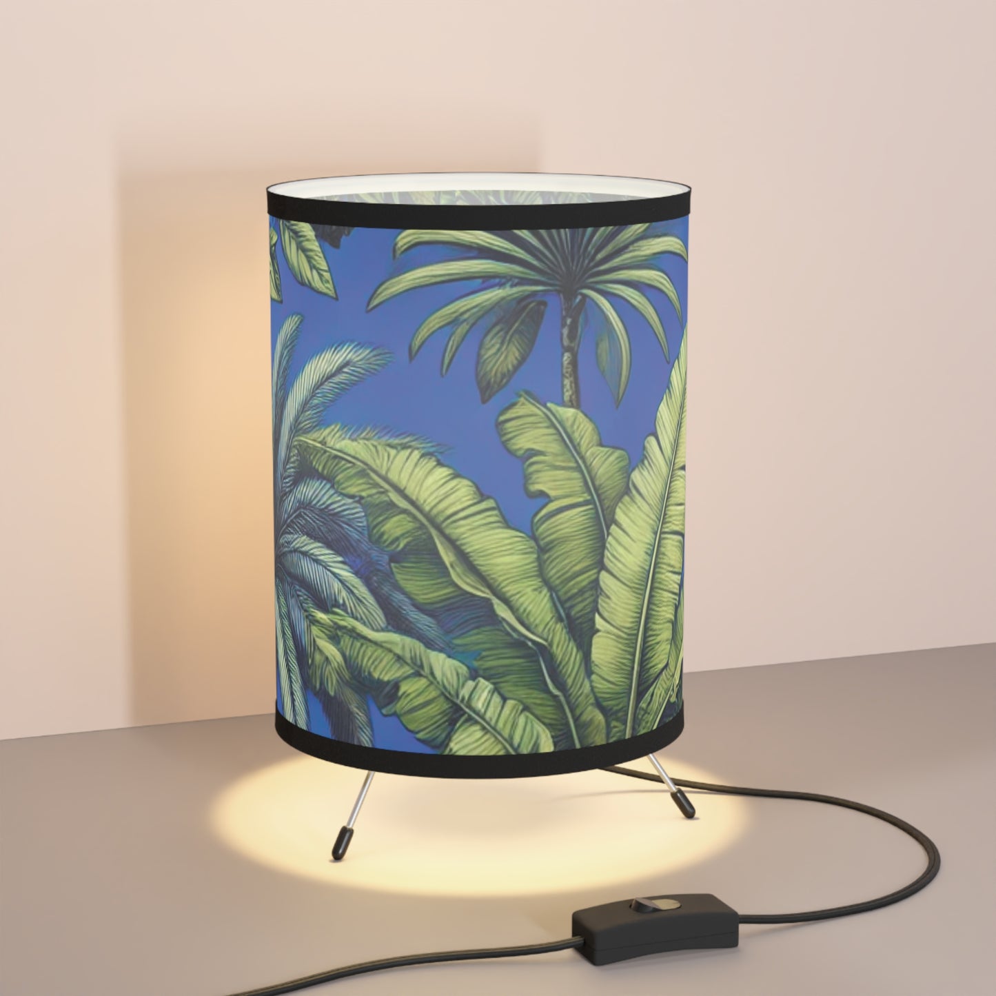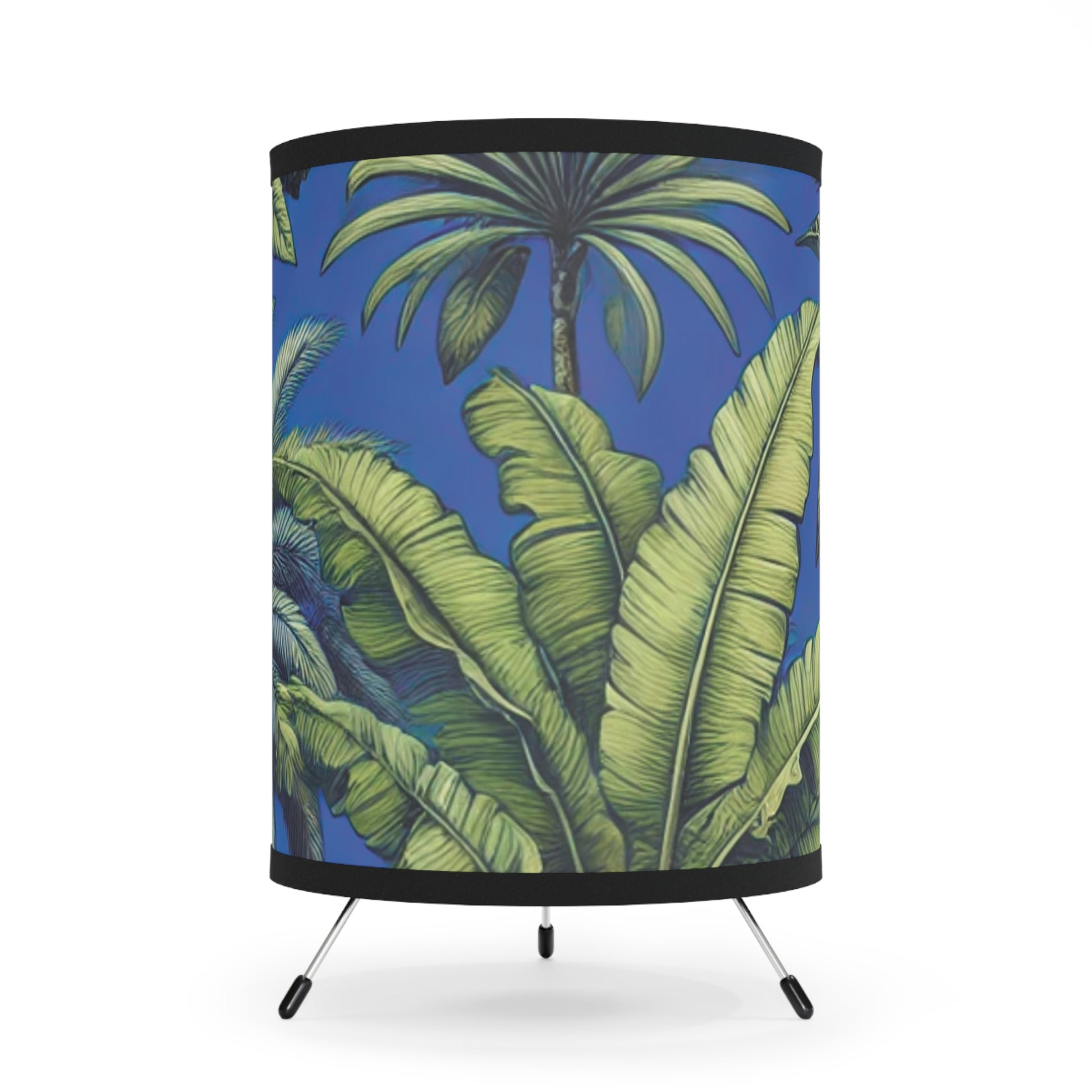 Illuminate your space with this stunning Tripod Lamp, designed to bring warmth and personality to any room. Look at the beautiful rainforest tropical palm trees and fruit. The lamp's vibrant, high-resolution printed shade features bold patterns that spark creativity and evoke a sense of wonder, making it the perfect statement piece for art lovers and those who appreciate unique decor. This lamp is an ideal addition to your living space, bedroom, or office, providing a cozy glow that enhances the atmosphere whether you’re enjoying a quiet evening or entertaining guests. The versatile design makes it suitable for various occasions, including housewarming gifts, birthdays, or holiday celebrations. Perfect for anyone looking to add flair to their interior design, this Tripod Lamp invites admiration and conversation wherever it stands.