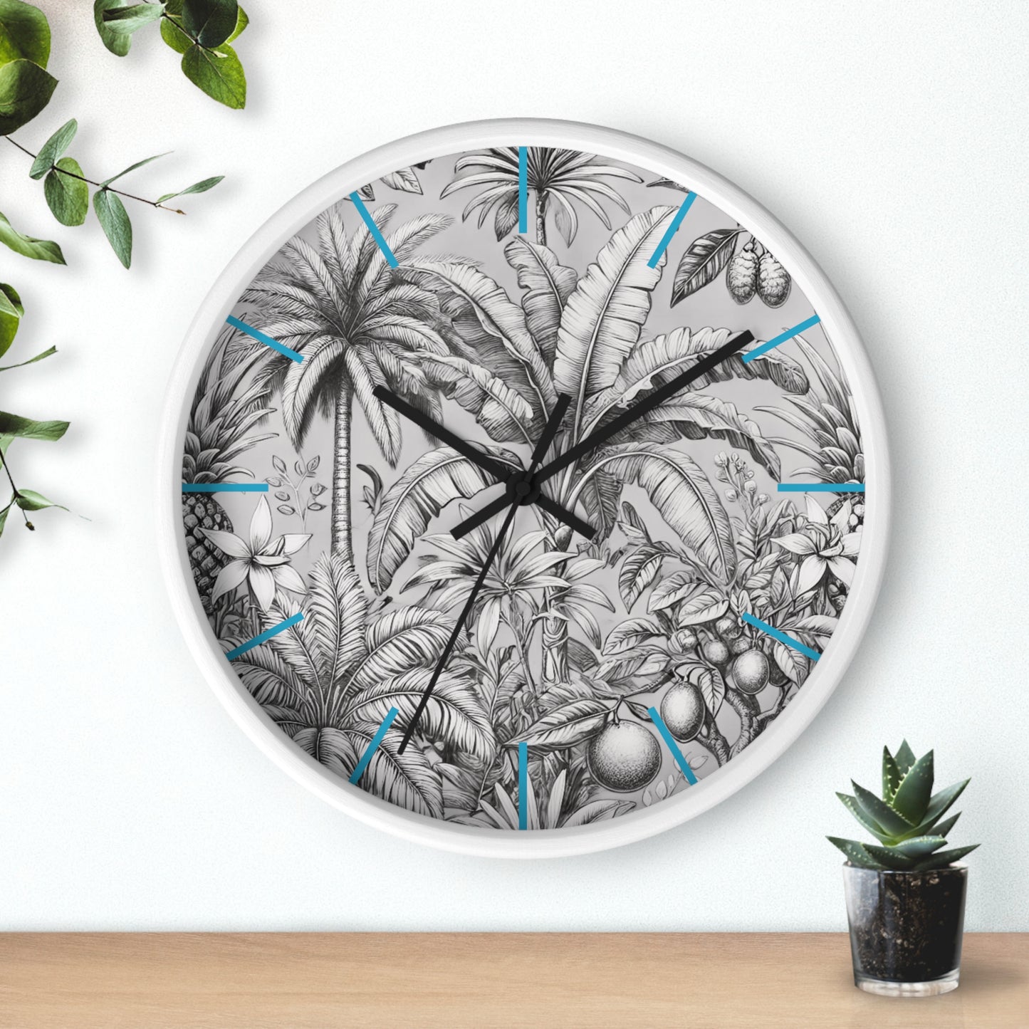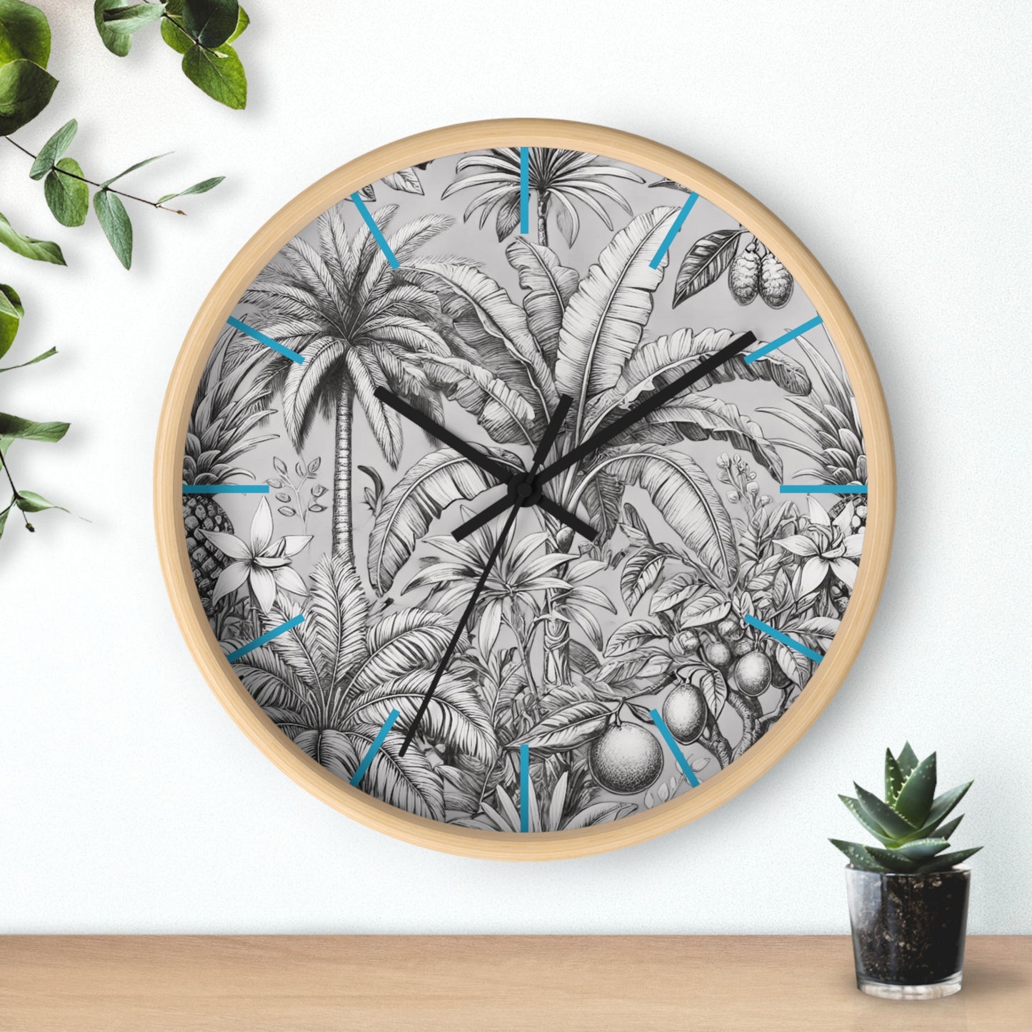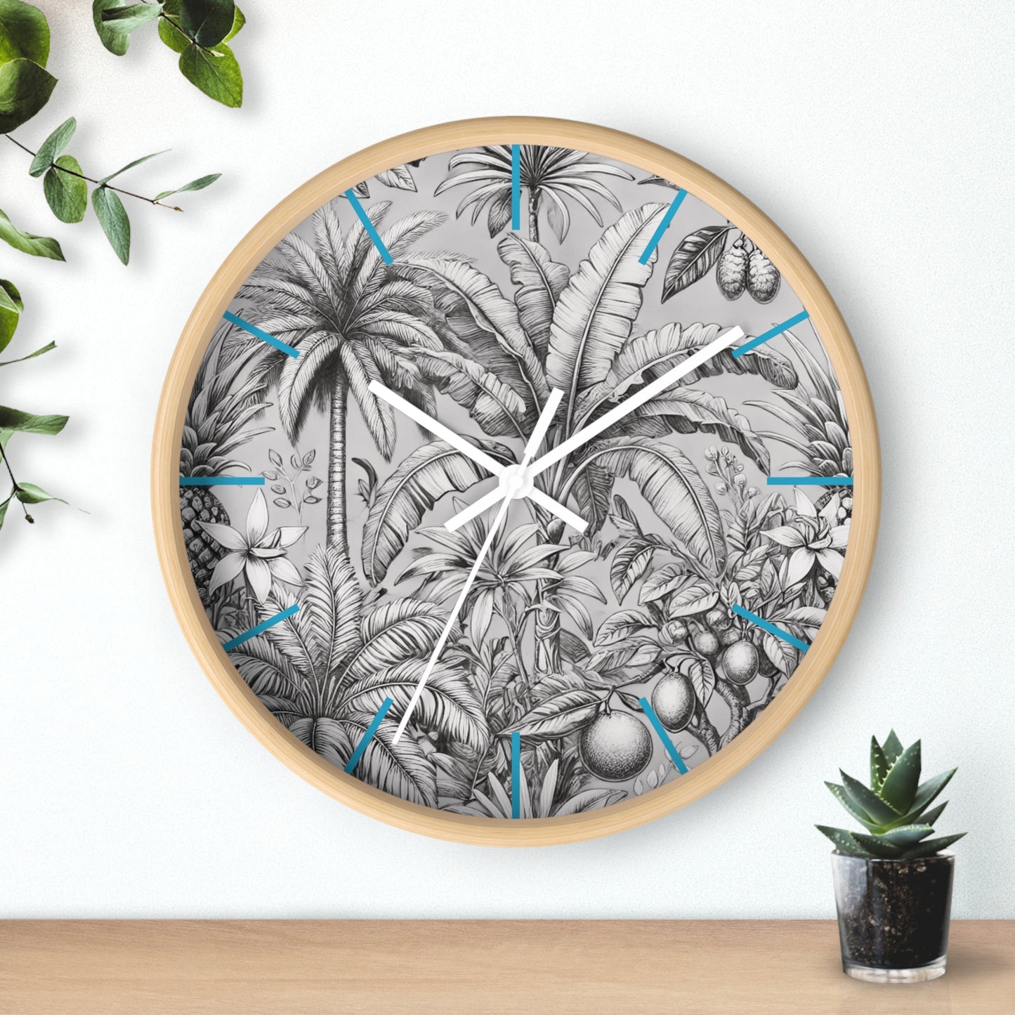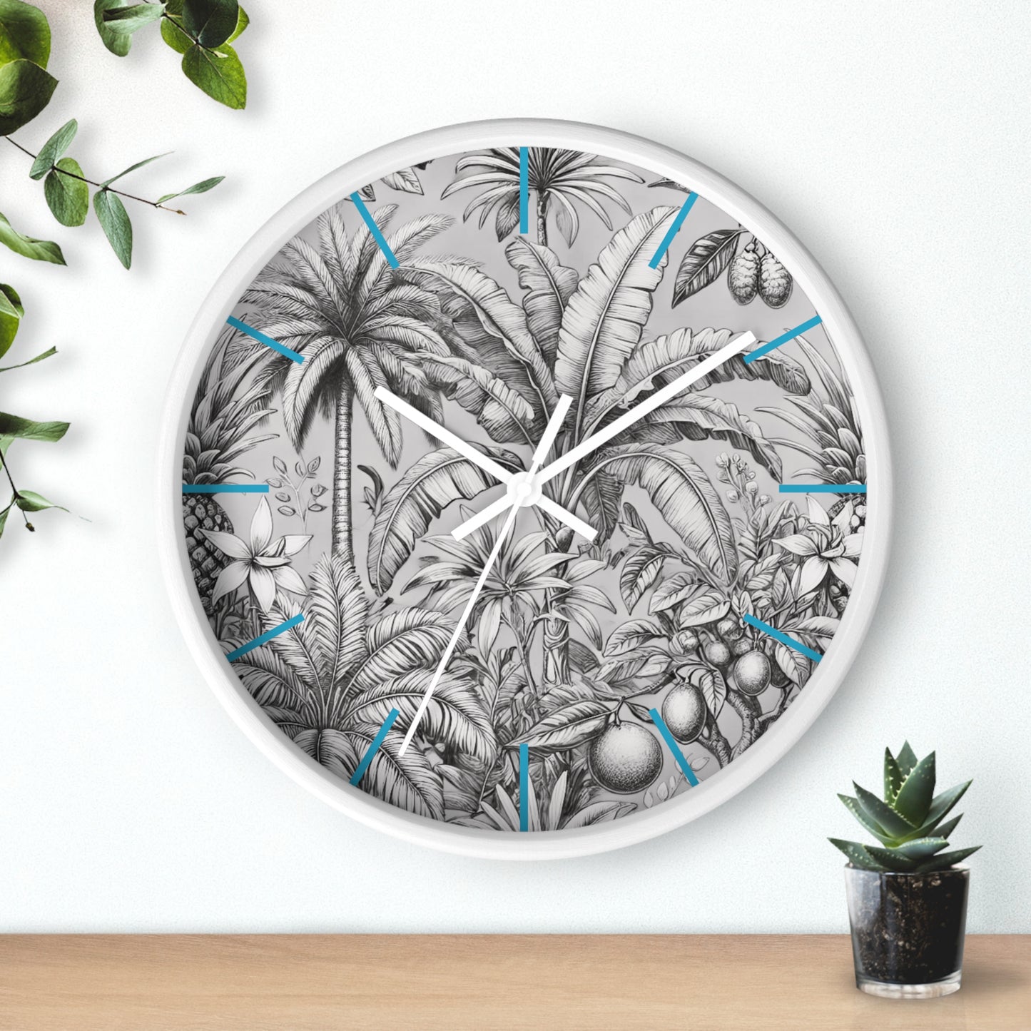 This vibrant Wall Clock is the perfect fusion of functionality and fun. With its unique tropical design of lush palm trees and fruit, it brings a joyful atmosphere to any room. Ideal for botanical lovers, home decorators, and anyone seeking a unique wall statement, this clock is a delightful addition to your living room, kitchen, or office space. It’s great as a gift for housewarmings, birthdays, or just to treat yourself. Celebrate life's moments with this cheerful timepiece that brings smiles every hour!