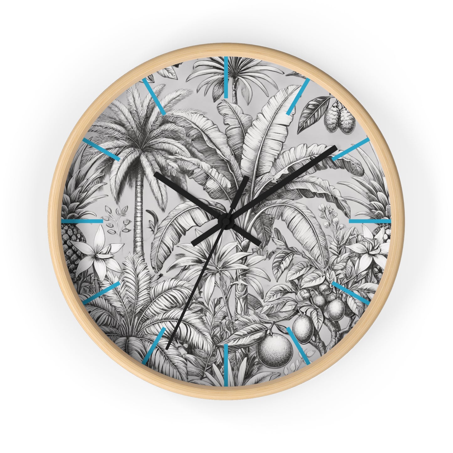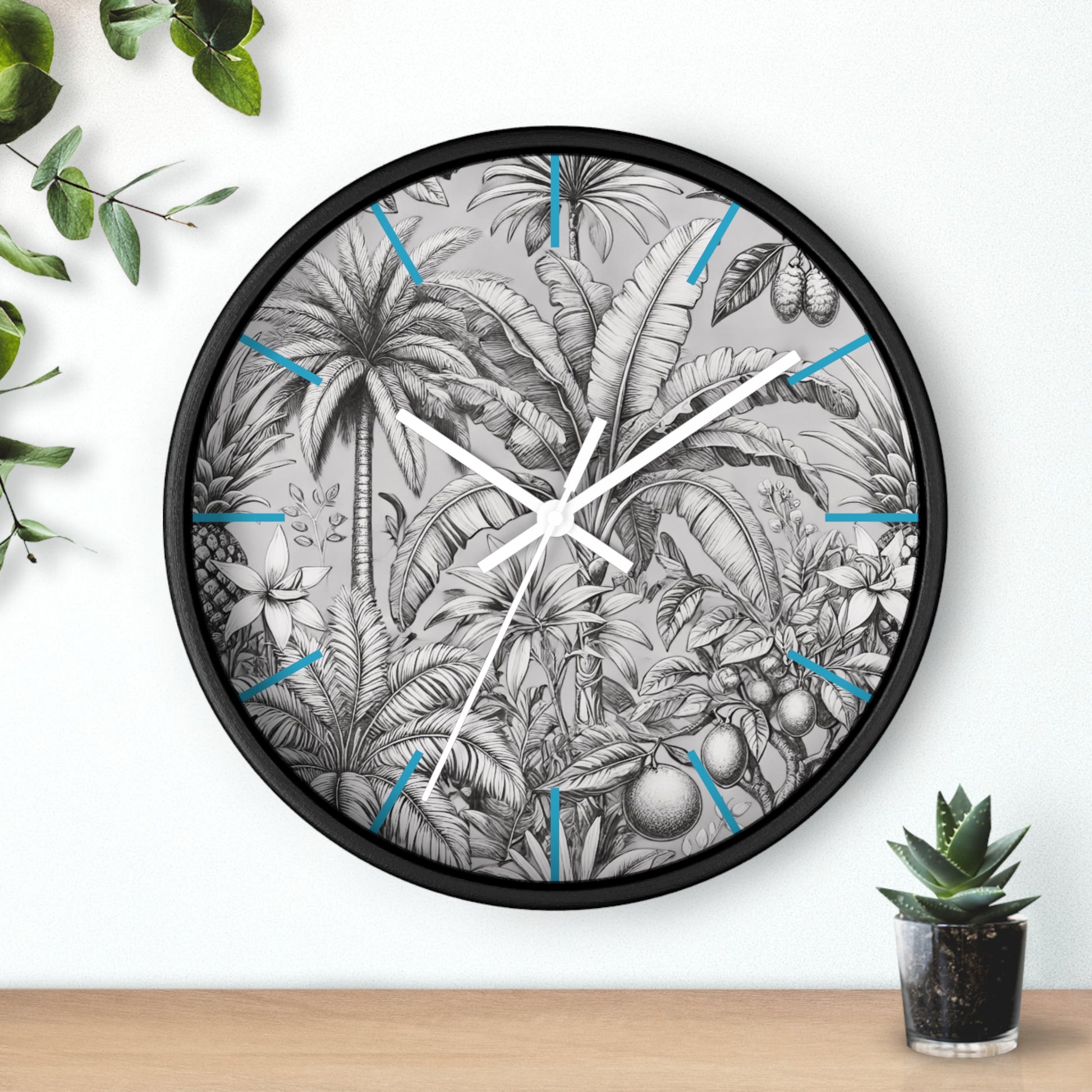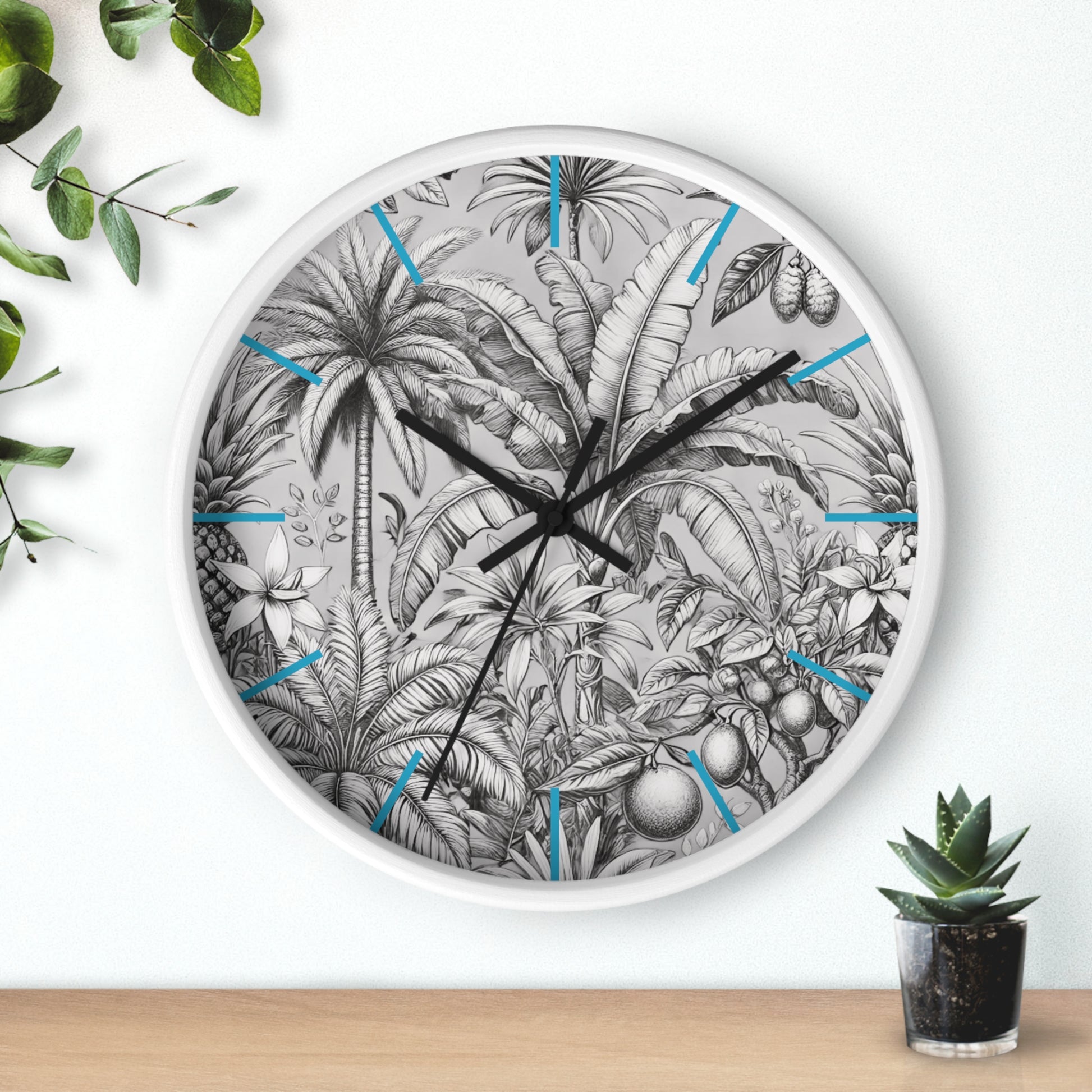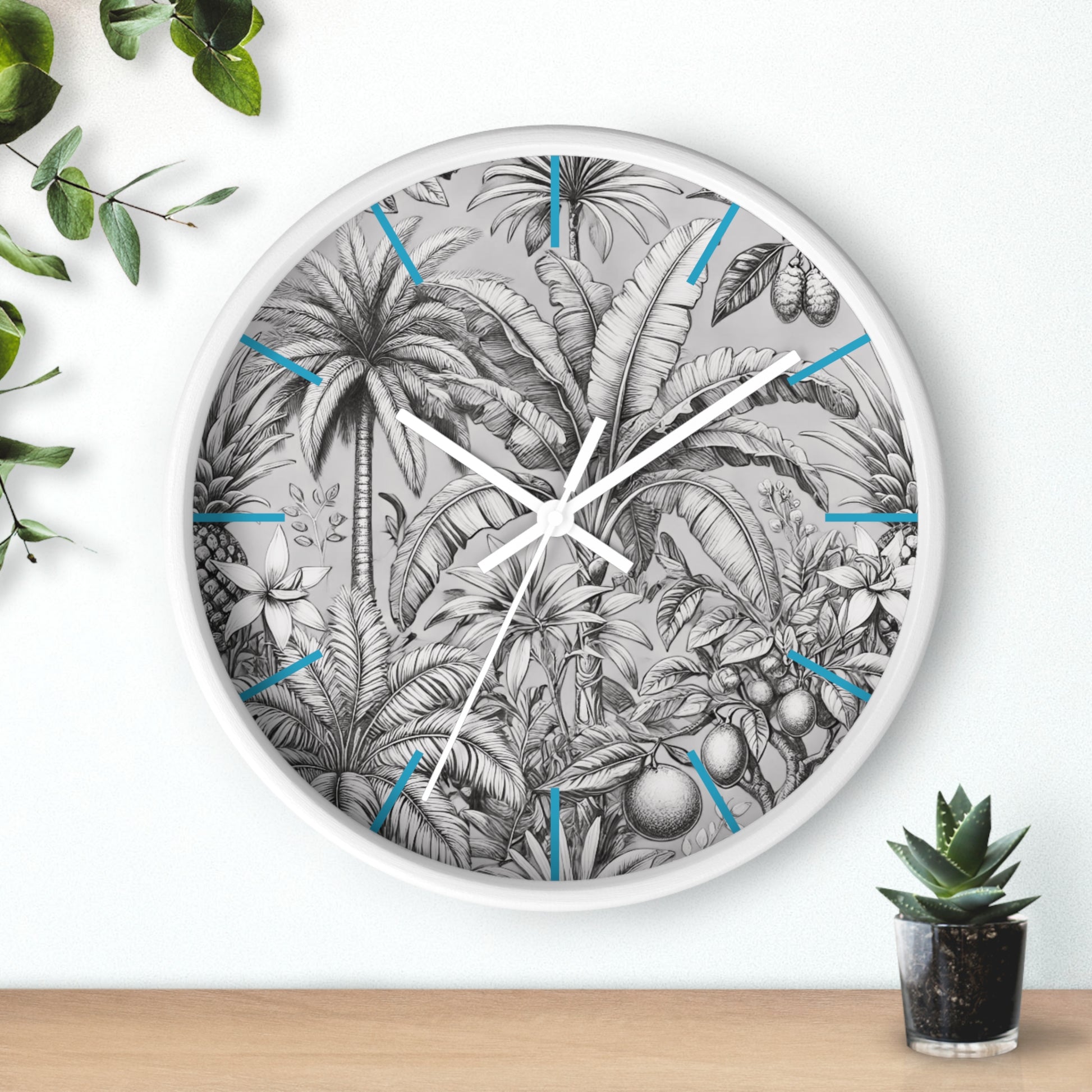 Tropical Fruit/Newspaper Wall Clock – Fun Home Decor for Nature Lovers, 6 Variants ~ Turquoise Hours
