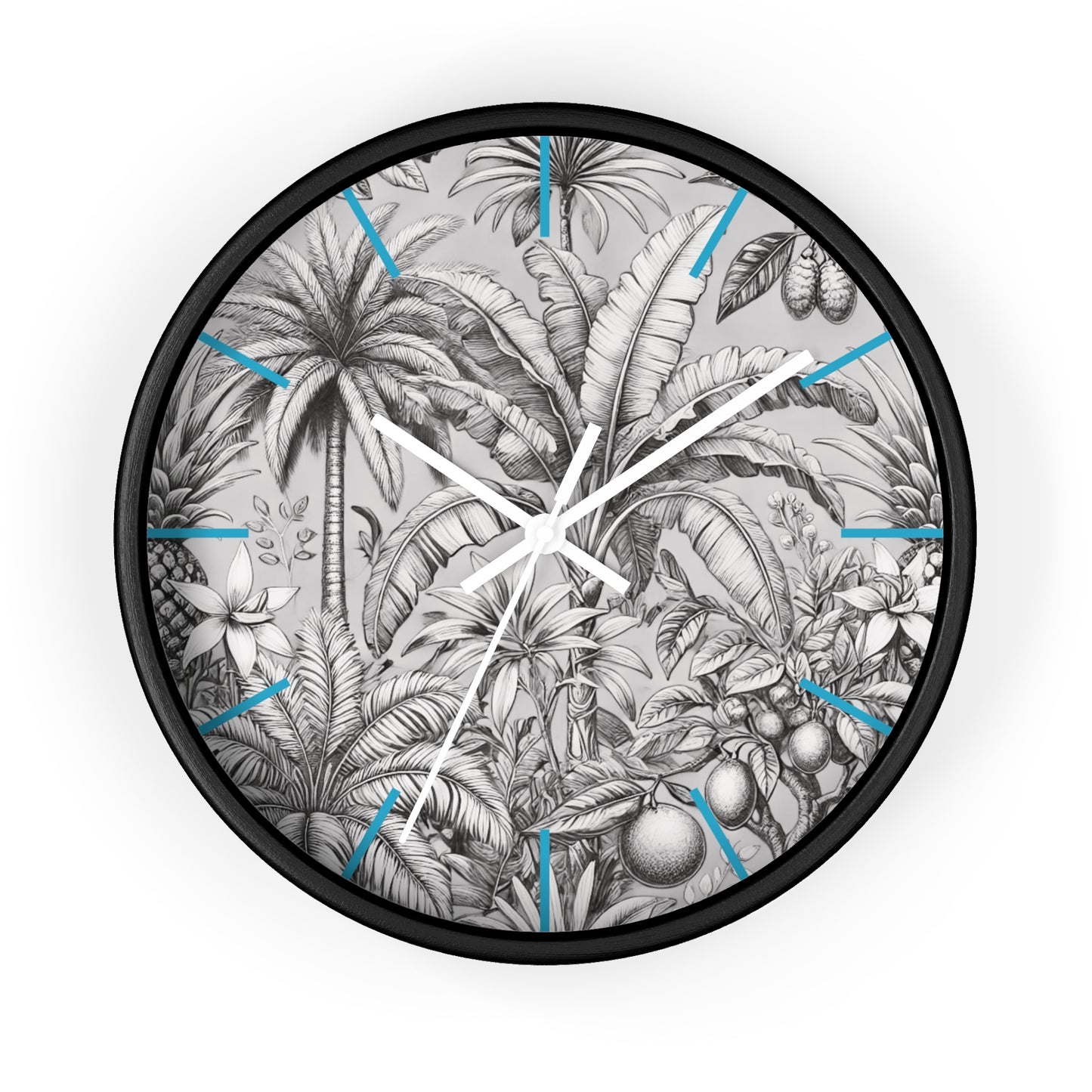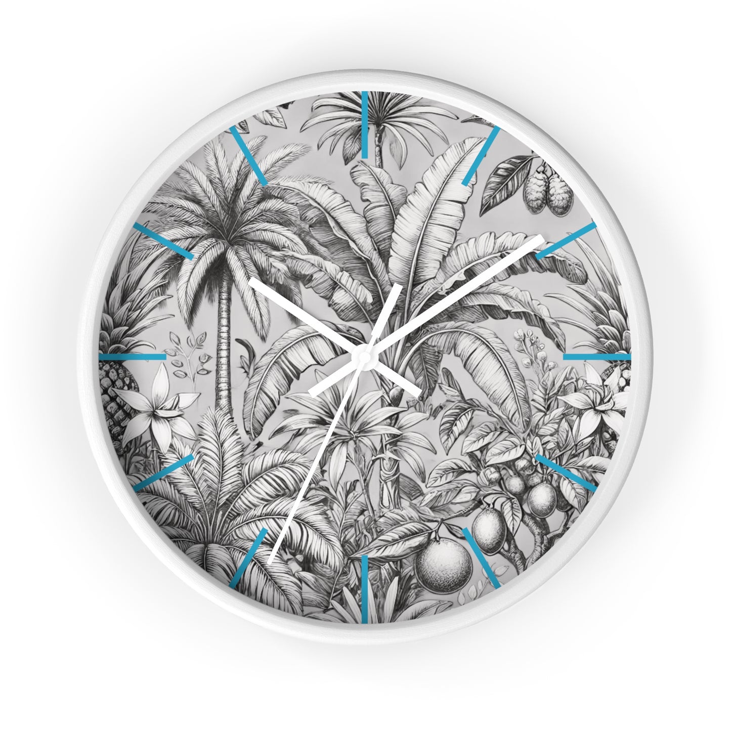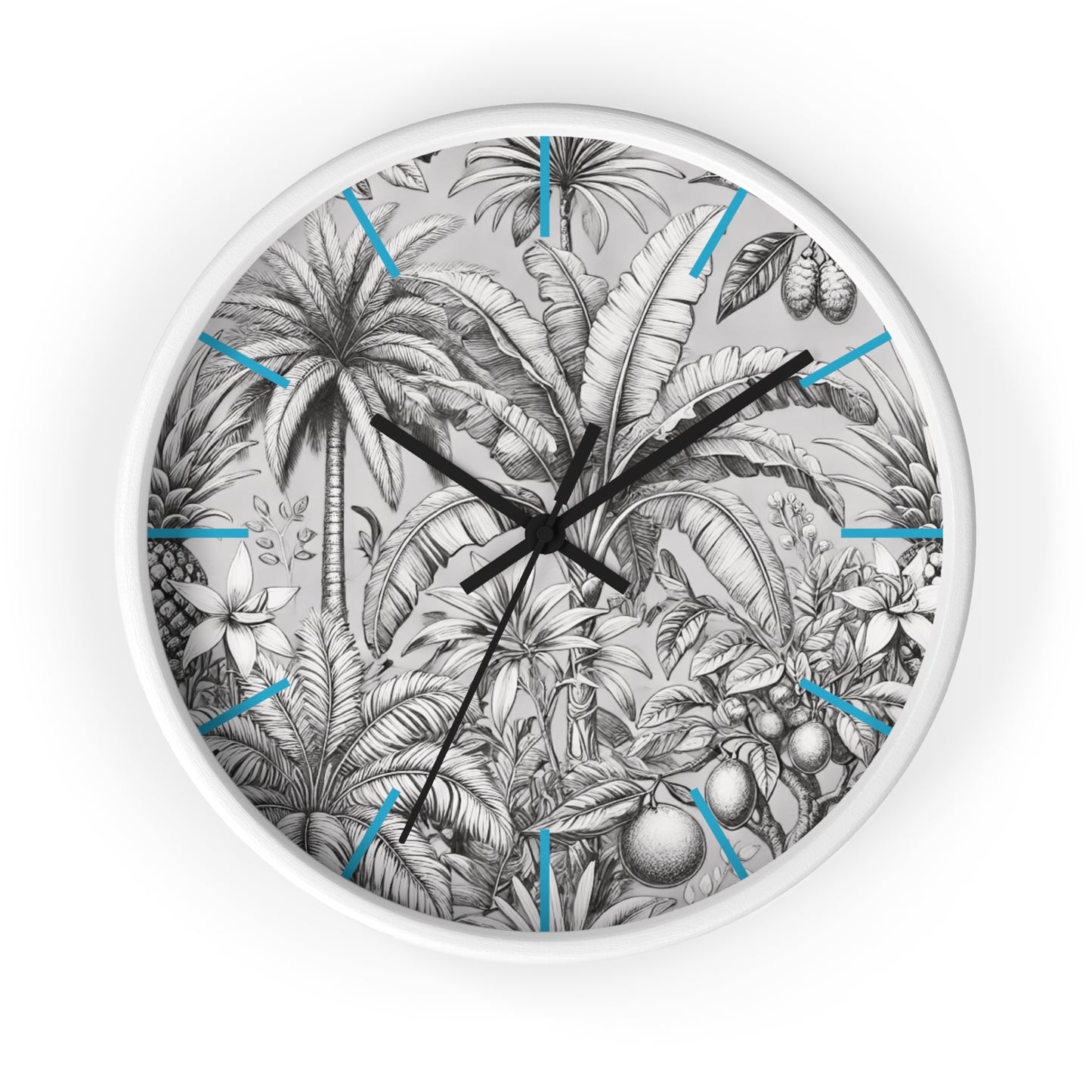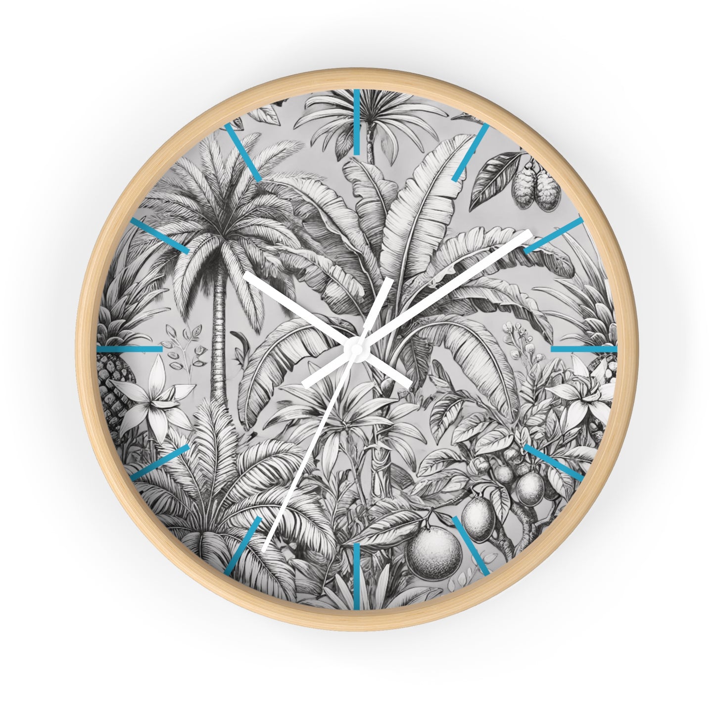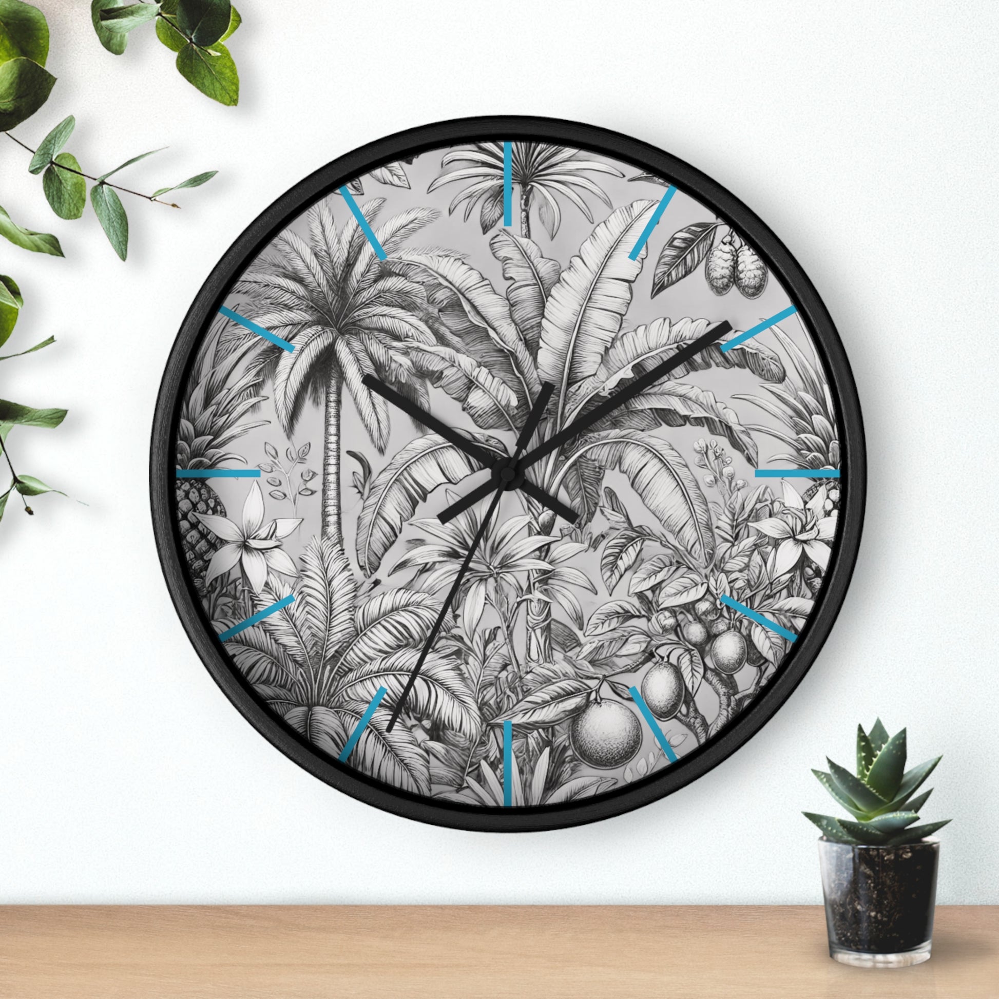 Tropical Fruit/Newspaper Wall Clock – Fun Home Decor for Nature Lovers, 6 Variants ~ Turquoise Hours