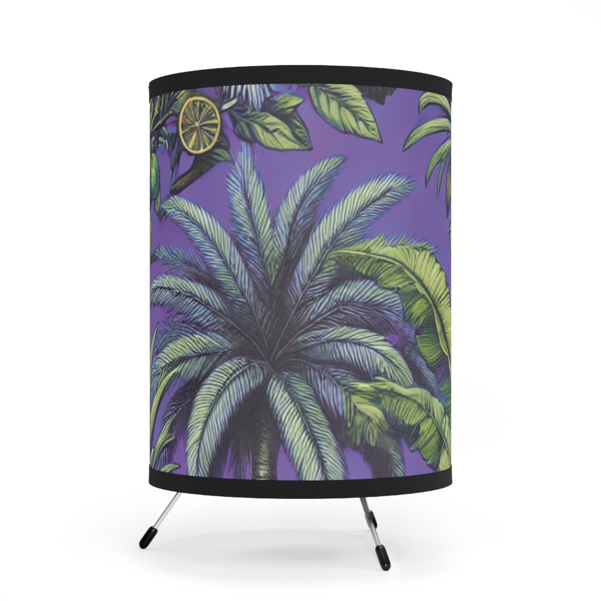 Tropical Fruit/Purple Tripod Lamp with Artistic High-Res Shade - Perfect for Home Décor