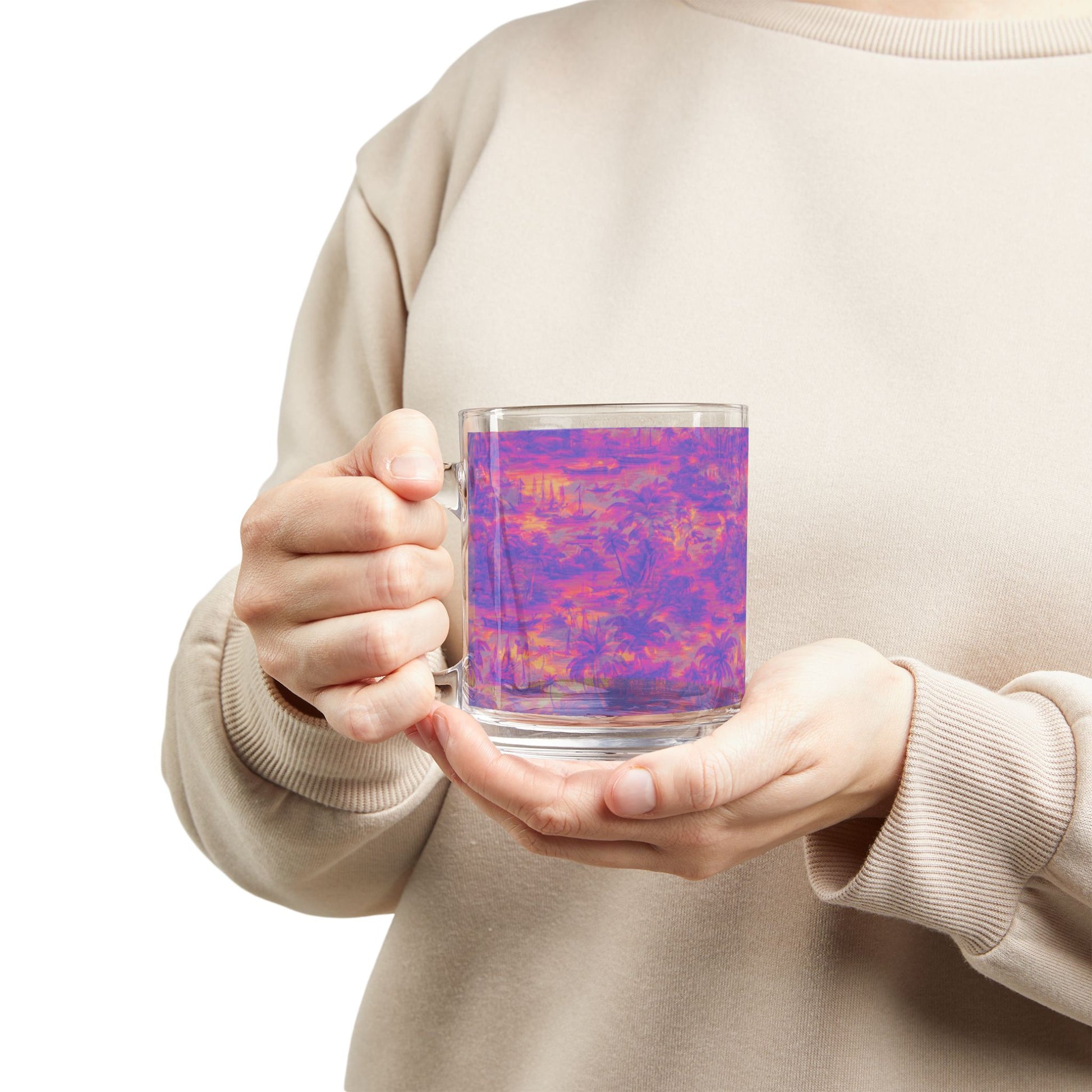 Introducing our elegant 10 oz. Clear Glass Mug, perfect for enjoying your favorite beverages. This stylish tropical coffee cup showcases a beautiful design that adds a touch of sophistication to your drinkware collection. The ergonomic C-shaped handle ensures a comfortable grip, making it ideal for leisurely mornings or cozy evenings at home. Whether you're sipping coffee, tea, or a refreshing cold drink, this versatile mug enhances the drinking experience. It's perfect for adults who appreciate modern, functional design. Add a pop of style to your kitchen or office space with this stunning mug!