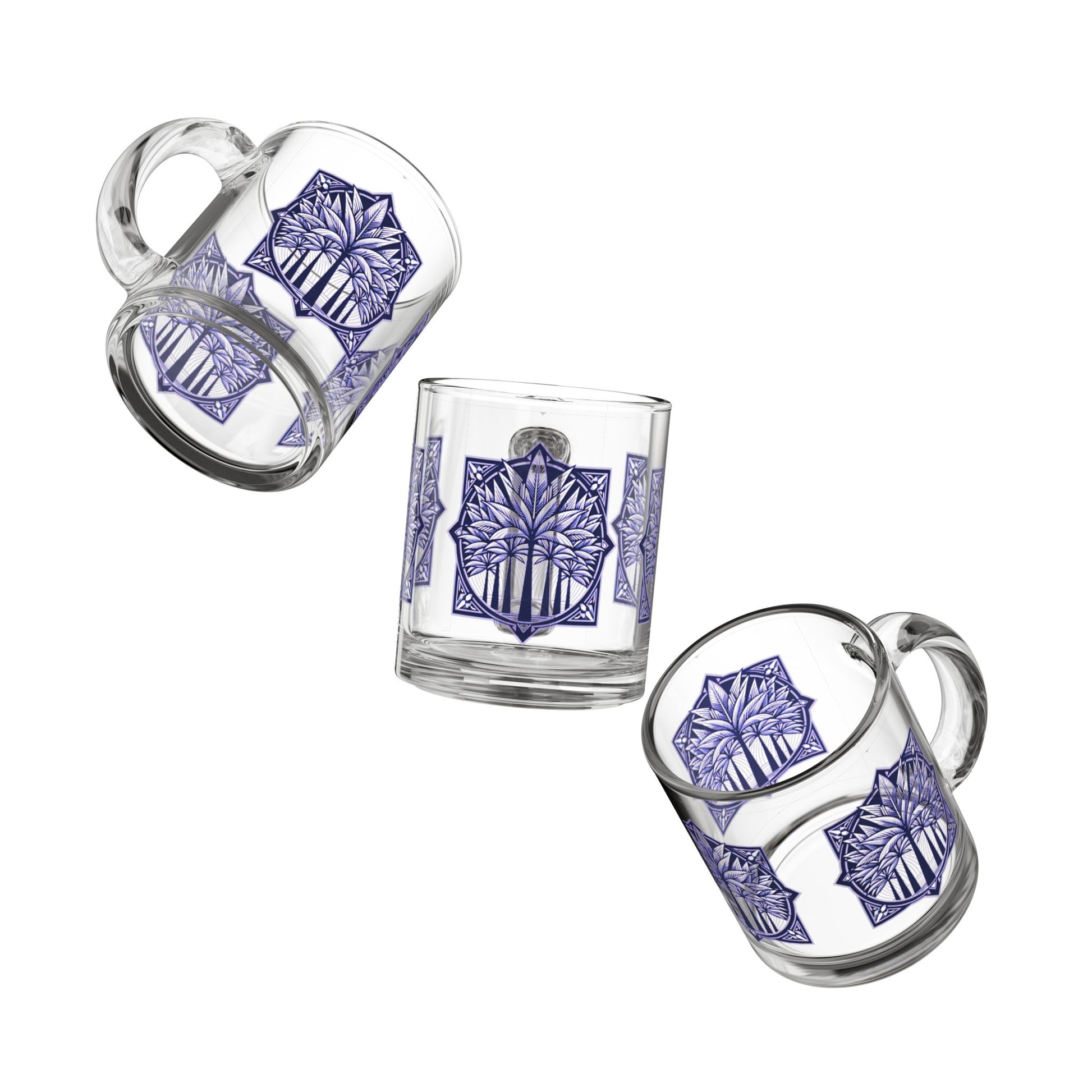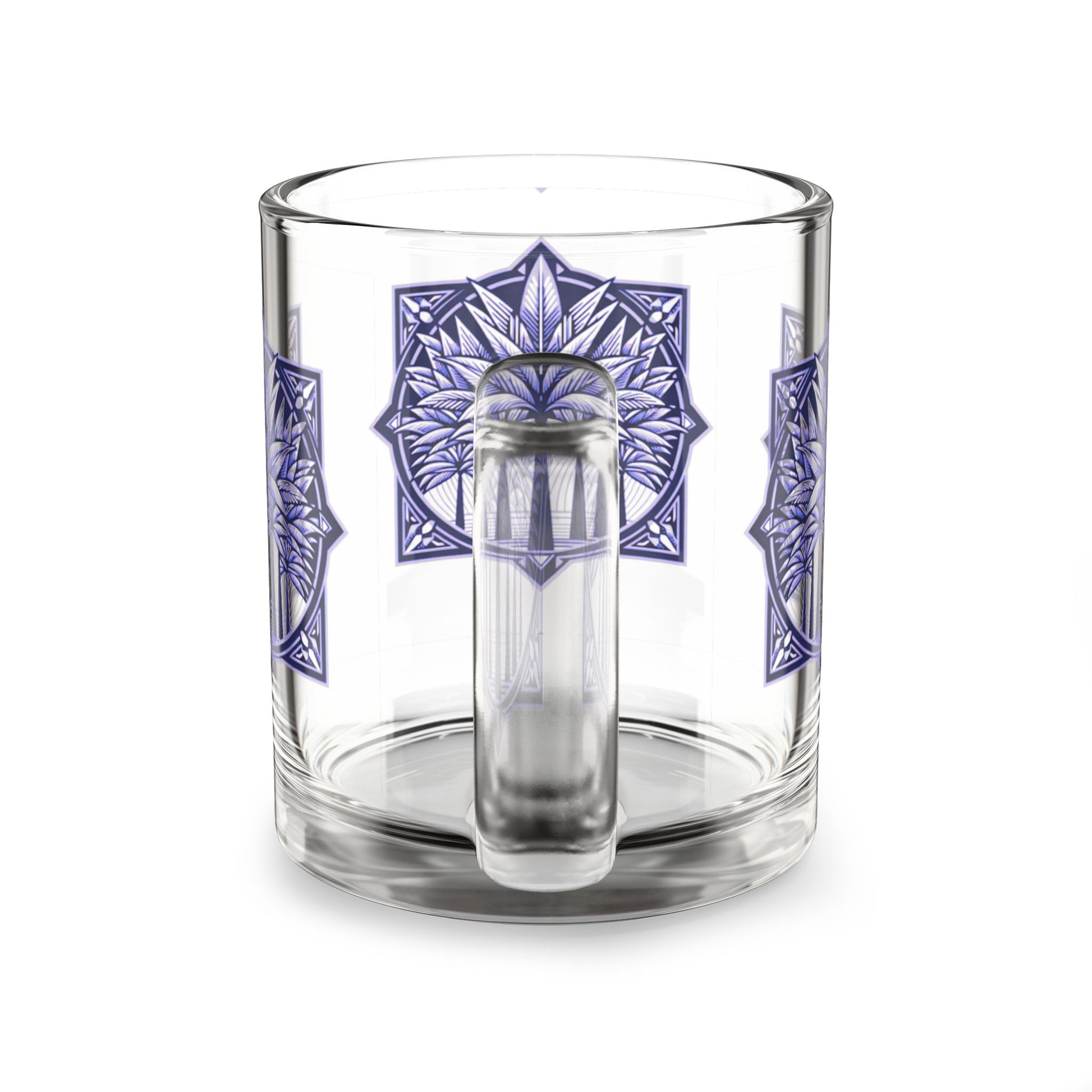 Tropical Glass Mug - 10oz Coffee Cup / Deco Palm, Purple