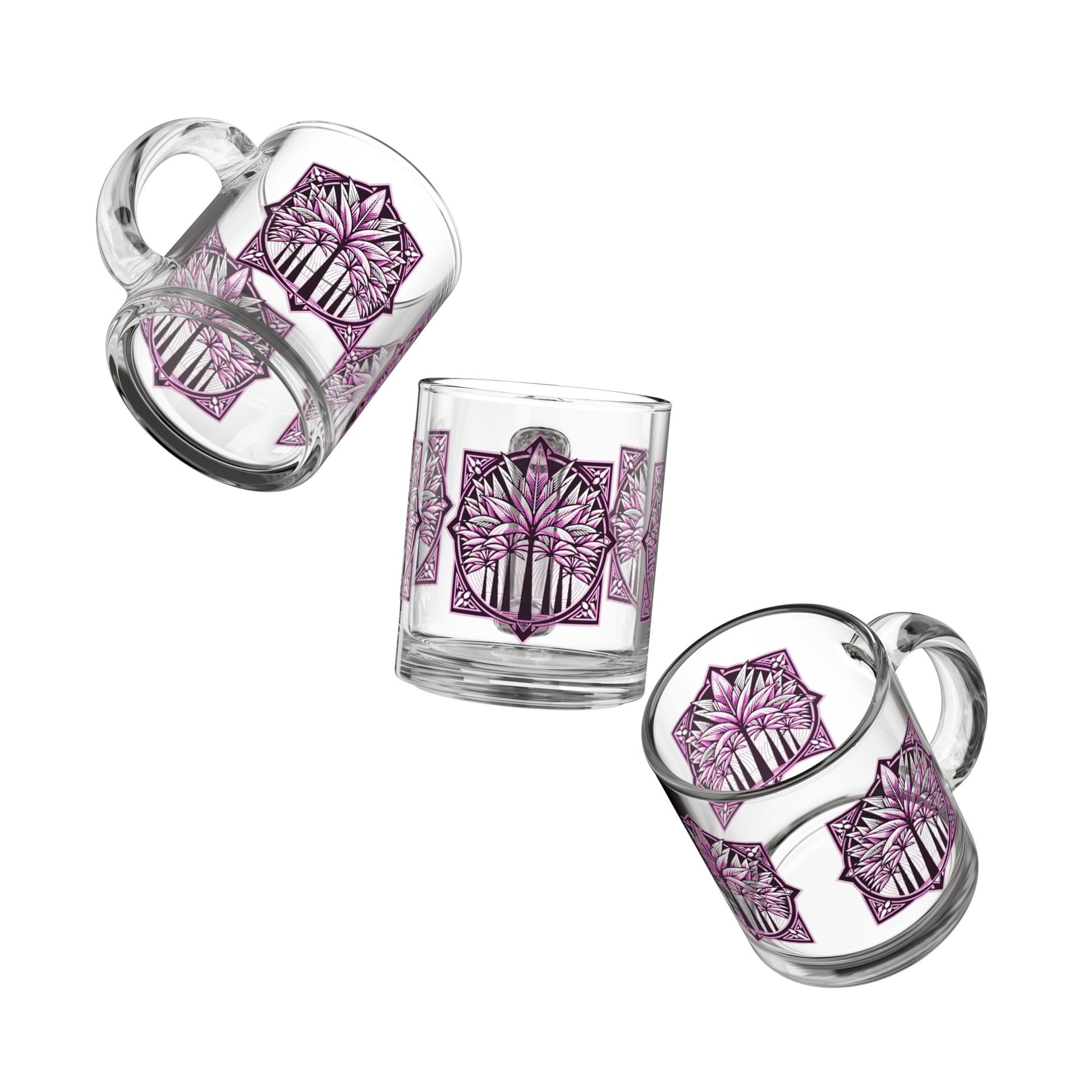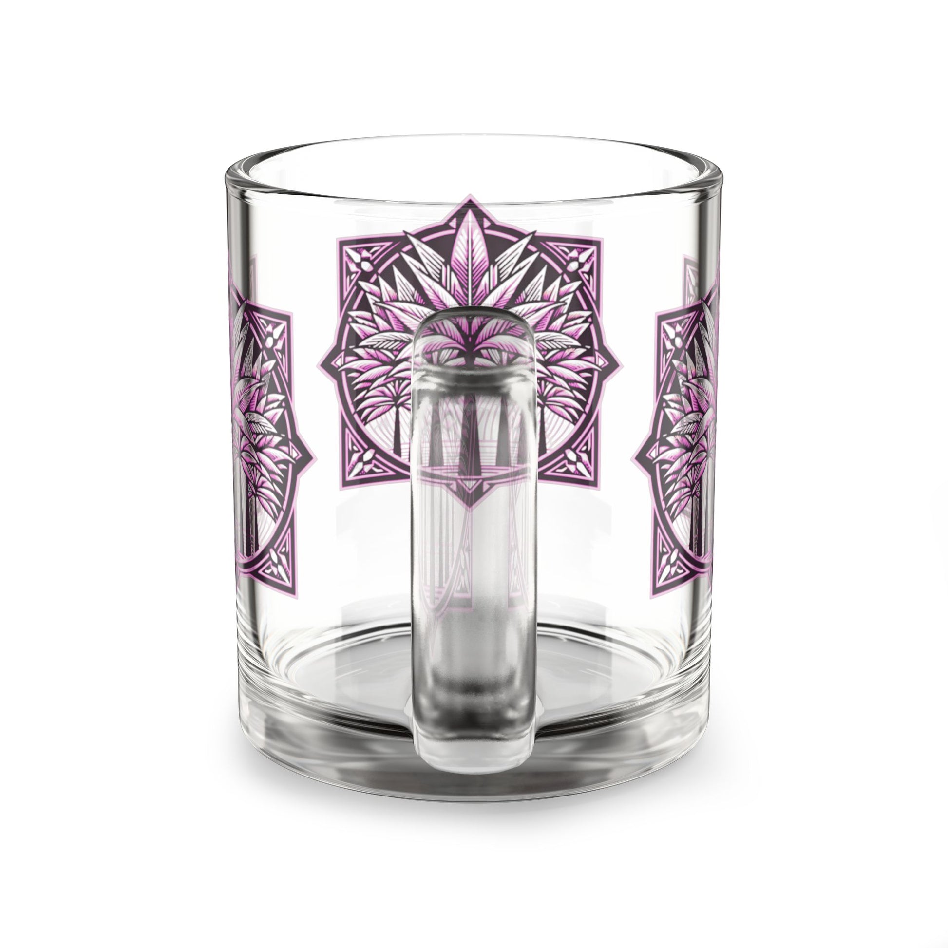 Tropical Glass Mug - 10oz Coffee Cup / Deco Palms, Pink