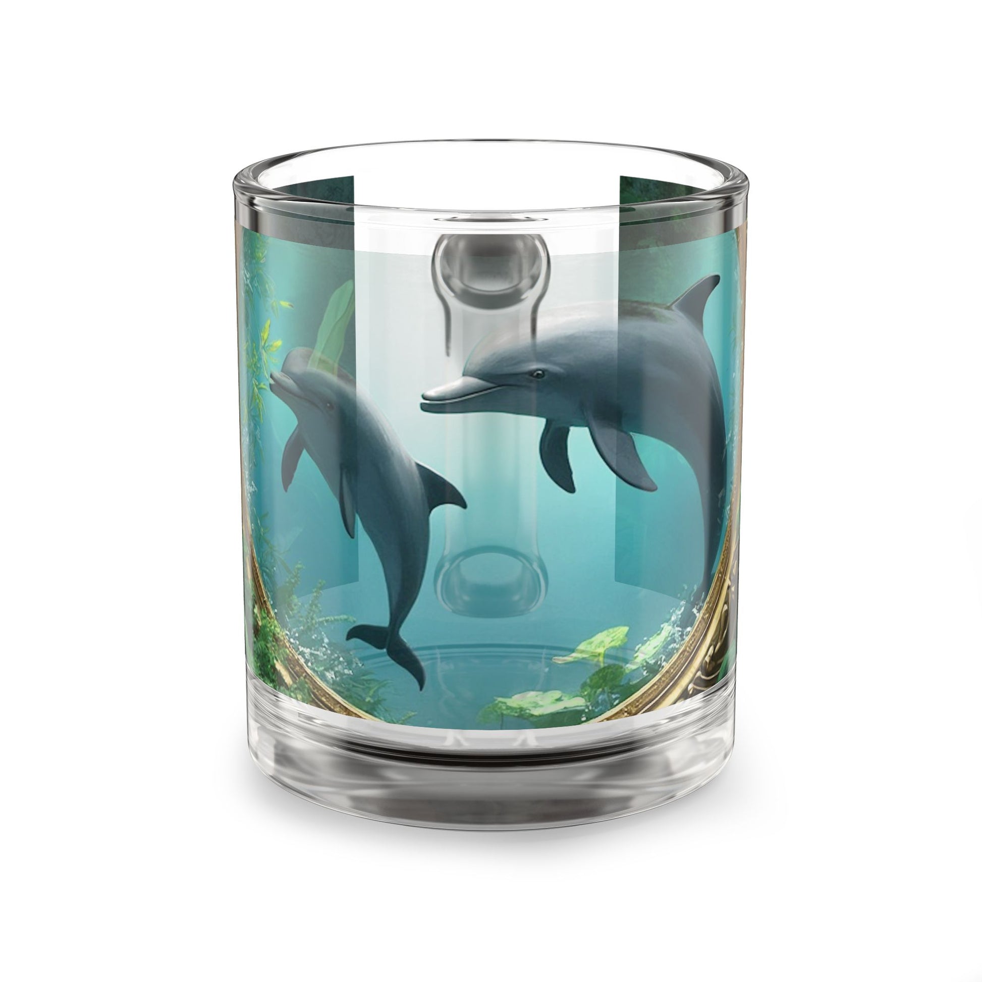 Tropical Glass Mug - 10oz Coffee Cup / Framed Dolphins