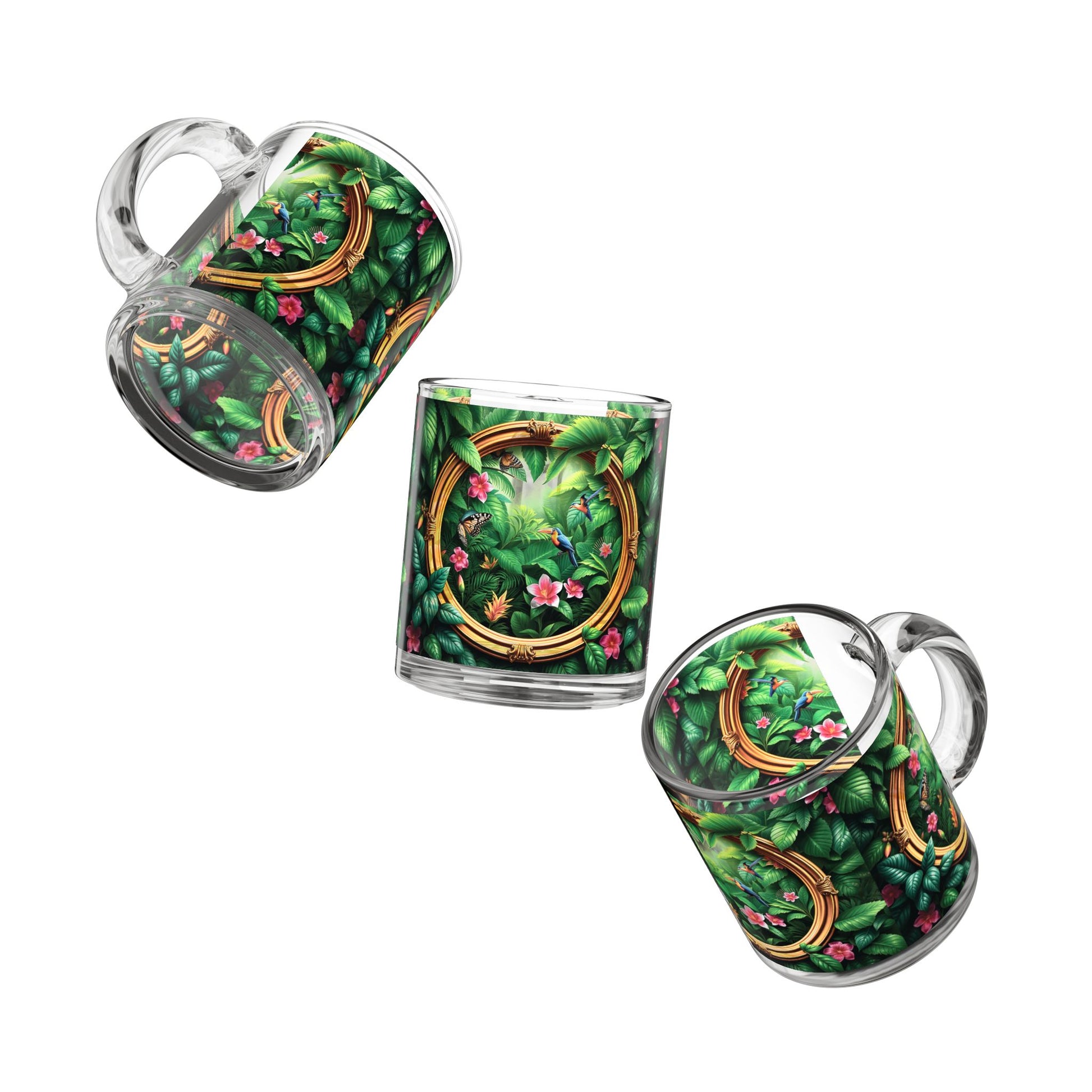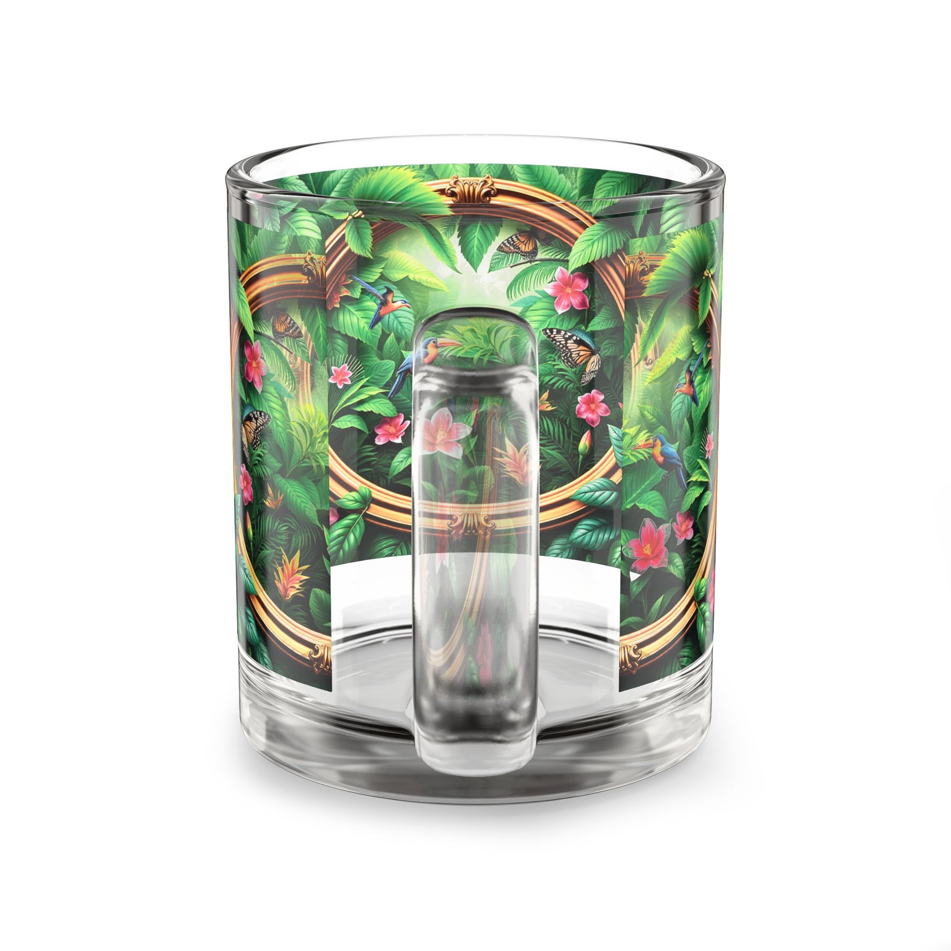 Tropical Glass Mug - 10oz Coffee Cup / Framed Rainforest