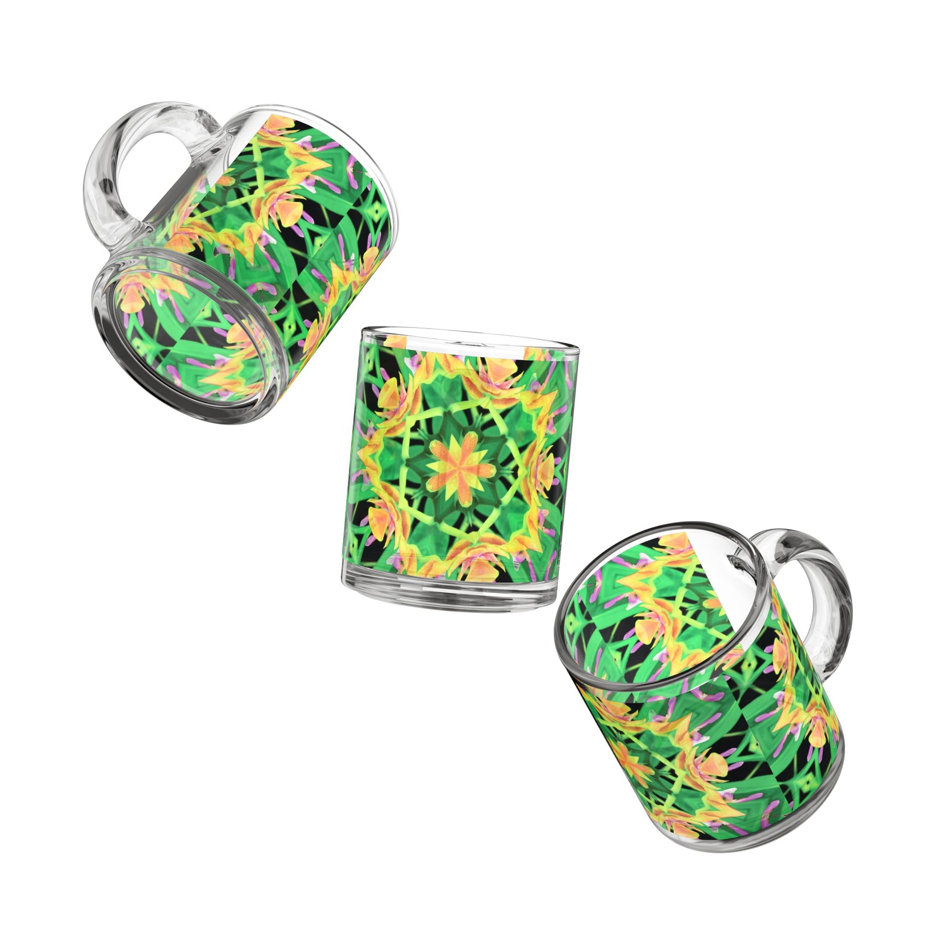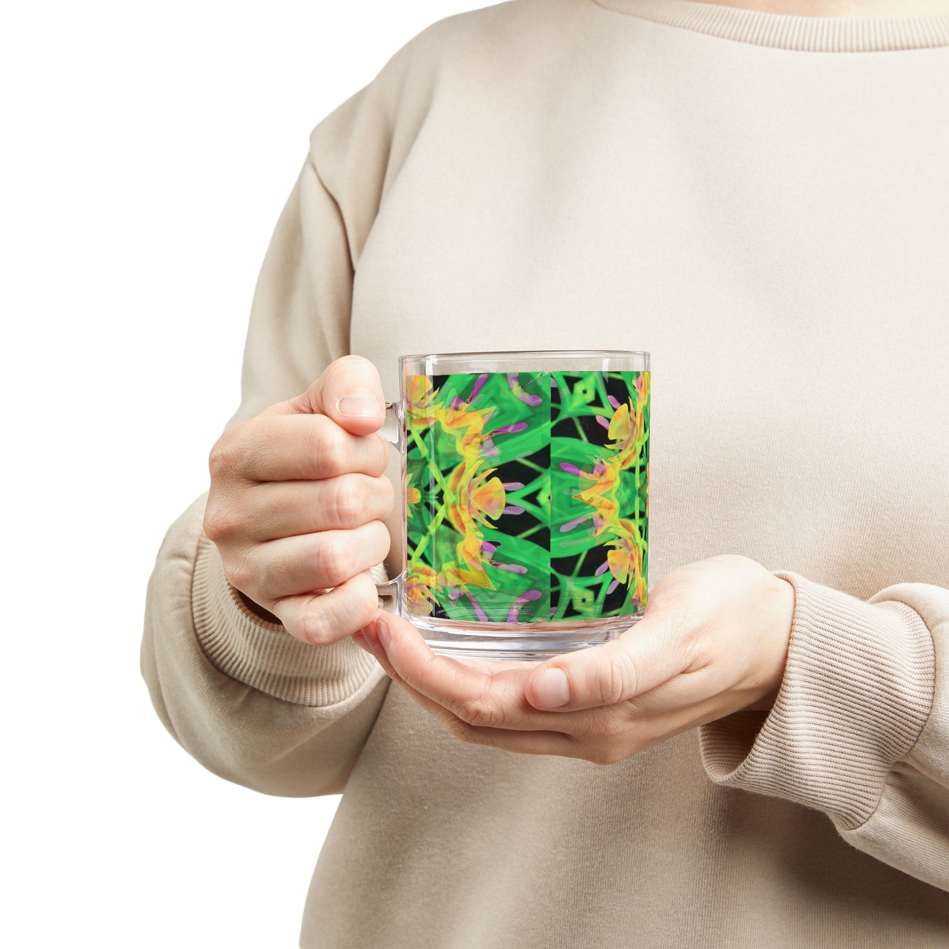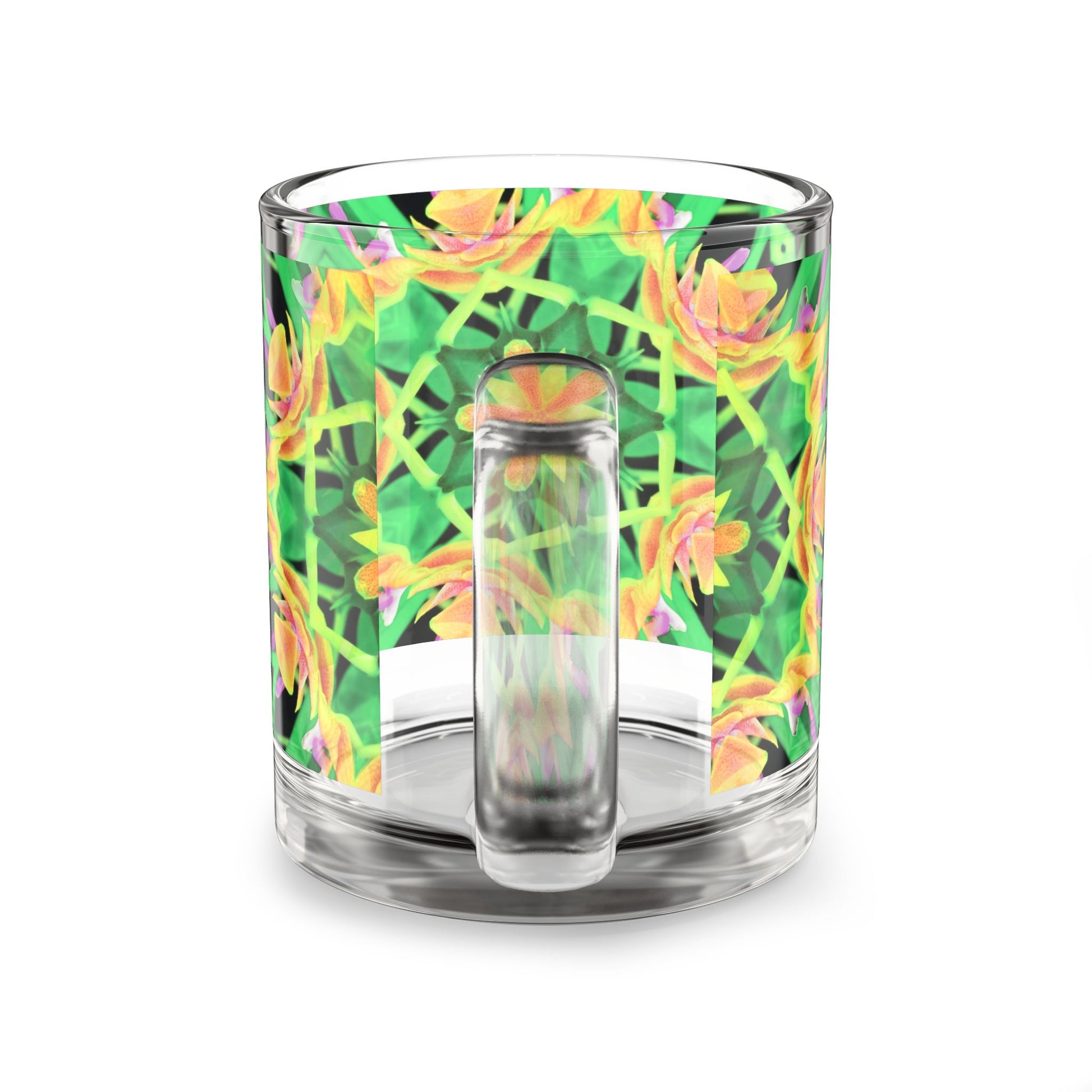 Tropical Glass Mug - 10oz Coffee Cup / Kaleido Orange Orchid