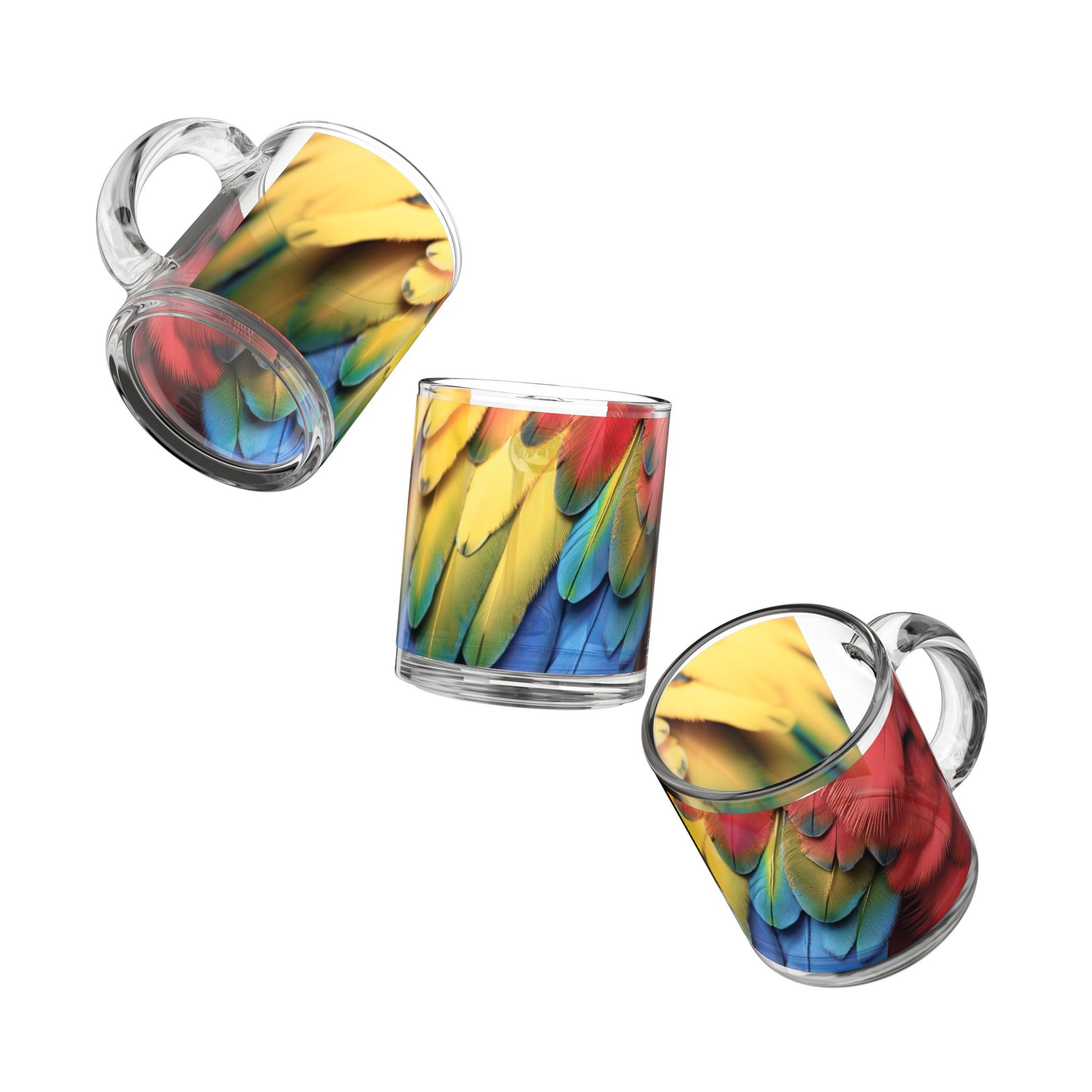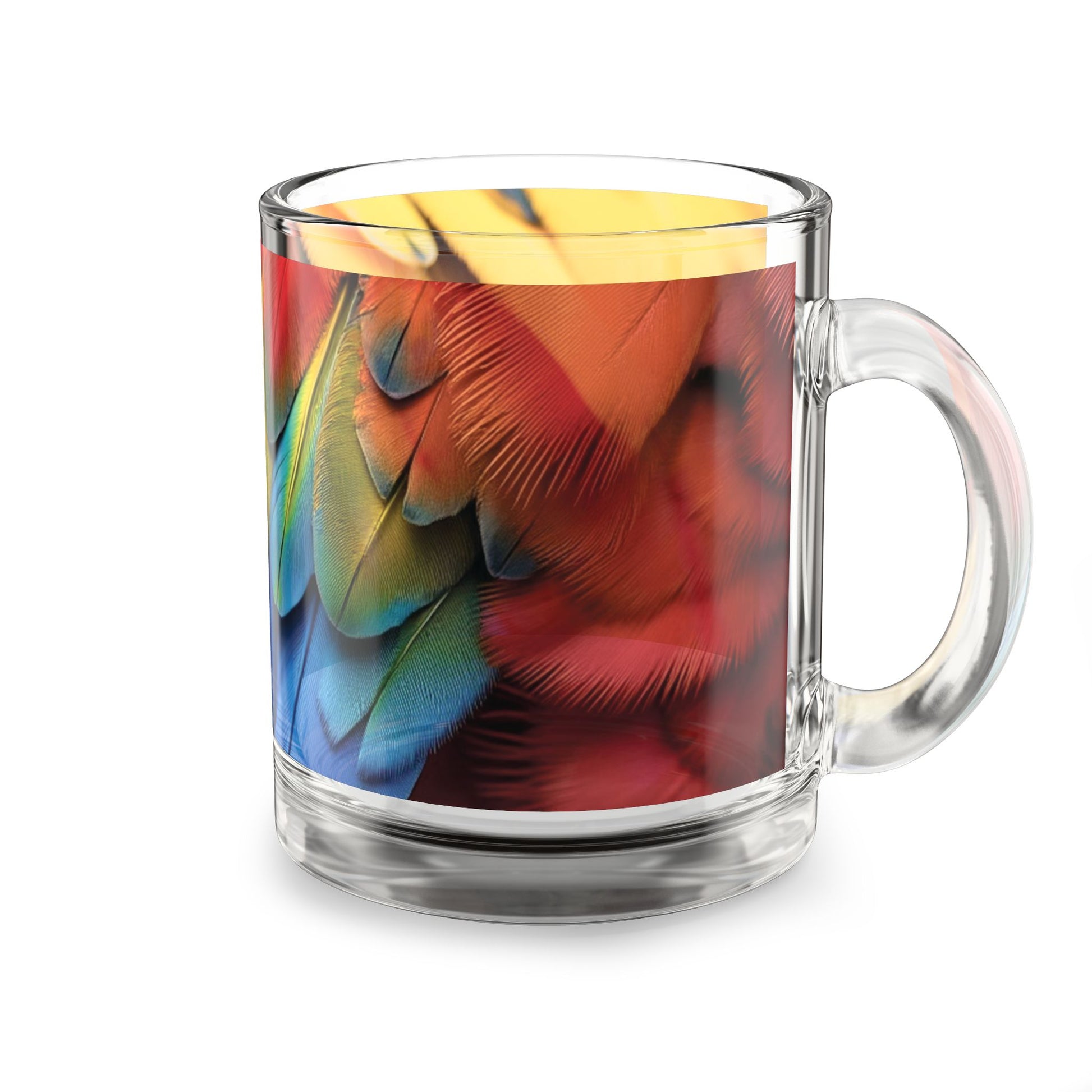 Tropical Glass Mug - 10oz Coffee Cup / Macaw Feathers