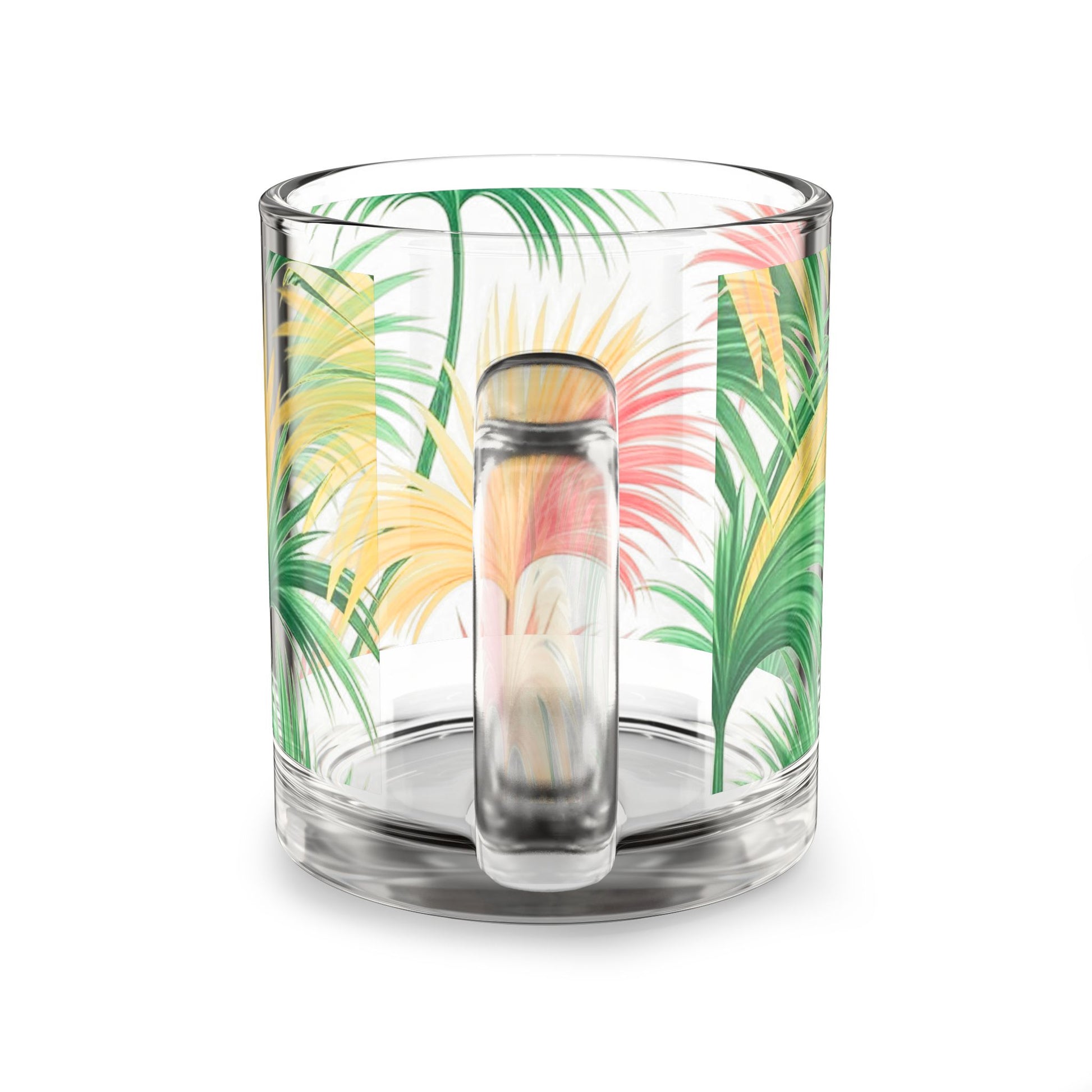 Tropical Glass Mug - 10oz Coffee Cup / Tri-Color Bright Palms