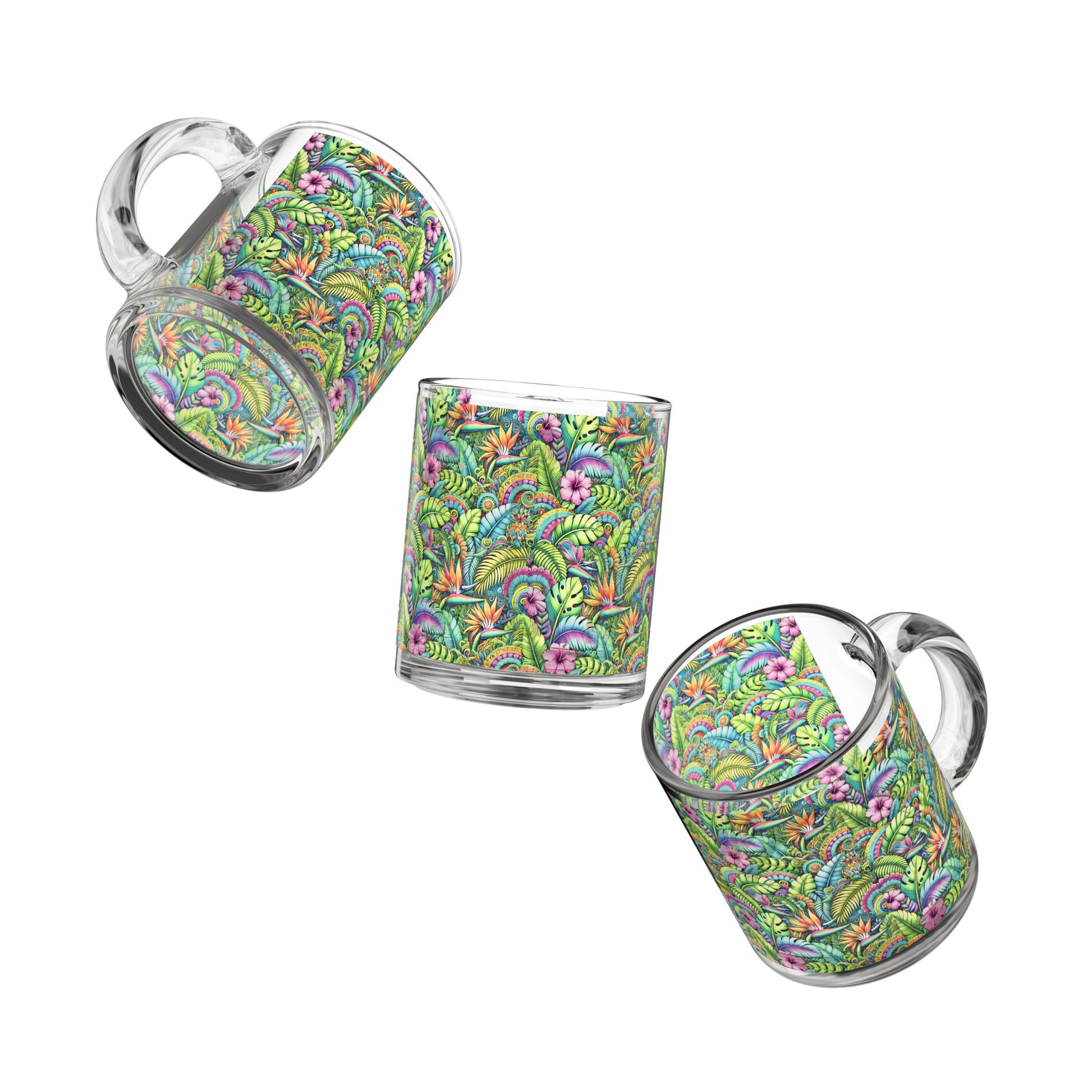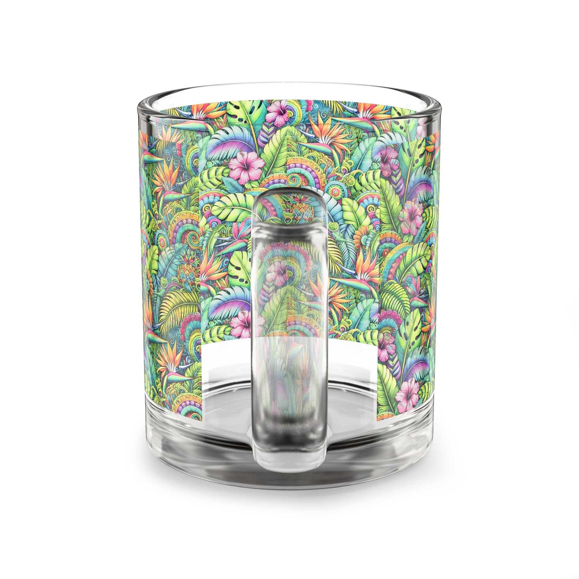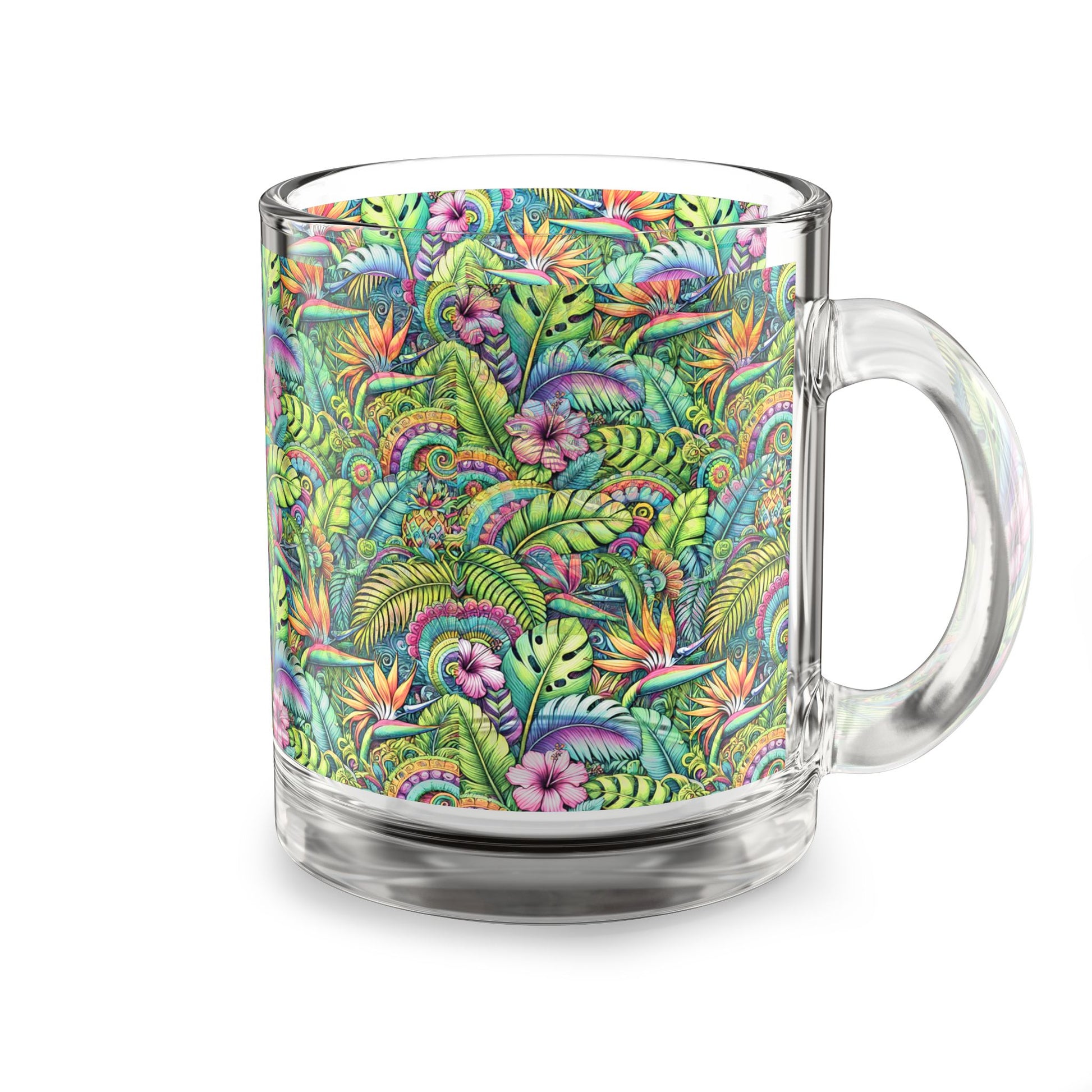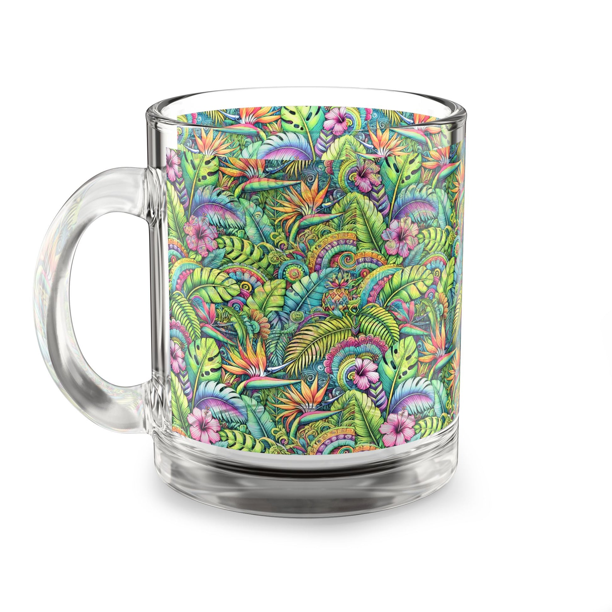 Tropical Glass Mug - 10oz Coffee Cup / Tropical Blooms