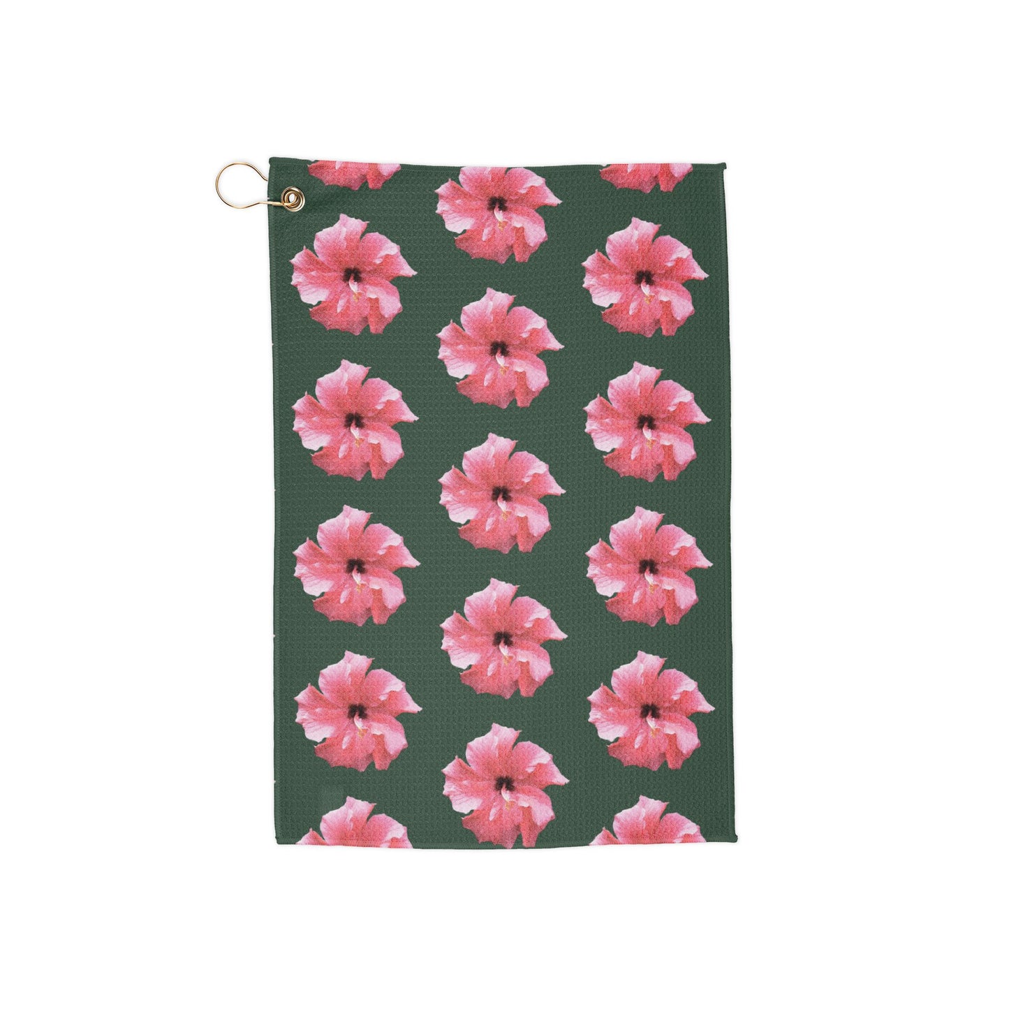 Tropical Golf Towel | Functional Accessory for Golf & Beach Outings / Real Pink Hibiscus/Green