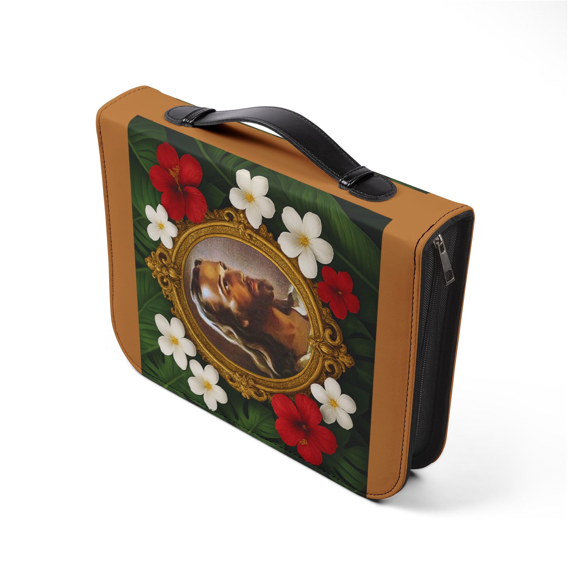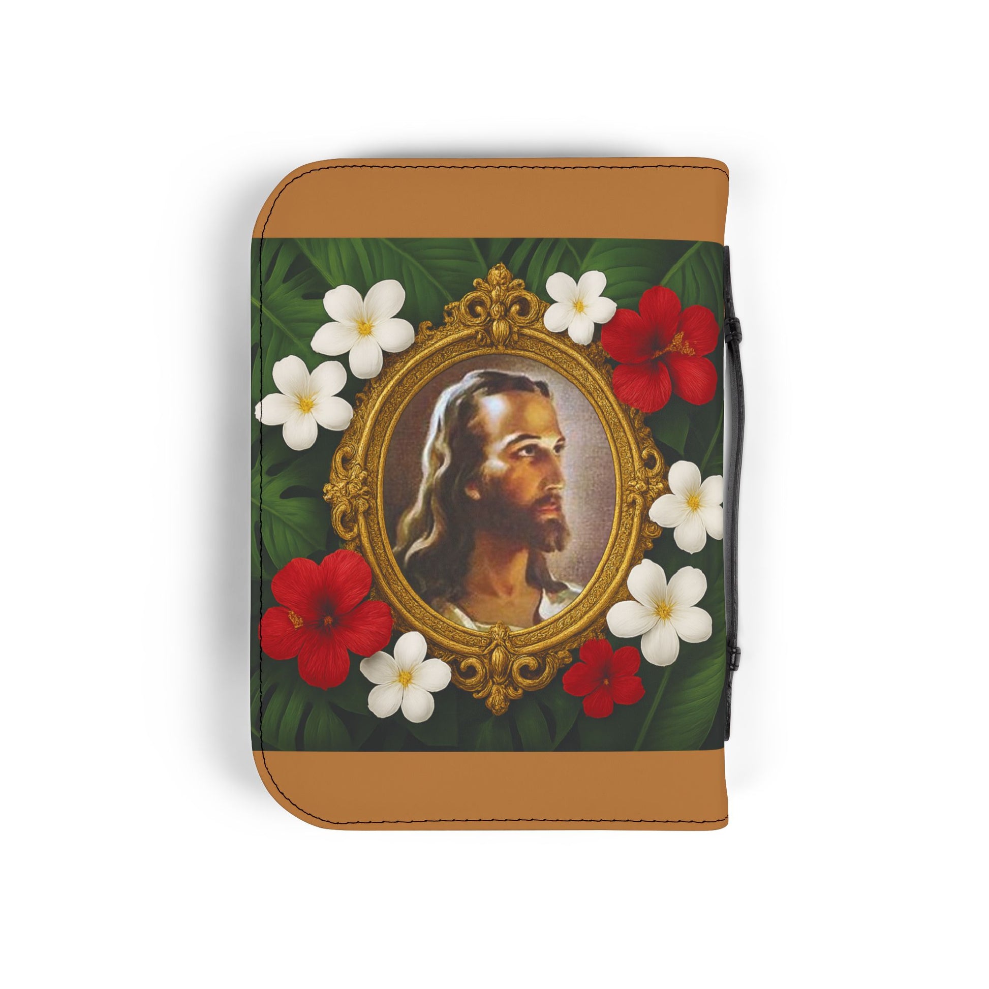 Tropical Jesus Bible Cover, Lt. Brown / Floral Bible Protector, Church Accessories