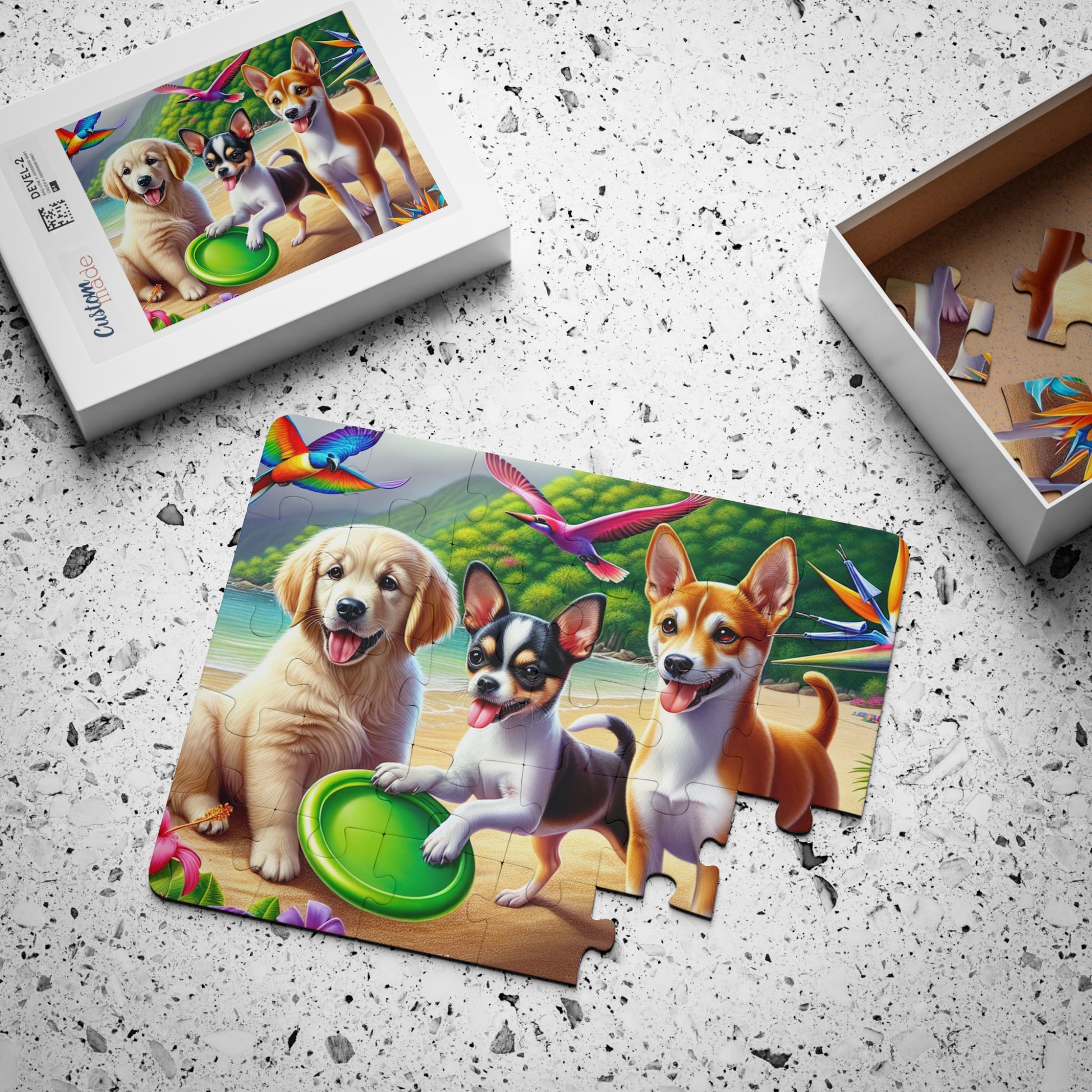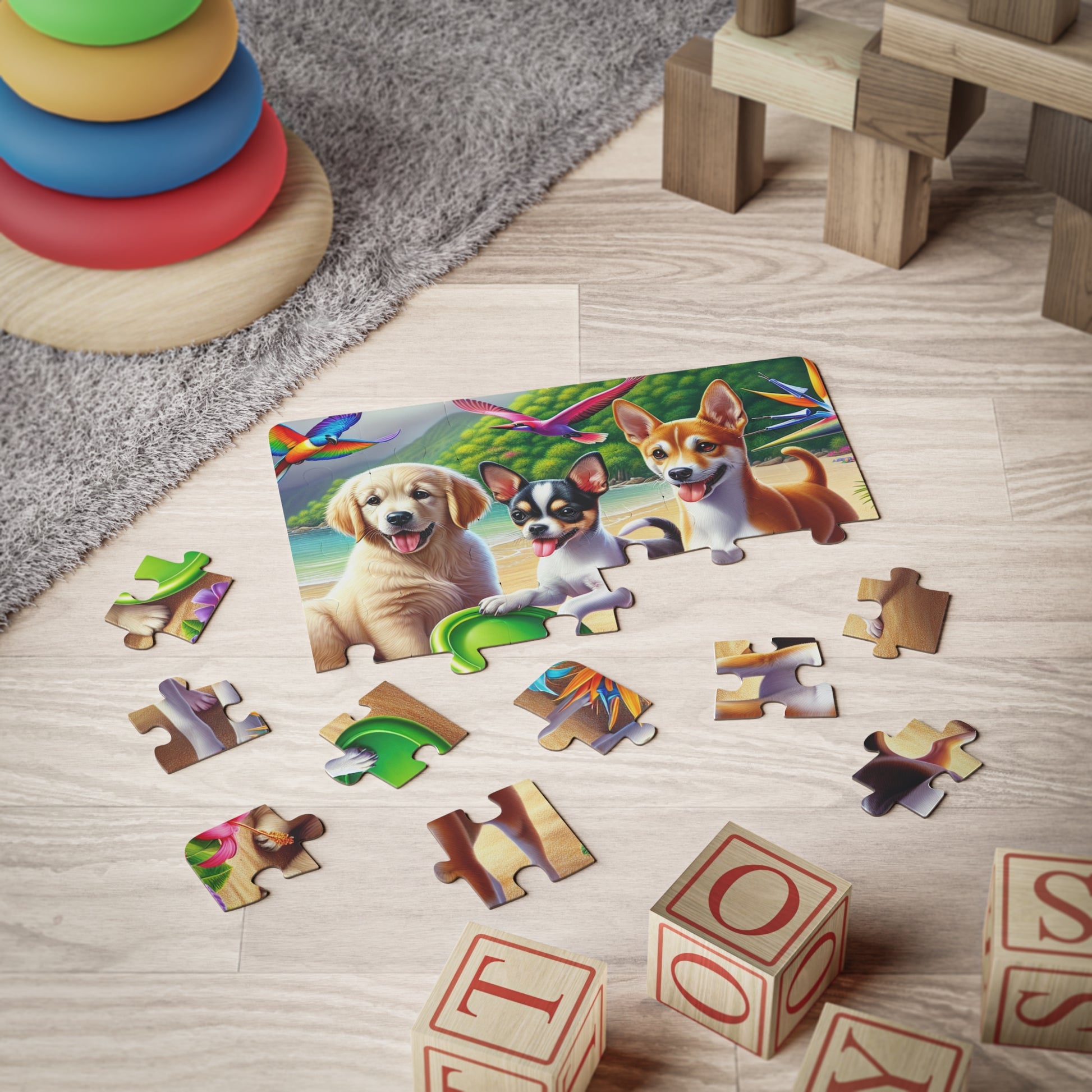 Tropical Kids' Puzzle - 30-Piece Puzzle for Fun and Learning / Three Puppy Friends on Beach