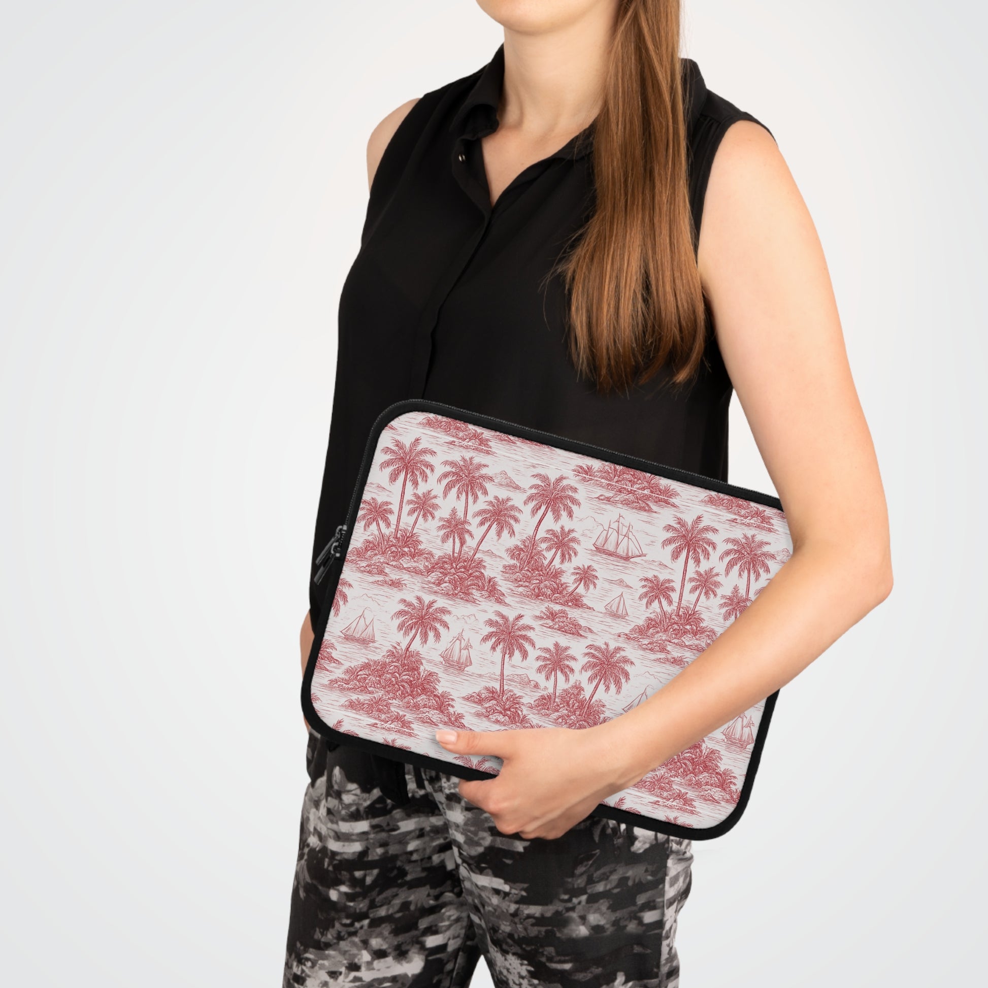 Tropical Laptop Sleeve, 5 Sizes - Perfect for Beach Lovers & Students / Faraway Toile, Red