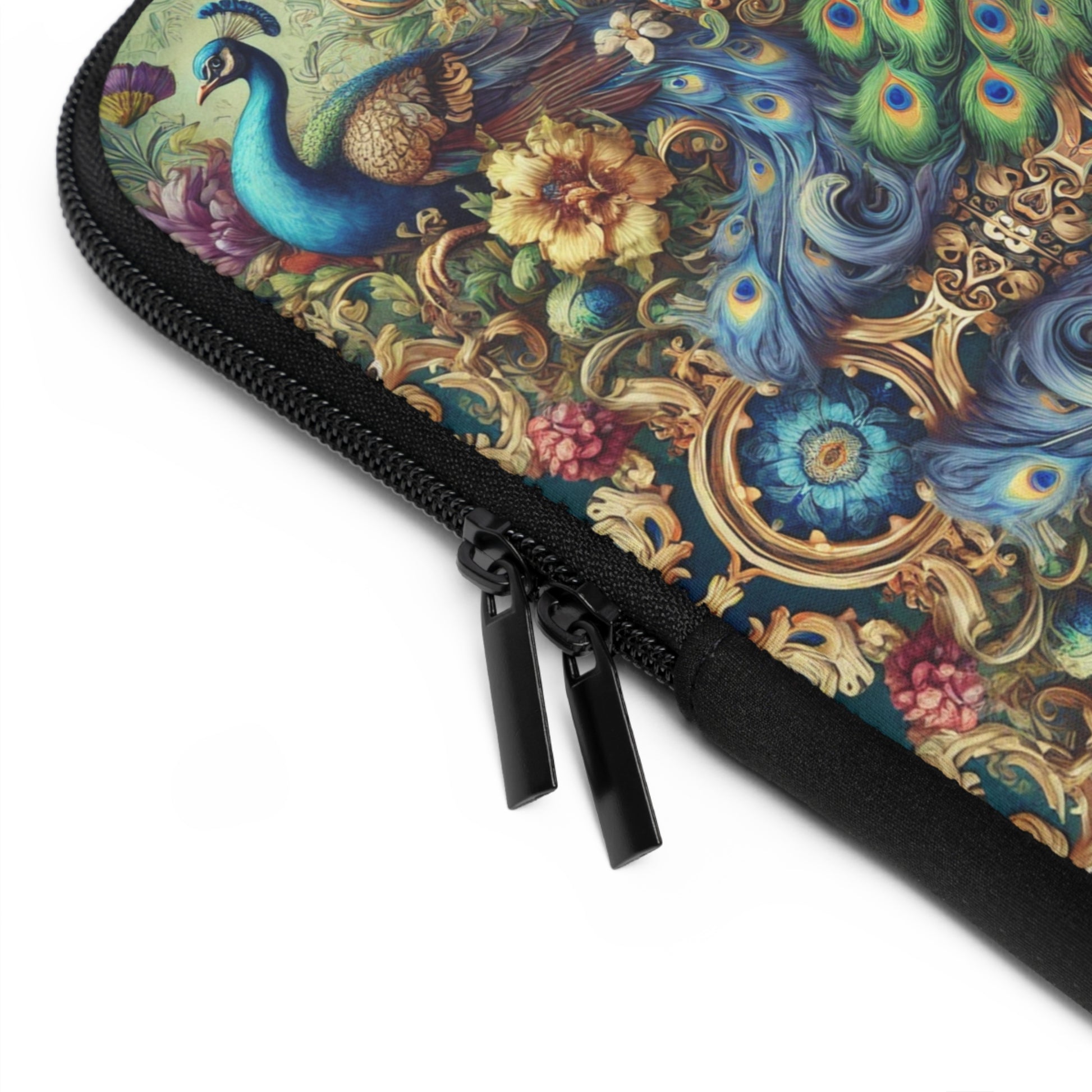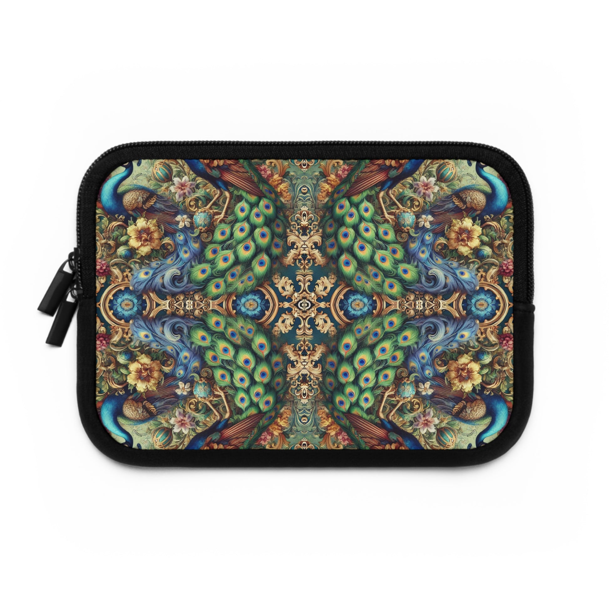 Introducing our vibrant Laptop Sleeve, designed for those who love to blend practicality with personal style. Design is our exclusive kaleidoscope pattern of regal peacoks.This eye-catching sleeve brings a touch of tropical serenity to your everyday tech gear, making it a perfect companion for students, remote workers, and anyone on the go. Its lightweight and water-resistant features ensure that your laptop stays protected from dust and minor bumps without sacrificing portability.